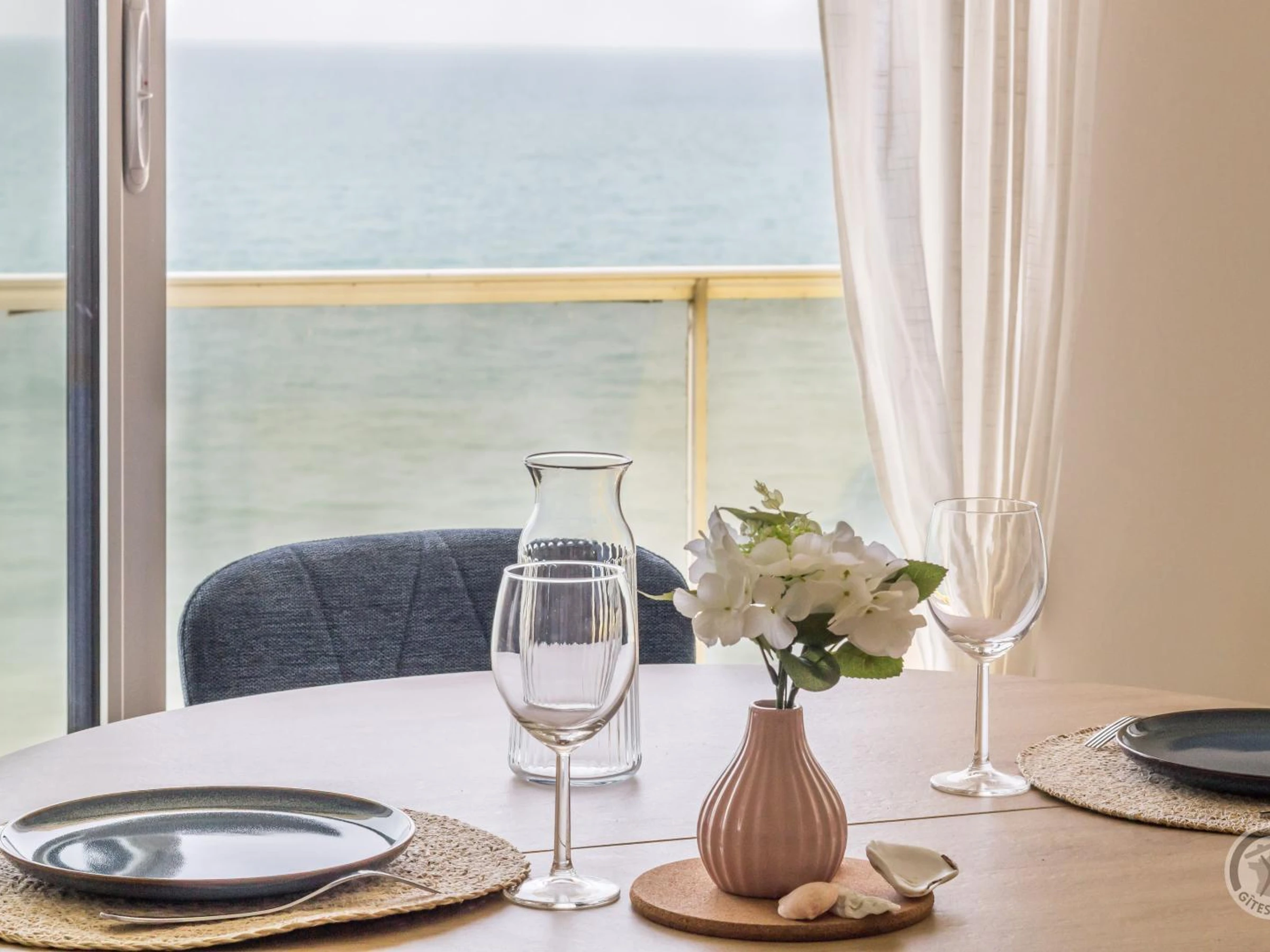 In einer kleinen Residenz direkt am Meer. Wohnung im 2. Stock mit Aufzug. Flur mit Garderobe und WC. Wohnzimmer (TV). Ausgestattete Küche (Induktionskochfeld, Backofen, Geschirrspüler, Kühlschrank mit Gefrierfach, Mikrowelle, Waschmaschine, Espressomaschine). Duschraum (ebenerdige Dusche). Zum Wohnzimmer offenes Schlafzimmer mit Ziehharmonikavorhang (160 x 200 cm Bett und Ankleidezimmer). Babyausstattung auf Anfrage. Bettwäsche und Handtücher werden gestellt. Betten bei Ankunft bezogen. Reinigungsservice inklusive. Elektroheizung inklusive. Balkon mit Rollo. Gartenmöbel und Liegestühle. Meerblick von der Wohnung und dem Balkon. Privater Parkplatz. Keller mit 2 Fahrrädern verfügbar. An diesem kleinen Dünenstreifen führt diese Sackgasse zu einem sehr privilegierten Bereich des Resorts, der im Westen direkt am Meer liegt und im Osten den Golfplatz von Coutainville überblickt. In dieser ruhigen Residenz ist Ihre Wohnung im 2. Stock mit drei großen Erkerfenstern eine wahre Augenweide! Der Balkon, der die gesamte Wohnung umgibt, bietet Ihnen einen 180°-Blick von Granville Point bis zur Insel Jersey. Tatiana und Cédric, die Eigentümer, haben diesen schönen Wohnraum liebevoll gestaltet und die 45 m², die Ihnen zur Verfügung stehen, komfortabel ausgestattet. Der Strand liegt Ihnen zu Füßen, und die lange Uferpromenade lädt zu einem Spaziergang entlang der Küste ein, um die Geschäfte und Freizeitangebote dieses Badeortes zu entdecken. Sie können auch mit den bereitgestellten Fahrrädern Ihre Entdeckungsreise zur Pointe Agon und den Gouville-Hütten fortsetzen.