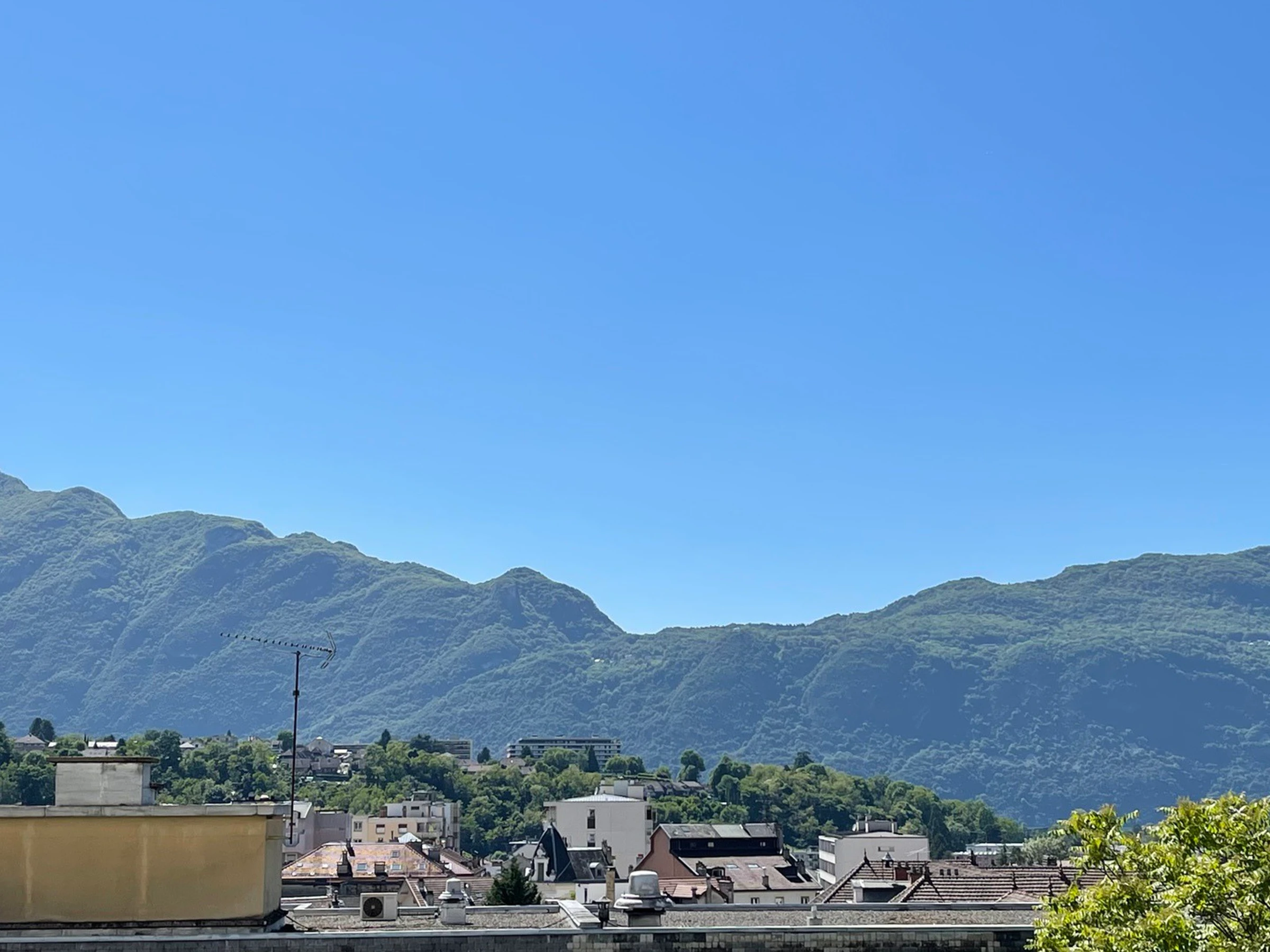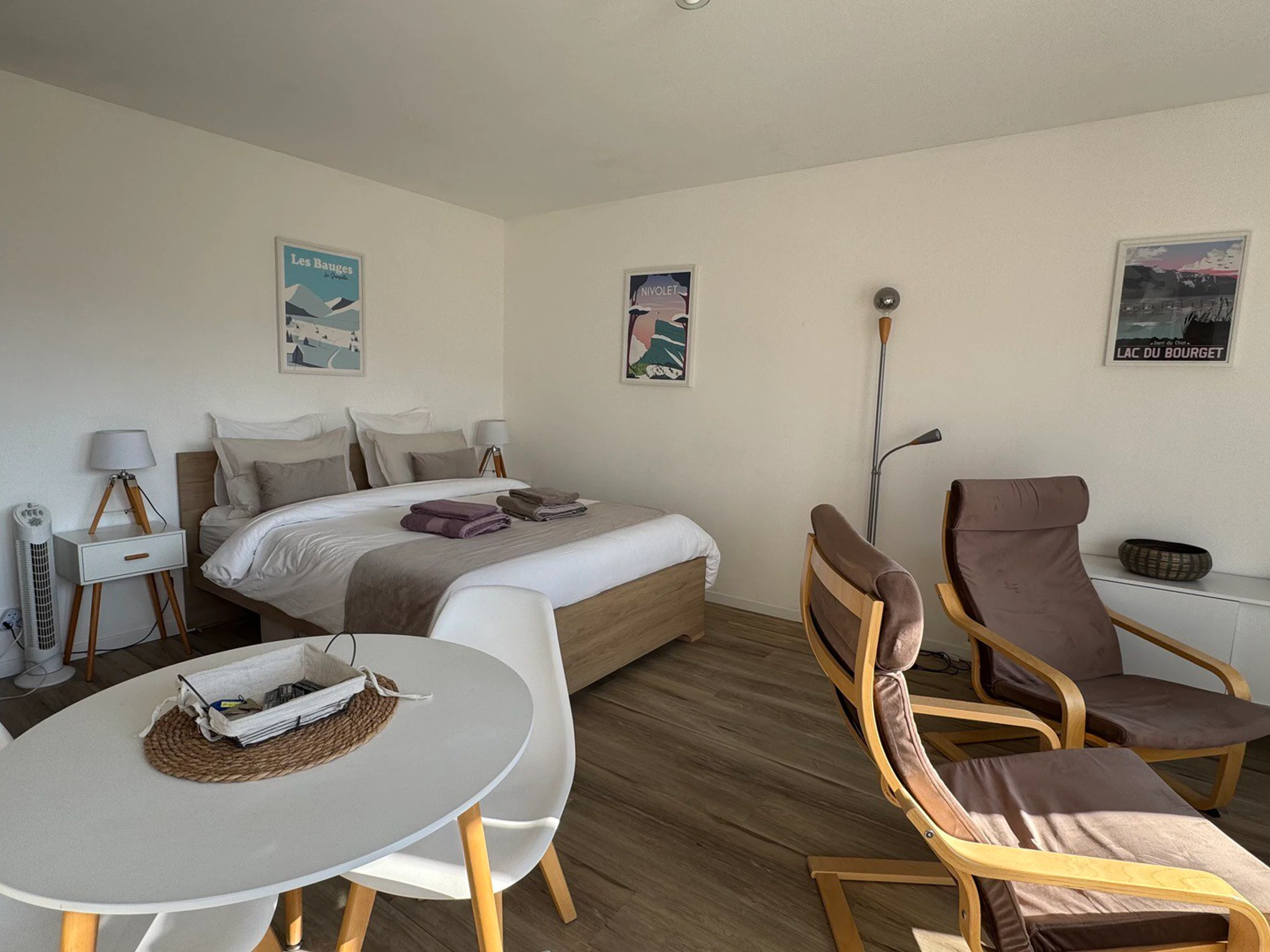 - BALCON : exposition Ouest. Vue Dent du Chat, 2 chaises + 1 table bistrot.