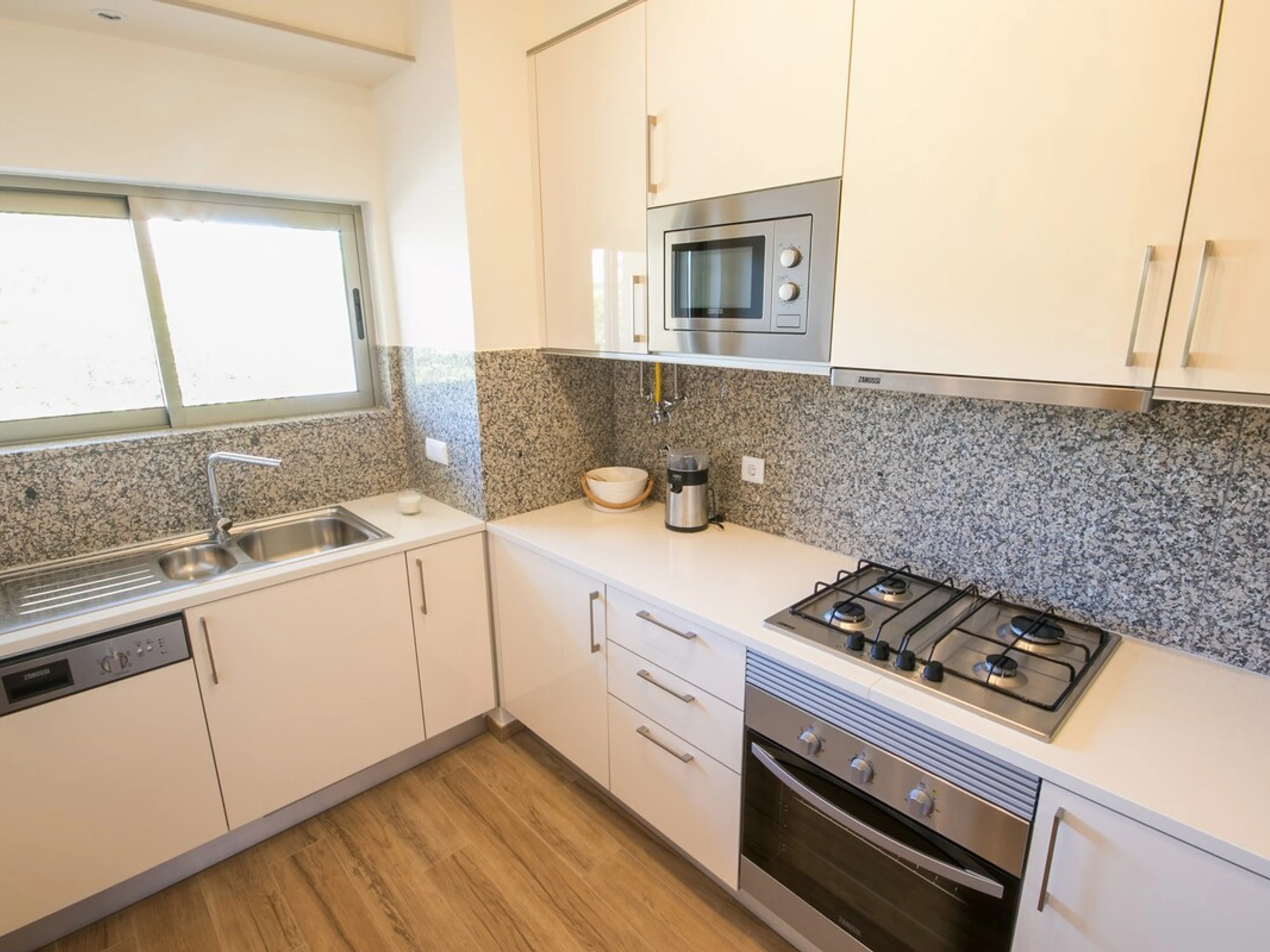 Dieses separate küche, ist ausgestattet in kühlschrank, mikrowelle, backofen, spülmaschine, geschirr/besteck, kochutensilien, kaffeemaschine, toaster, wasserkocher und herdplatte.