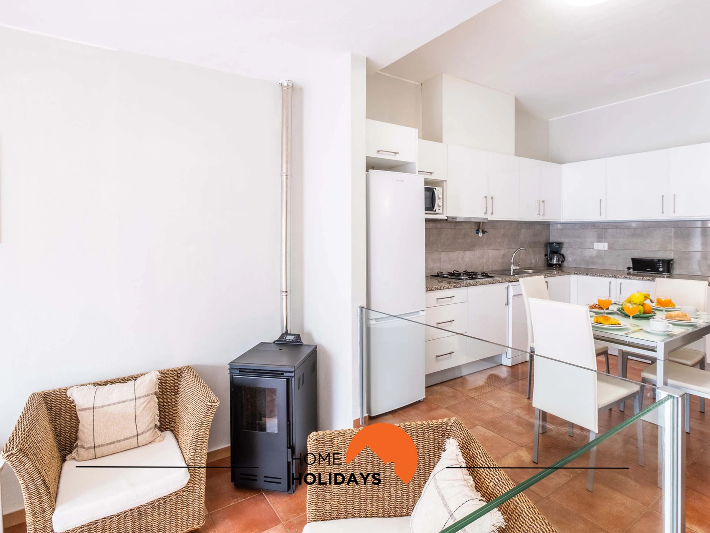 Dieses offene küche, mit gemixt: gas und elektrisch, ist ausgestattet in kühlschrank, mikrowelle, backofen, gefrierschrank, spülmaschine, geschirr/besteck, kaffeemaschine, toaster, wasserkocher und herdplatte.