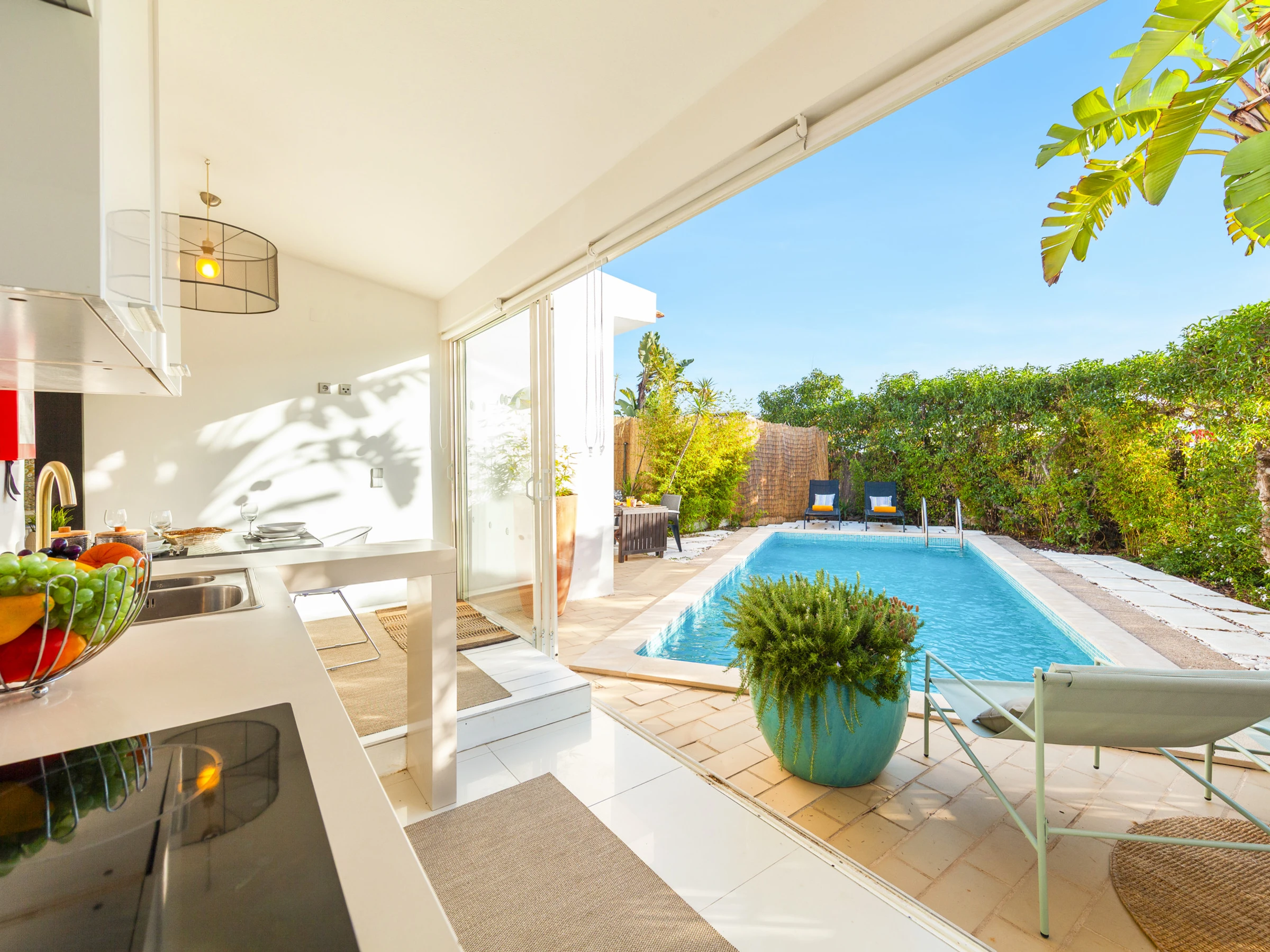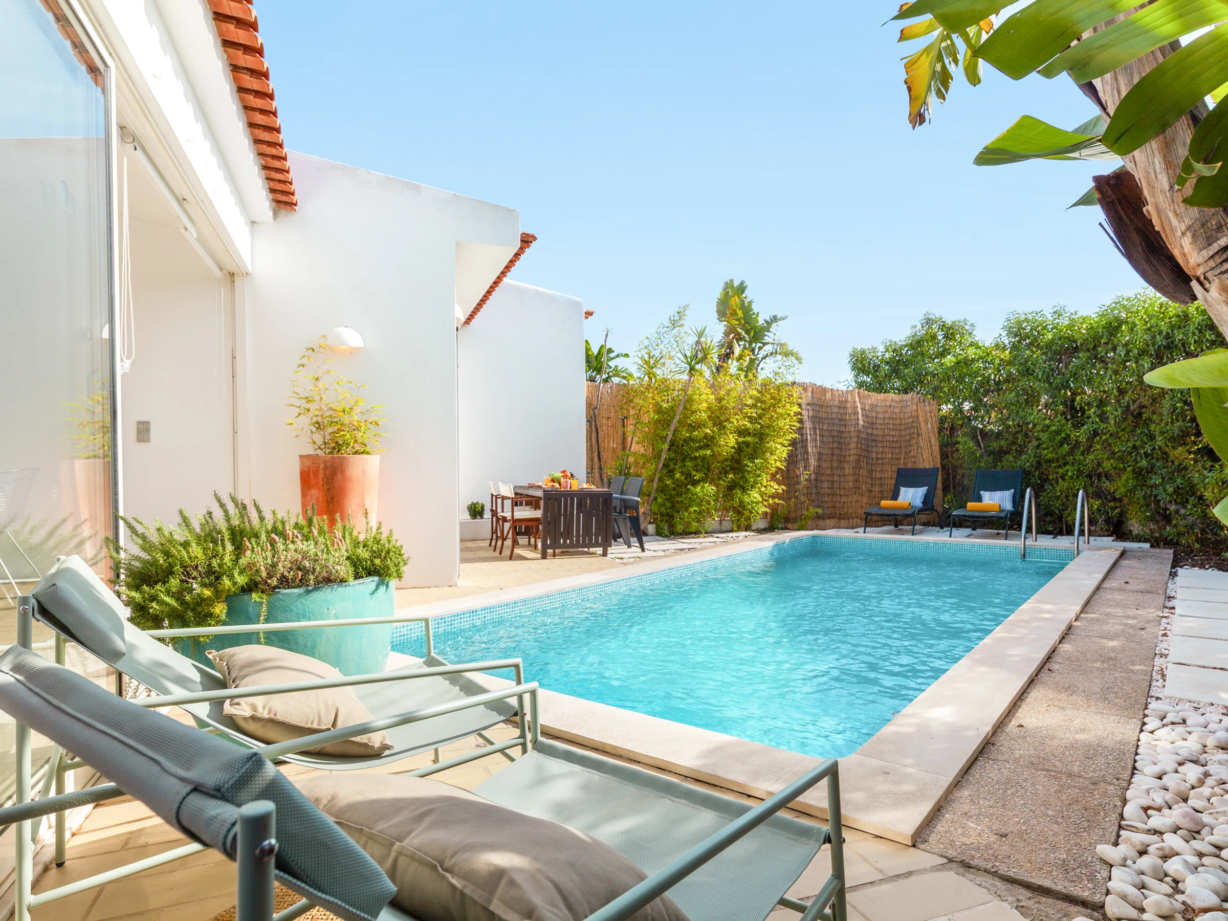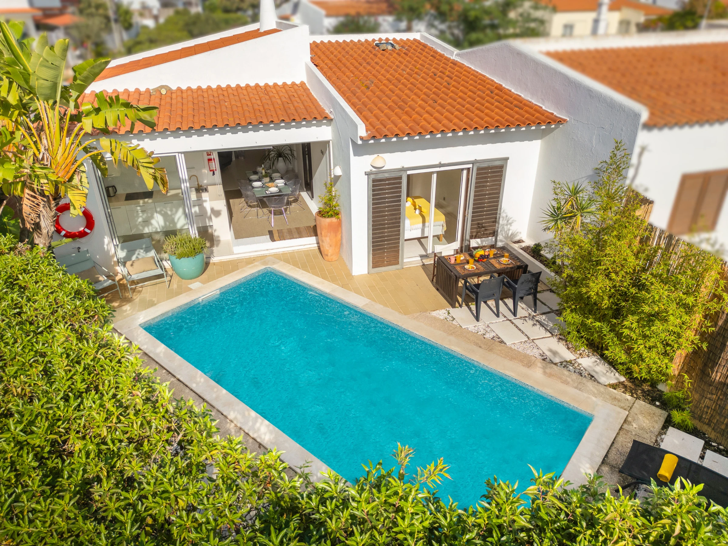 Im Außenbereich sticht der private Pool hervor, ideal um das Algarve-Klima zu genießen, sowie die angenehme Freiluft-Essenszone, ausgestattet mit Grill, perfekt für entspannte Abendessen unter dem Himmel von Albufeira.
