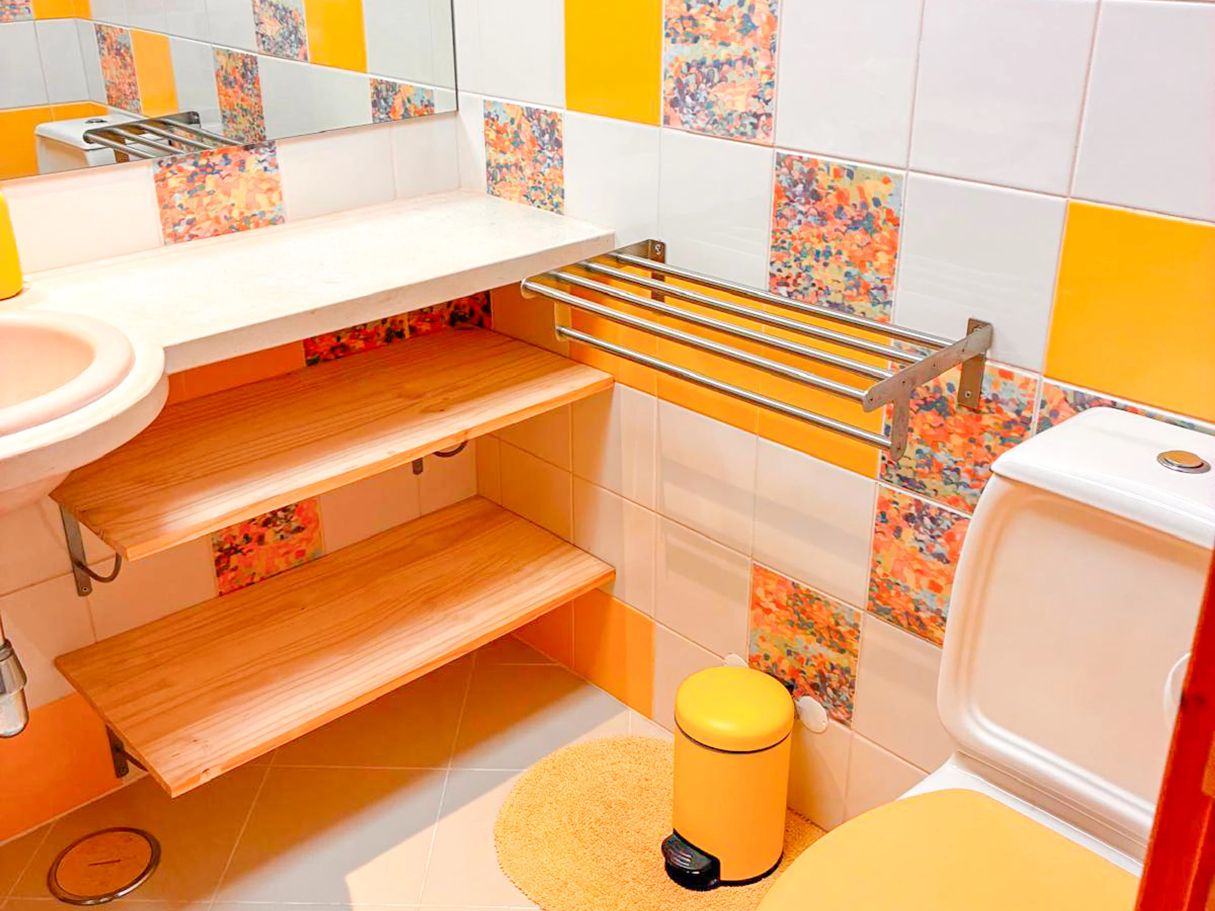 Das Zimmer, mit einer einfachen und gemütlichen Einrichtung, wurde konzipiert, um ruhige Nächte und eine entspannende Atmosphäre zu gewährleisten. Die Wohnung verfügt zudem über ein funktionales und elegantes Badezimmer, das Komfort während des gesamten Aufenthalts sicherstellt.