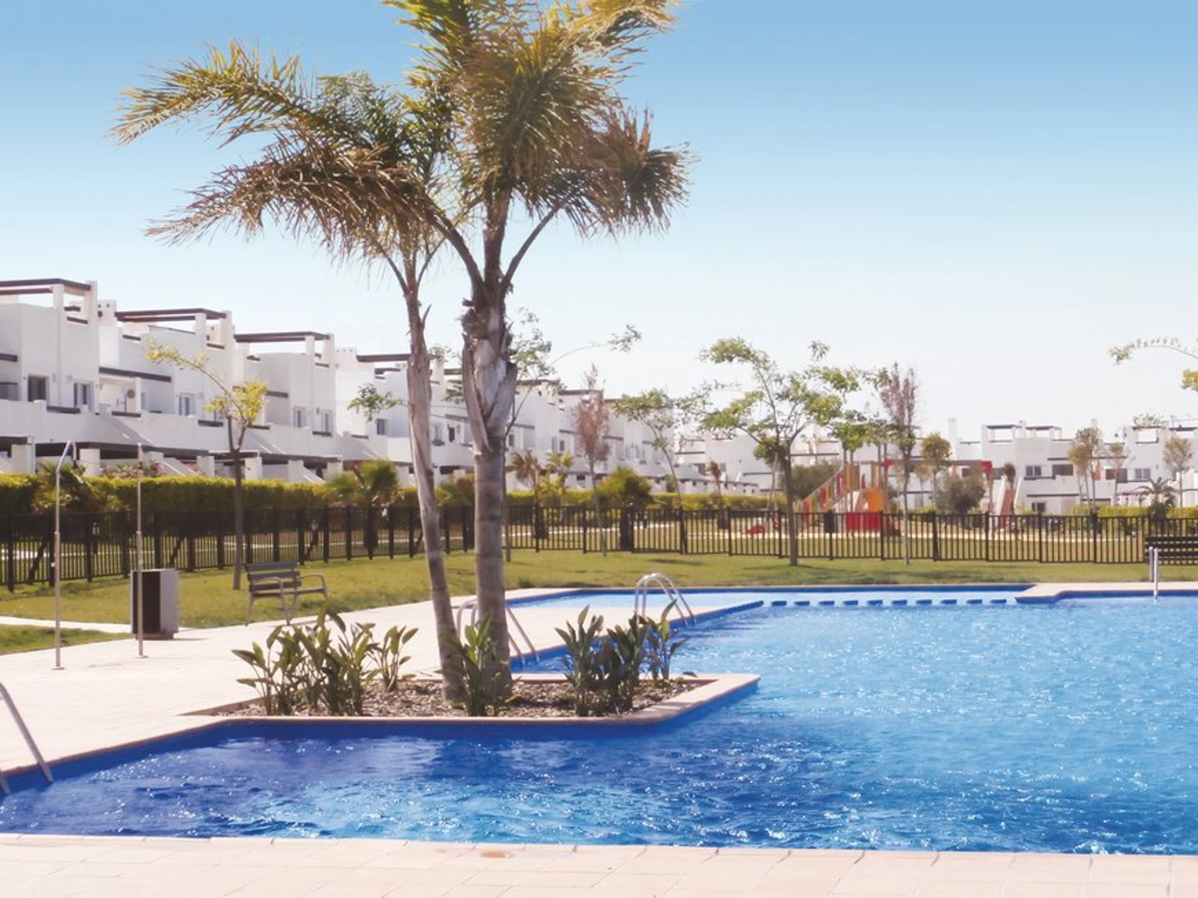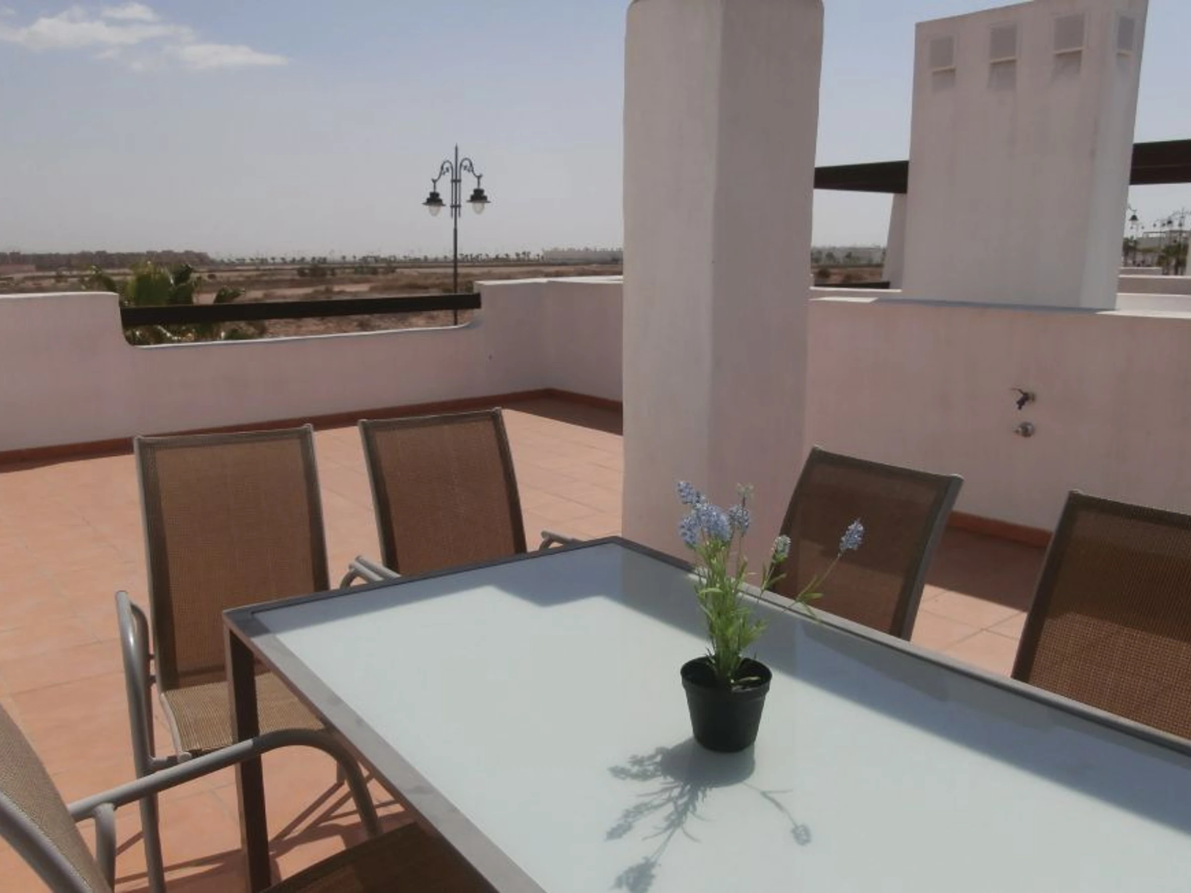 Schöne 2- Zimmer Ferienwohnung mit großer Dachterrasse und herrlichem Blick über den Golfplatz. Der Gemeinschaftspool, Restaurants und Geschäfte liegen nur etwa 2 Minuten vom Ferienobjekt entfernt.