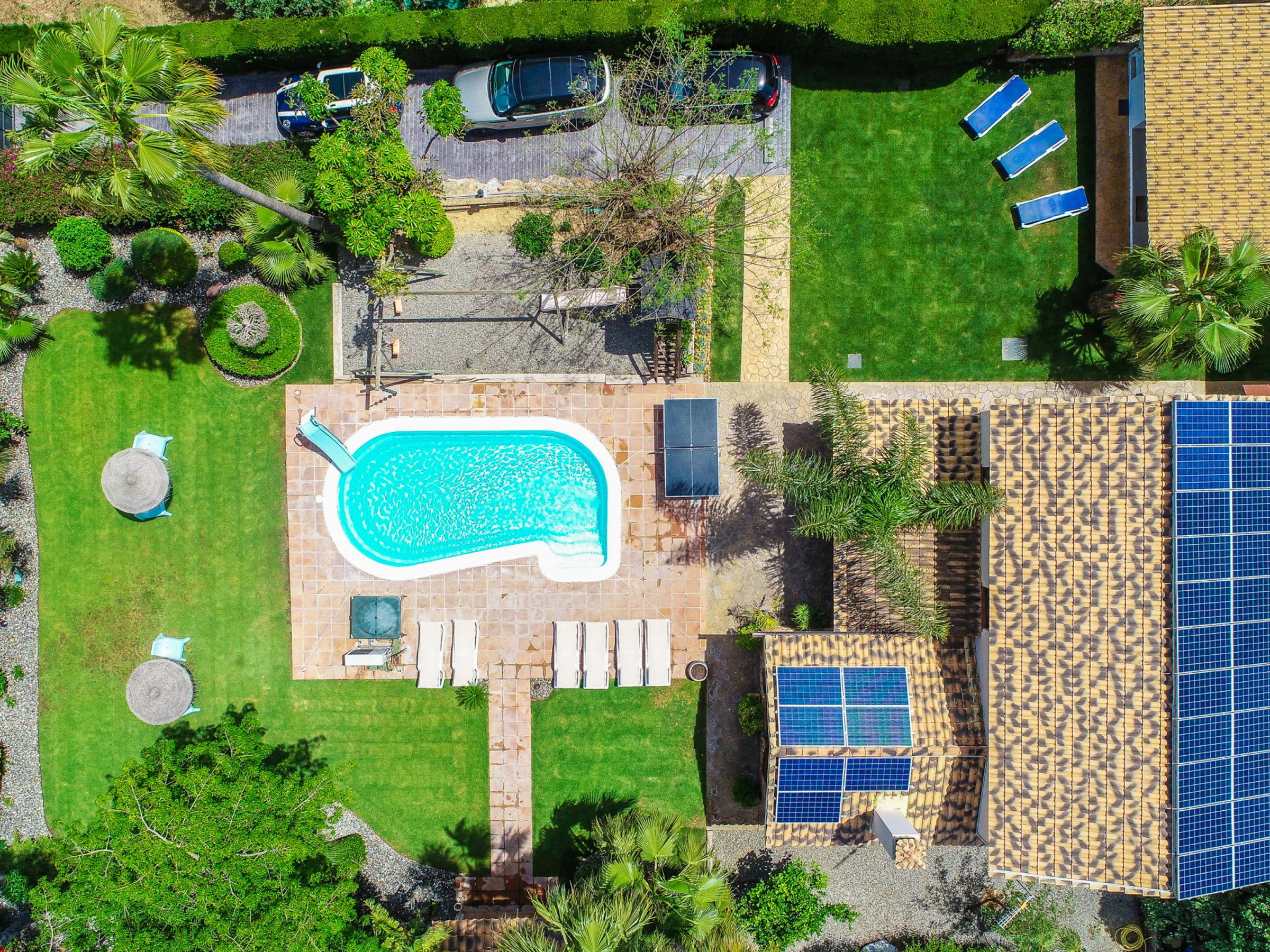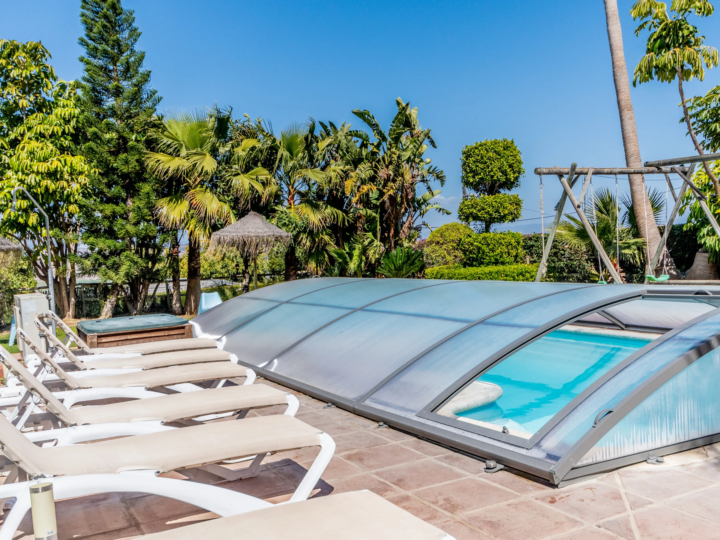Der beheizte Pool wird in der Nebensaison (vom 1. Oktober bis 30. April) bei 28ºC gehalten und verfügt im Winter über eine feste Glasabdeckung sowie eine Wärmeplane zur Temperaturerhaltung. Die Poolheizung hat einen täglichen Aufpreis und ist nur mit Buchung für die gesamte Aufenthaltsdauer verfügbar. Die Villa verfügt zudem über ein Sicherheitssystem mit Alarm und integrierter Kamera.