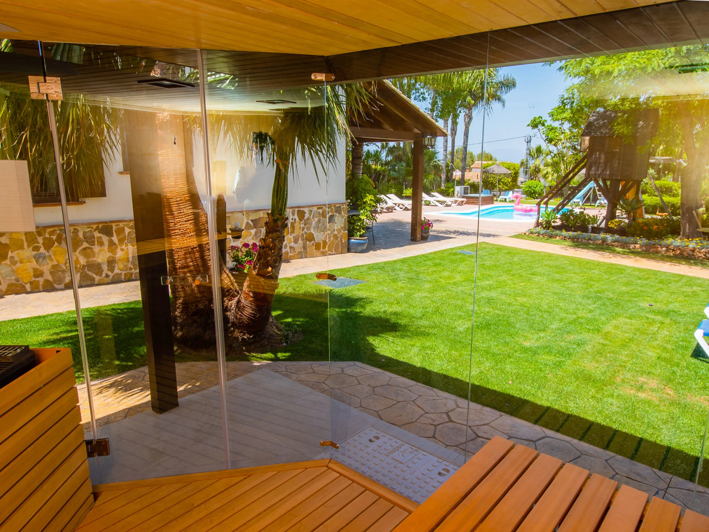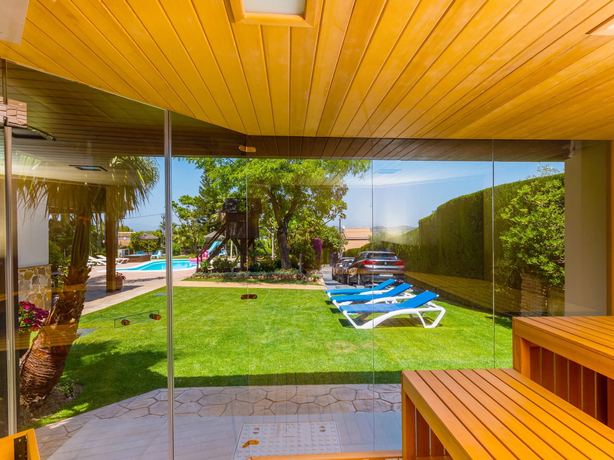 Im Freien genießen Sie eine Grillzone und Außenessbereich, eine finnische Sauna, die stundenweise gebucht werden kann, einen Tischtennis- und Kickertisch in der Hauptsuite sowie weitläufige Gärten mit Hängematten und Spielen für Kinder. Zusätzlich verfügt es über eine Ladestation für Elektroautos und einen privaten Parkplatz für mehrere Fahrzeuge mit direktem Zugang zu den Hauptstraßen, um die Costa del Sol zu erkunden.
