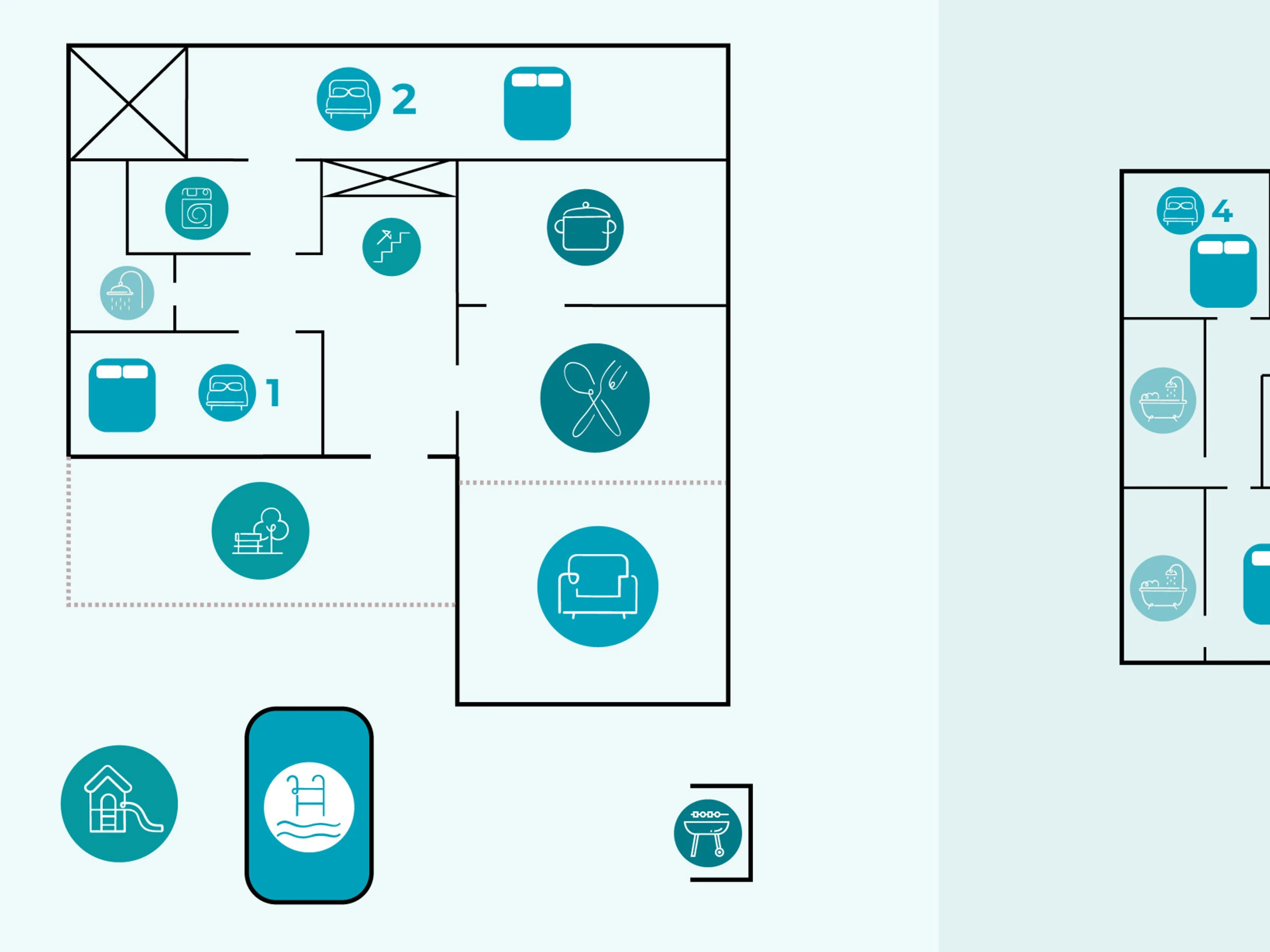 Die Immobilie erstreckt sich über 1.300 m² privates Grundstück mit gut gepflegten Gärten, beheiztem Salzwasserpool und einem Kinderbereich für die Kleinsten. Mit Platz für 12 Personen in 5 Doppelzimmern ist die Villa für maximalen Komfort auf zwei Etagen mit 240 m² konzipiert. Der 40 m² große Wohn-Essbereich ist mit Smart-TV und Zugang zu Plattformen wie Netflix, HBO und Amazon Prime ausgestattet, ideal für Entspannungsmomente. Die separate Küche ist komplett ausgestattet, damit Sie Ihre besten Gerichte zubereiten können.