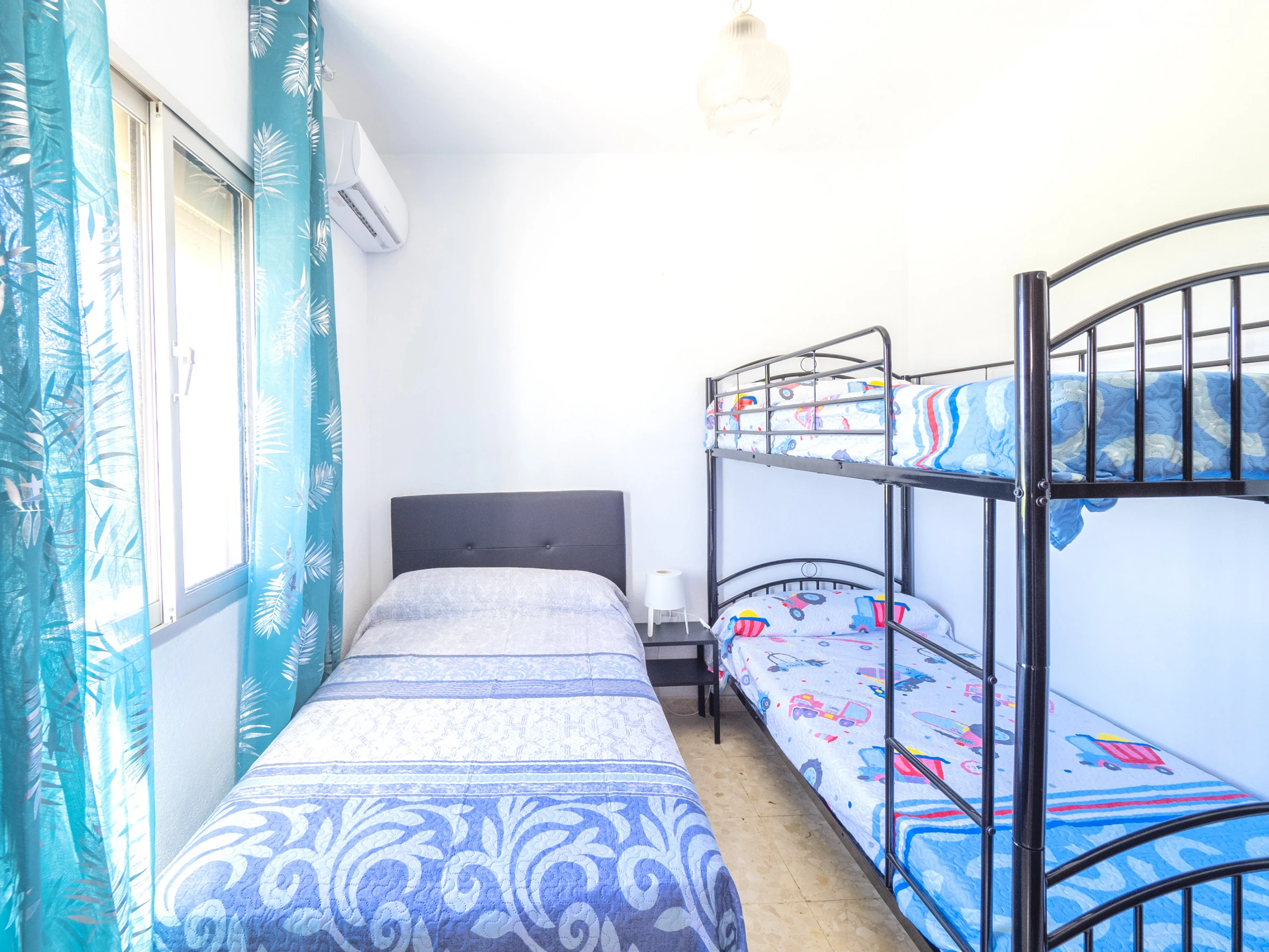 Wenn du die Treppe vom Wohnzimmer aus hochgehst, wirst du zwei lichtdurchflutete Zimmer entdecken. Das Hauptzimmer sticht durch seine Weite hervor, mit einem Schmiedeeisen-Balkon und bezaubernden Ausblicken, einem Doppelbett und Platz für Gepäck 🛏️🌄. Das zweite Zimmer bietet Panoramablicke auf Málaga und das Guadalhorce-Tal, mit einem Einzelbett und einem Doppelstockbett, perfekt für Kinder oder zusätzliche Gäste 🛌👨👩👧👦.