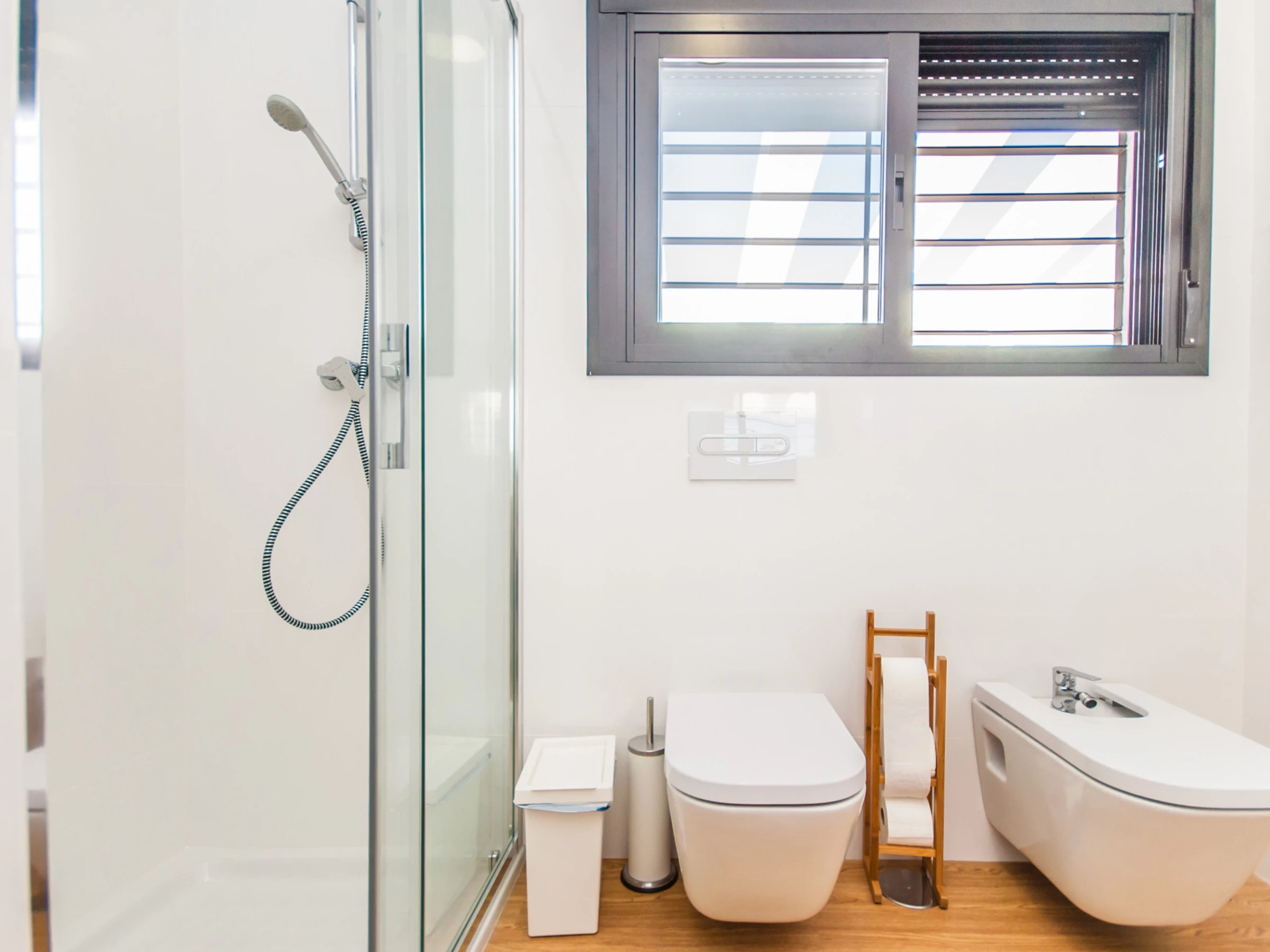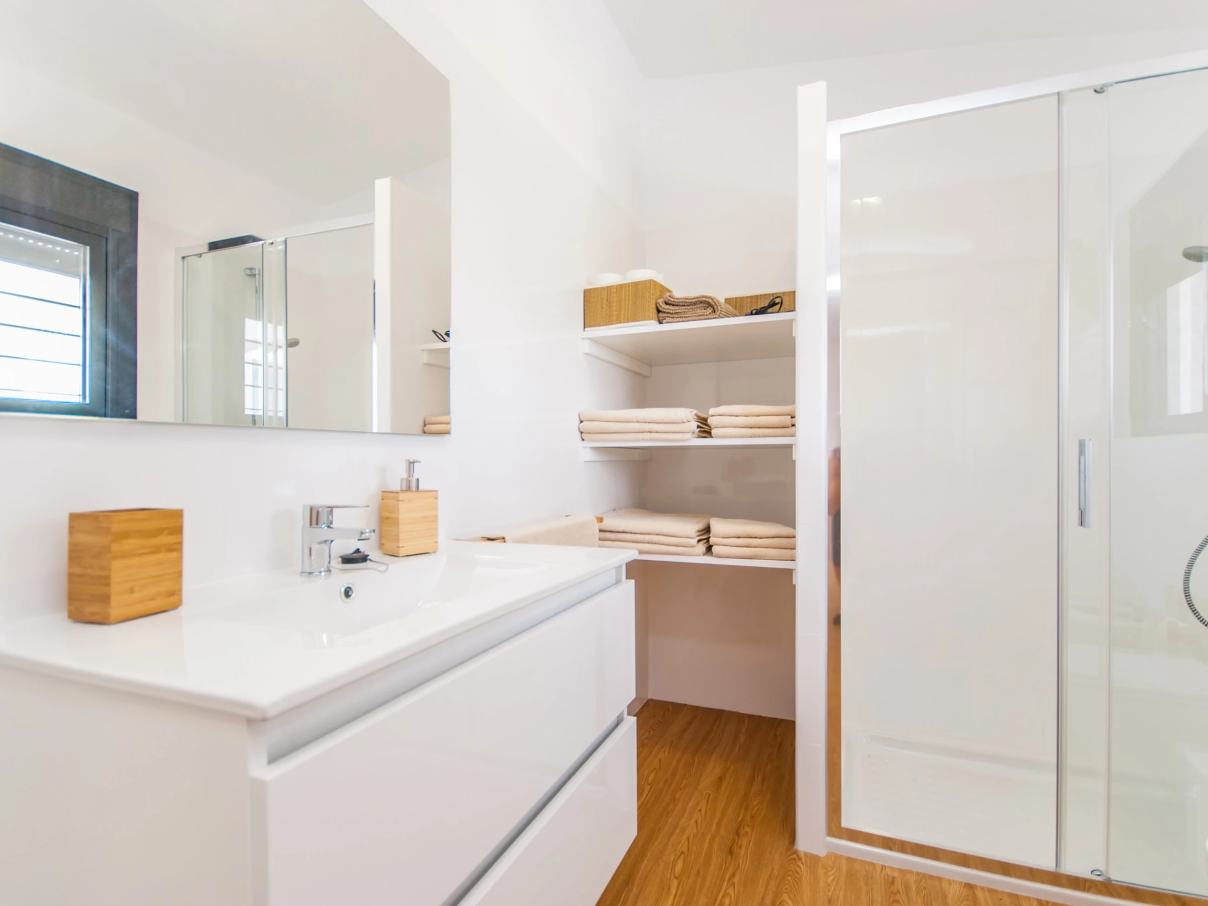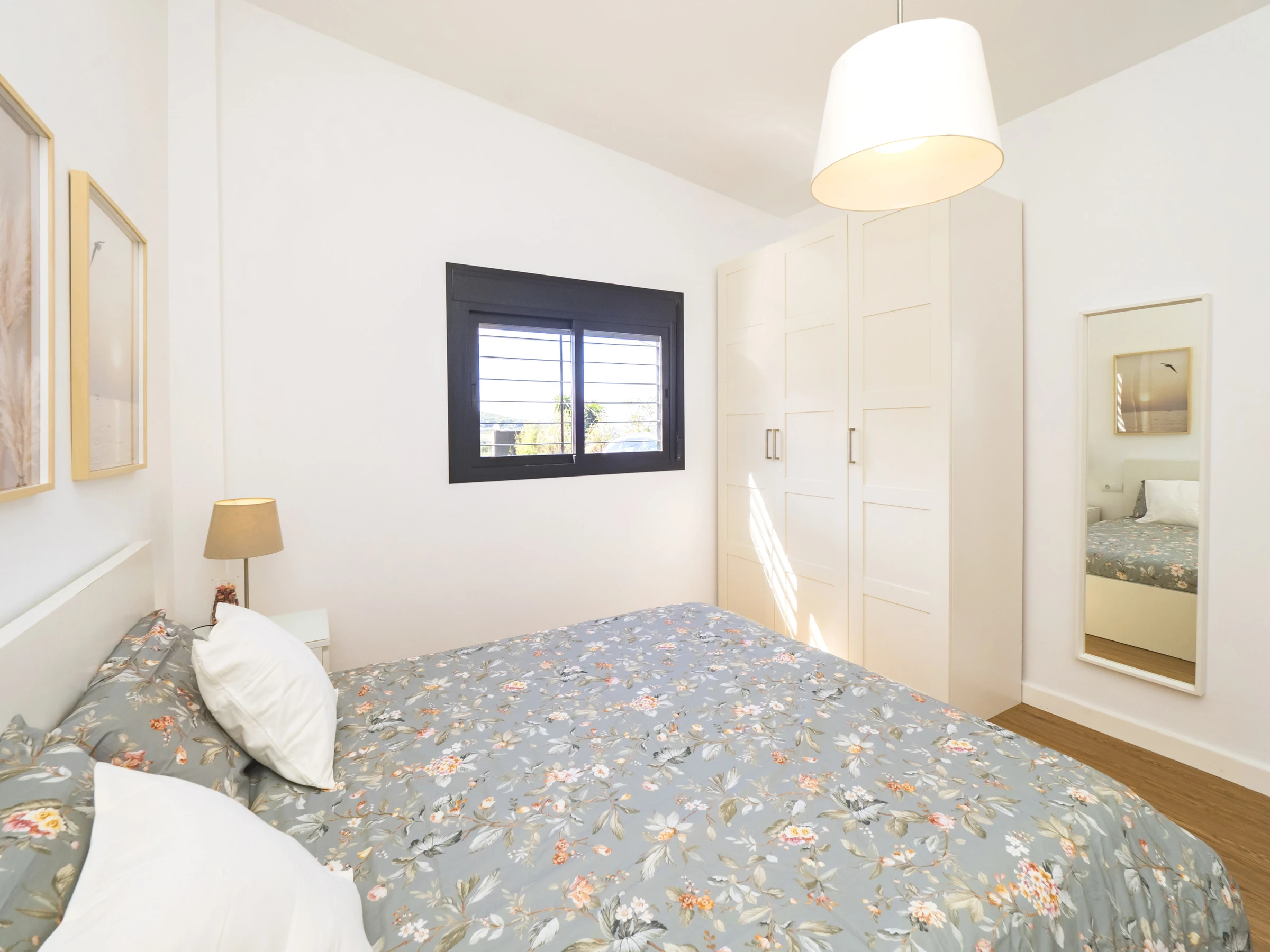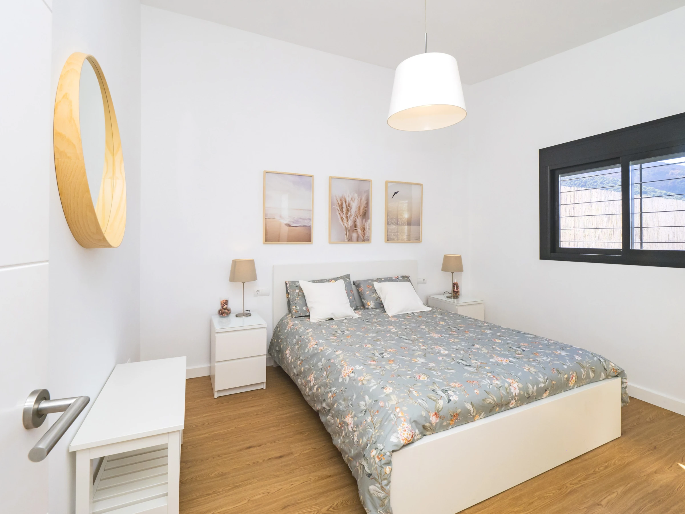 Das Hauptschlafzimmer bietet ein komfortables Doppelbett, viel natürliches Licht dank des großen Fensters und genügend Platz für Ihr Gepäck, was eine erholsame Ruhe in einer natürlichen Umgebung gewährleistet. Das moderne Badezimmer mit vollständiger Dusche vervollständigt den Komfort der Unterkunft und bietet ein belebendes Erlebnis.