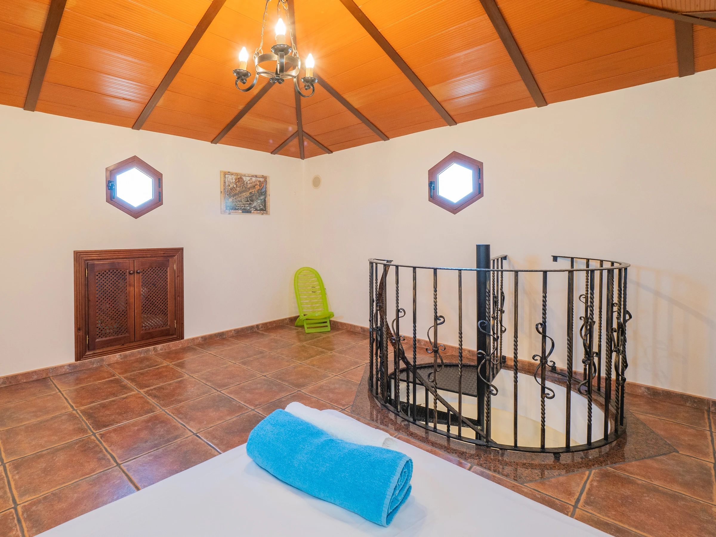 Die Schlafzimmer sind im Erdgeschoss und im Obergeschoss verteilt, mit einem Eheschlafzimmer und drei Einzelzimmern, alle mit kompletter Ausstattung. Das Haus verfügt über ein Innenbadezimmer mit Badewanne und ein weiteres Außenbadezimmer mit Dusche neben der Grillzone, ideal zum Abkühlen nach einem Tag am Pool oder bei Ausflügen. Die Küche ist unabhängig und komplett ausgestattet mit Geschirr und Haushaltsgeräten, um Ihre Lieblingsgerichte zuzubereiten. Im Wohn-Esszimmer können Sie sich entspannen, Fernsehen schauen oder sich dank des in der ganzen Haus verfügbaren WLAN mit dem Internet verbinden.