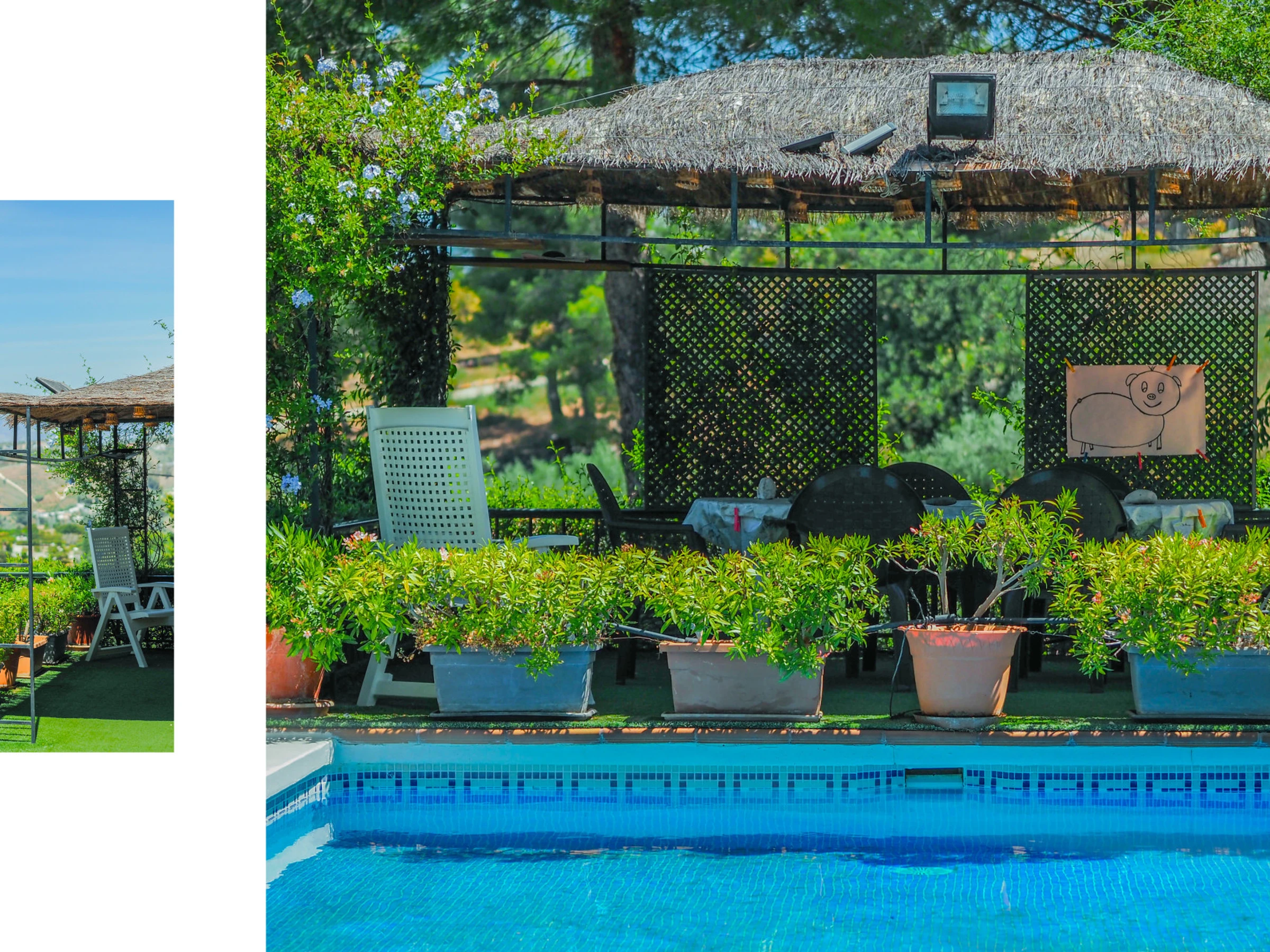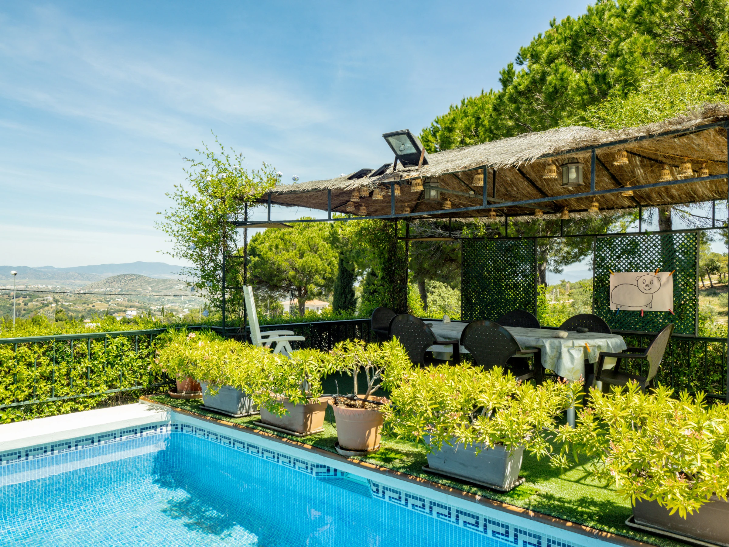 Genieße diese exklusive Holzunterkunft, umgeben von einer einzigartigen Naturumgebung und mit direktem Zugang zum Wanderweg der Gran Senda de Málaga Nummer 249.2. Gelegen weniger als fünf Minuten vom Zentrum von Alhaurín el Grande entfernt und etwa 25 Minuten von Fuengirola, ist dieses Haus perfekt, um Natur und Komfort zu kombinieren. Sie können sich in Ihrem privaten Pool mit spektakulären Blicken auf den Wald entspannen, ein idealer Ort, um sich im Sommer abzukühlen und magische Nächte unter dem Sternenhimmel zu genießen. Der Pool verfügt über eine Pergola mit Tisch und sechs Stühlen, sodass Sie draußen zu Mittag essen und die Kleinen in aller Ruhe im Auge behalten können.