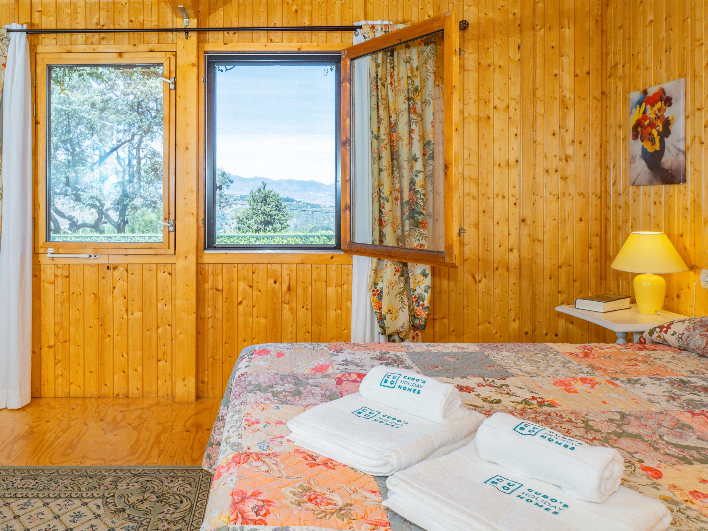 Der Zugang ist einfach, mit einem 100 Meter langen Weg, der in eine Ebene mündet, wo Sie bequem parken können. Von Anfang an werden Sie die Privatsphäre und den Komfort spüren, den diese Unterkunft bietet, ausgestattet mit unbegrenztem WLAN und Klimaanlage in allen Räumen. Der seitliche Eingang führt zu einer verglasten Terrasse, die sich vollständig öffnen lässt und einen vielseitigen Raum bietet, um bei Sonnenaufgang zu frühstücken oder am Nachmittag in der Kühle entspannt zu lesen.