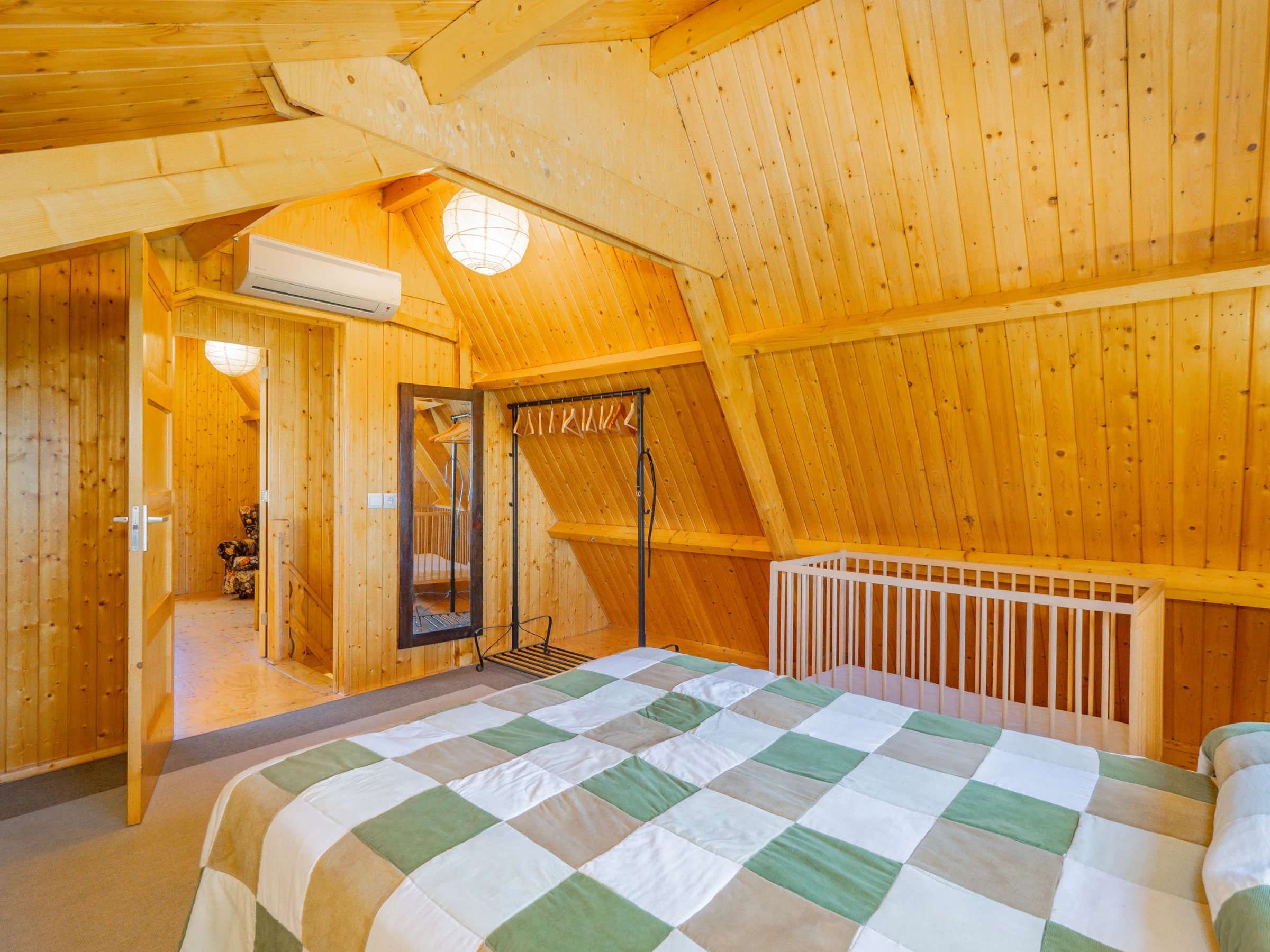 Diese Etage verfügt außerdem über ein sehr lichtdurchflutetes Hauptzimmer, ausgestattet mit einer schönen Wiege für die Kleinsten, und ein vollständiges Badezimmer mit Duschplatte, das Komfort und Funktionalität bietet. Wenn Sie in das obere Stockwerk hinaufsteigen, werden Sie zwei geräumige und gut ausgestattete Schlafzimmer entdecken, mit Klimaanlage in allen Räumen, um Ihren Komfort zu gewährleisten. Zwischen diesen Schlafzimmern befindet sich ein zweites Badezimmer mit Duschplatte, ideal für Familien oder Gruppen von bis zu sechs Personen.
