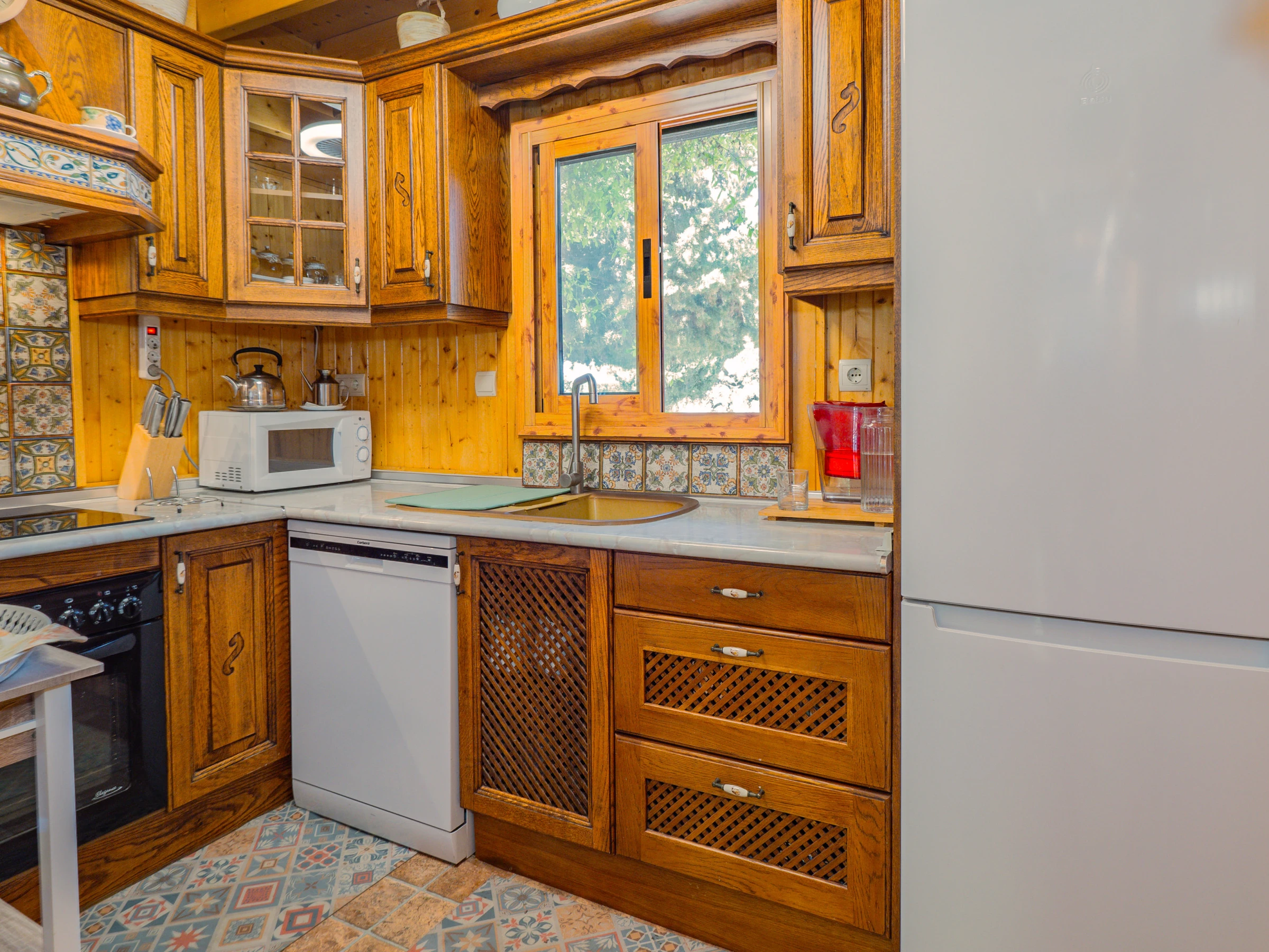 Im Erdgeschoss finden Sie einen modernen Salon mit bequemen Sofas und Fernsehen mit Internetkanälen, der direkt mit der verglasten Terrasse-Esszimmer verbunden ist, die auch als Lesebereich dient. Die separate Küche ist vollständig ausgestattet mit Glaskeramikkochfeld, Kühlschrank, Mikrowelle, Backofen, Gefrierschrank, Waschmaschine, Geschirrspüler, Kaffeemaschine, Toaster, Wasserkocher und Entsafter, was Ihnen die Zubereitung Ihrer Lieblingsgerichte erleichtert.