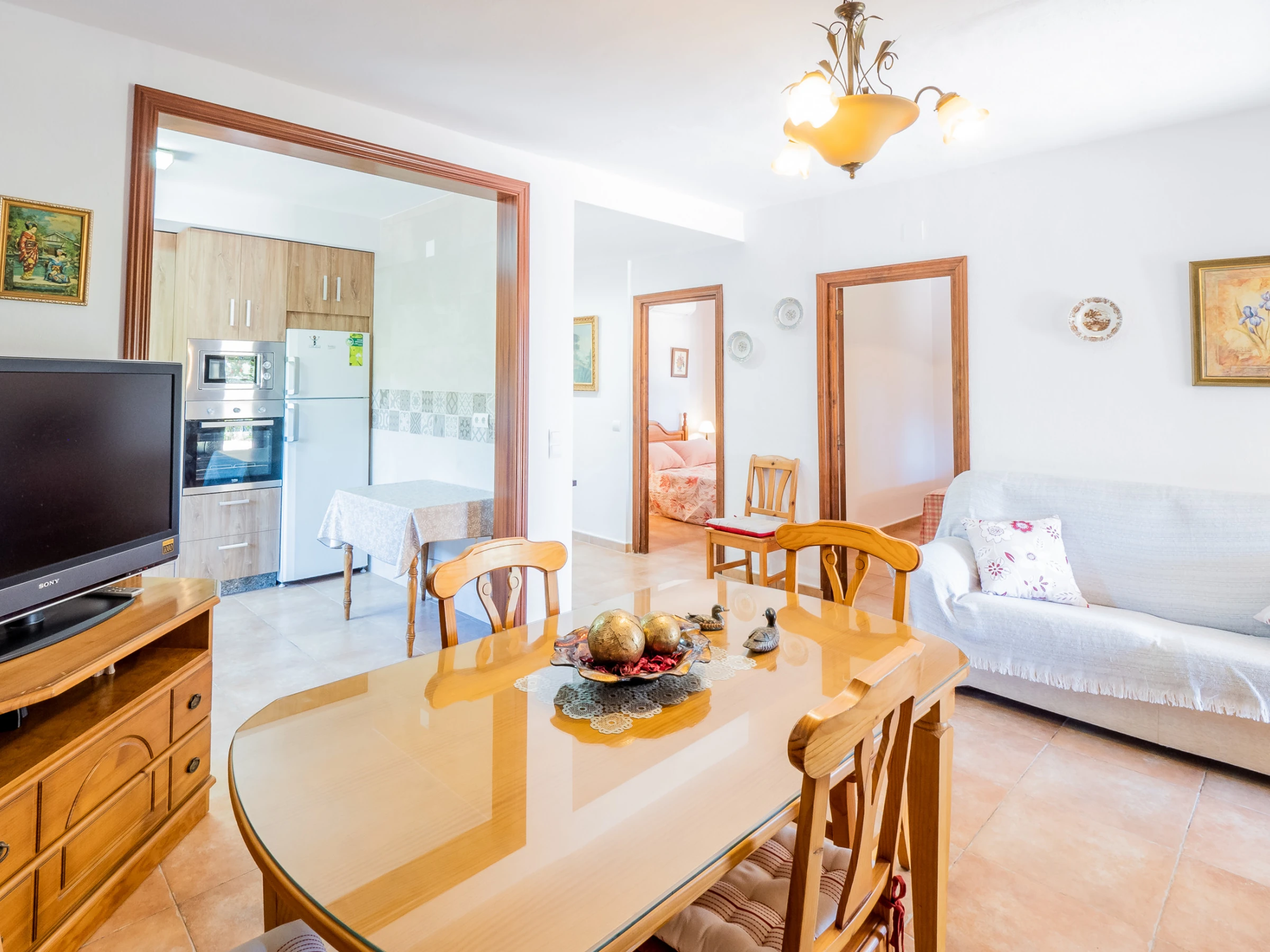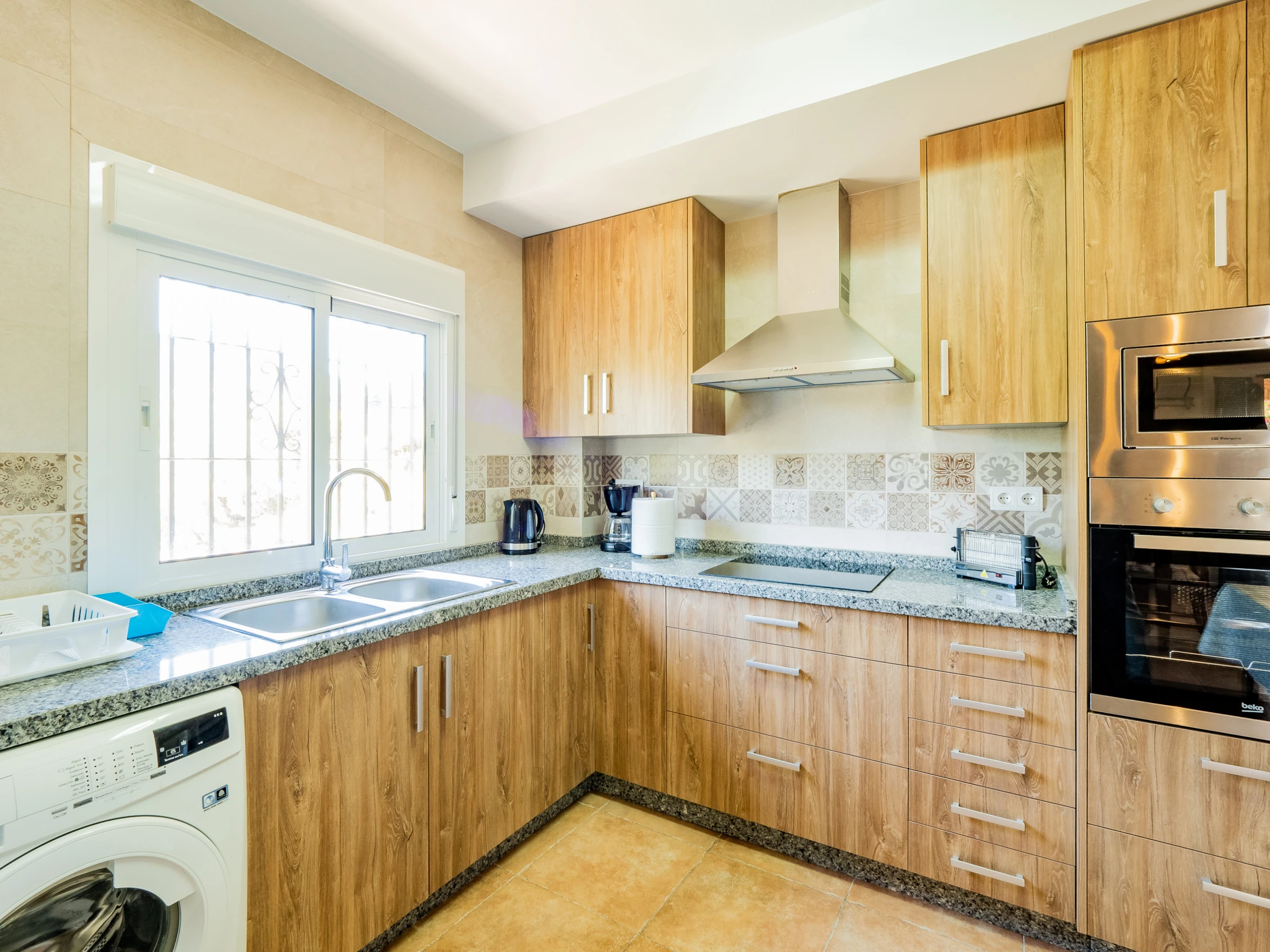 Das Haus mit 130 m² ist komfortabel und hell, mit Platz für 6 Personen, verteilt auf drei Schlafzimmer (zwei mit Doppelbett und eines mit zwei Einzelbetten). Bitte beachten Sie, dass diese Unterkunft nicht mehr als ein Baby pro Buchung (0-2 Jahre) zulässt. Alle Zimmer verfügen über Fenster nach draußen und Stauraum für Ihr Gepäck. Die Unterkunft bietet ein gemütliches Wohn-Esszimmer mit Fernseher und bequemen Sofas, ideal zum Entspannen mit der Familie. Die Küche ist geräumig und ausgestattet mit Glaskeramikkochfeld, Ofen, Mikrowelle, Kühlschrank, Gefrierschrank und allen notwendigen Utensilien, perfekt zum einfachen Zubereiten Ihrer Mahlzeiten.
