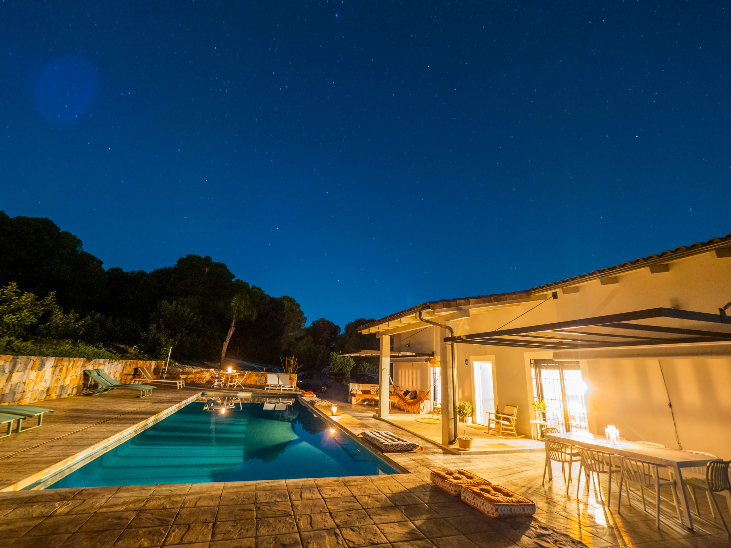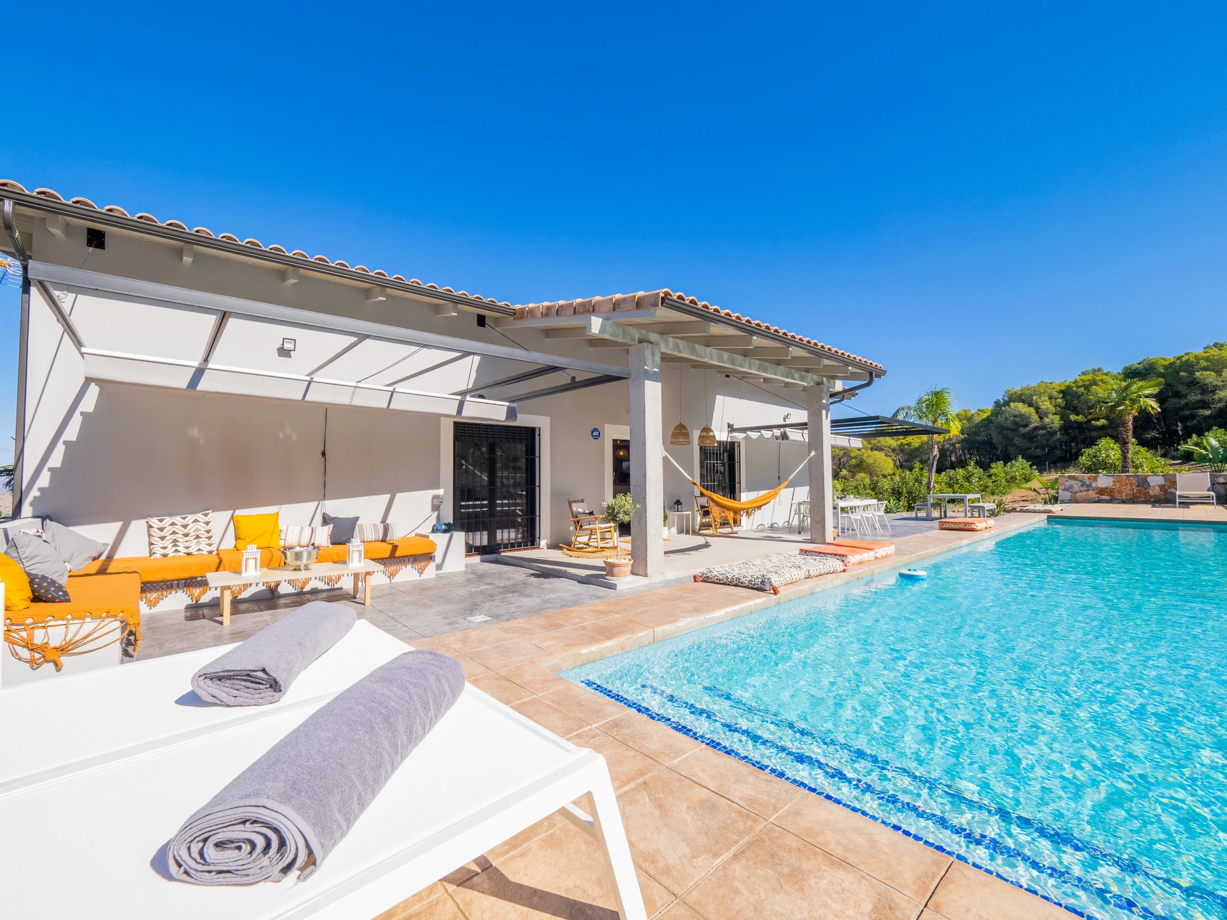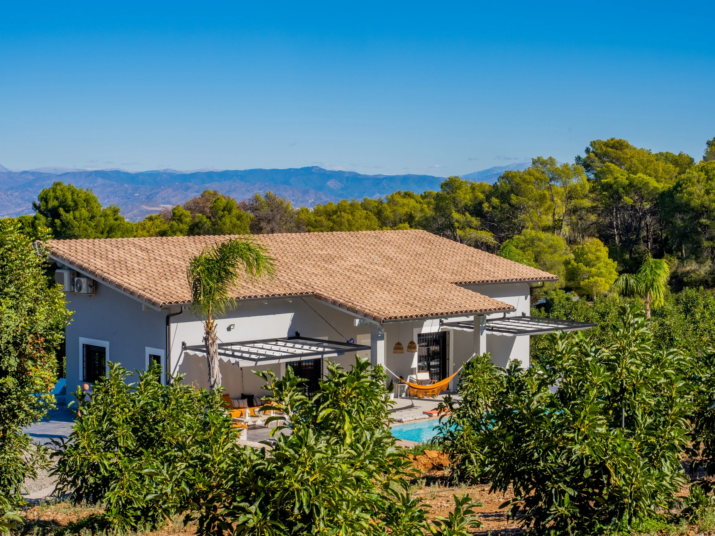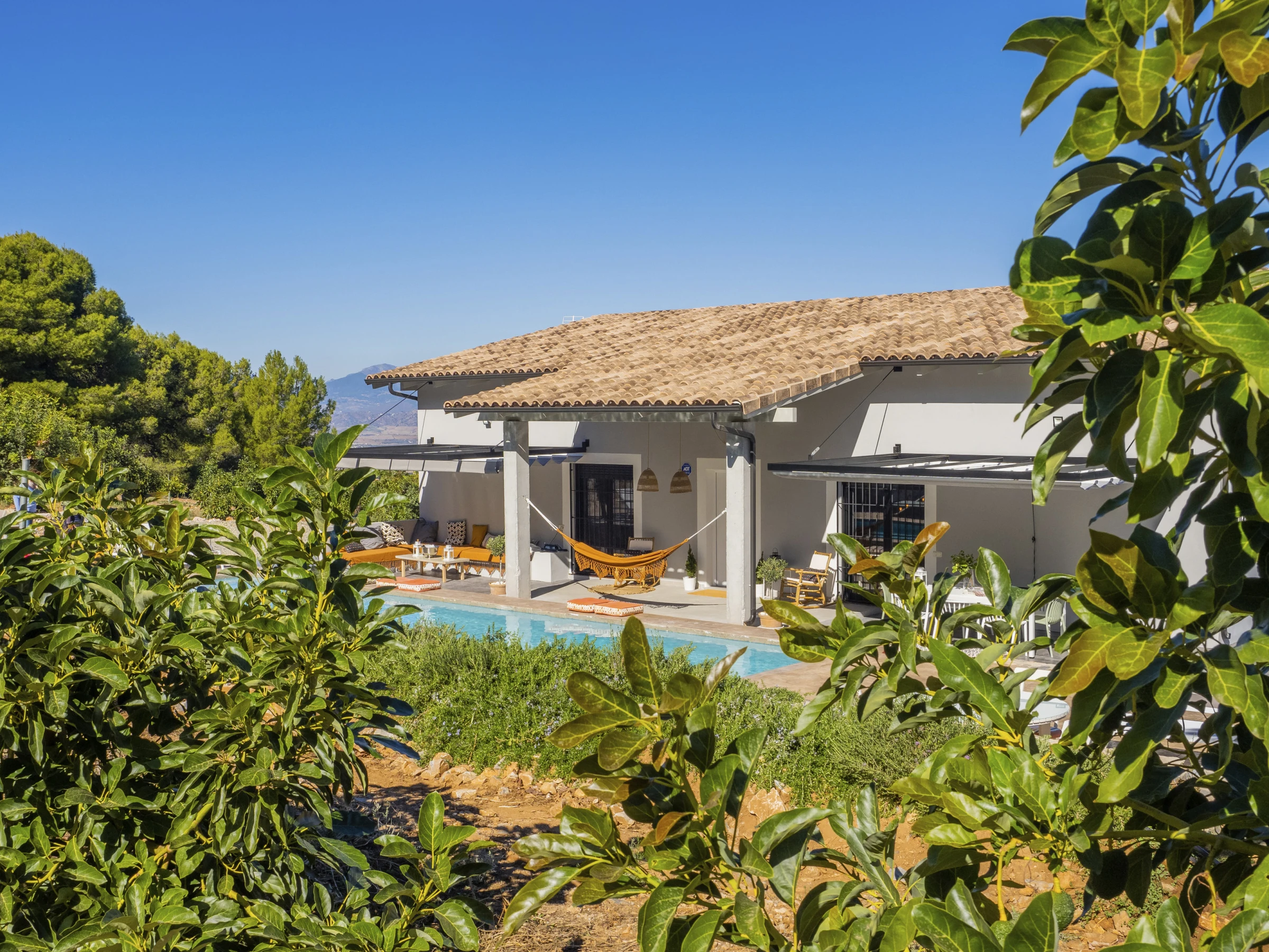 Von Kiefern und Avocados umgeben, bietet die Villa Außenbereiche mit großer Privatsphäre und einen bequemen und sicheren Pool für die Kleinsten 🏊♀️☀️. Im Außenbereich können Sie Mahlzeiten auf der Elektrogrillplatte zubereiten (Grillstellen sind aufgrund der Lage nicht erlaubt). Die drei Außenbereiche mit Blick auf die Berge und die Bucht von Málaga laden zum Entspannen, Bücherlesen oder zum Genießen des Sternenhimmels mit der ganzen Familie ein 🌟📚.