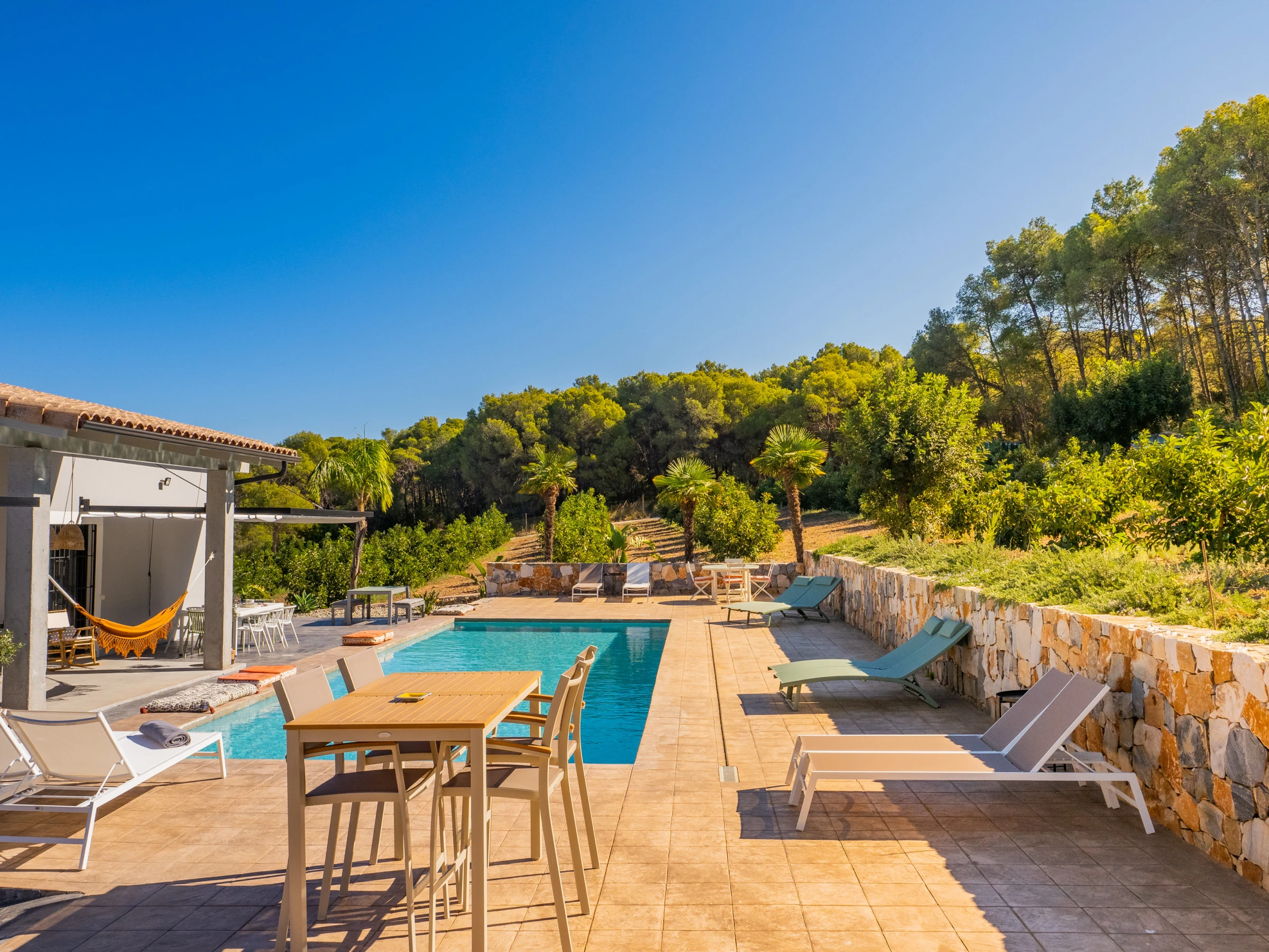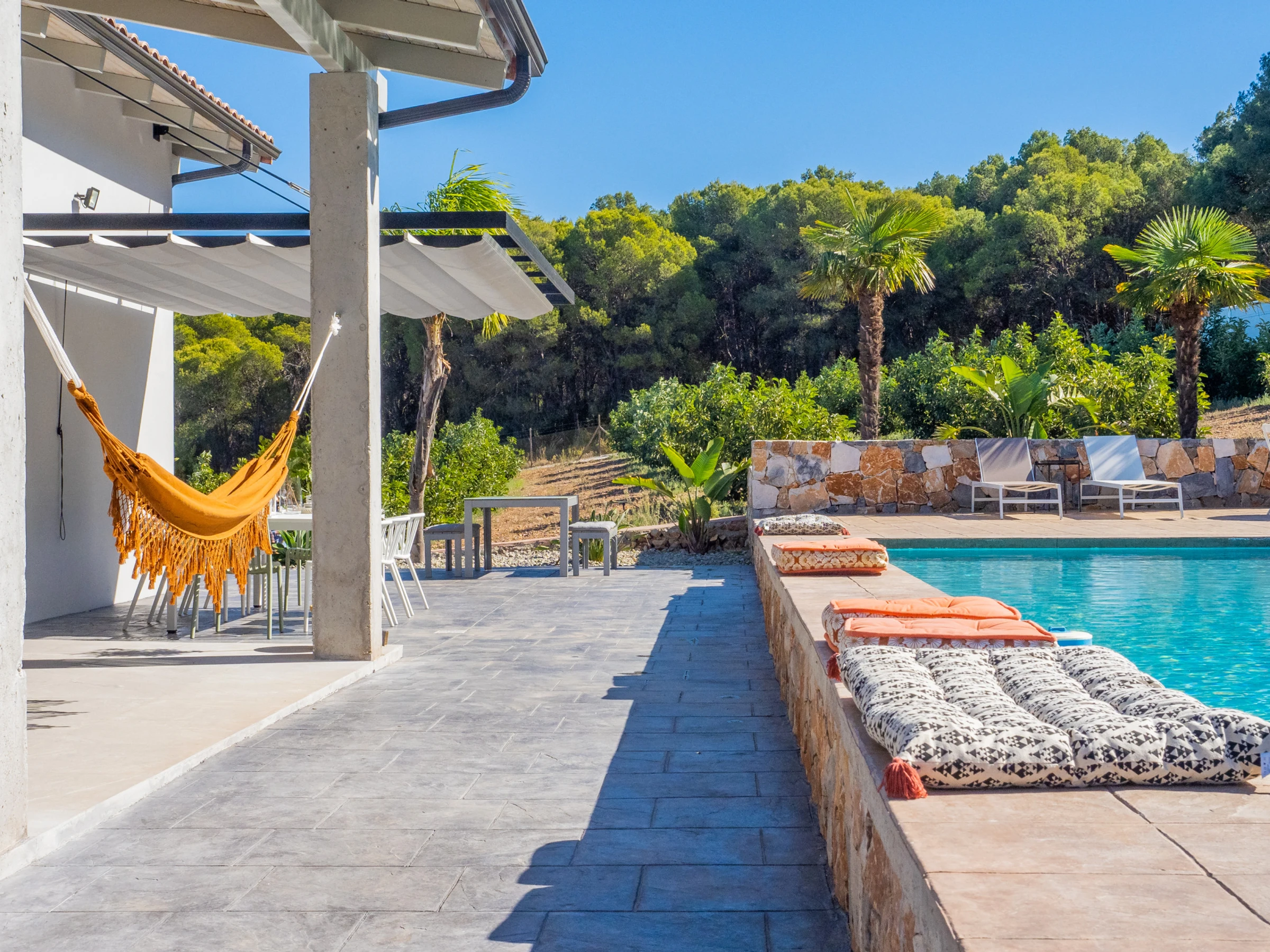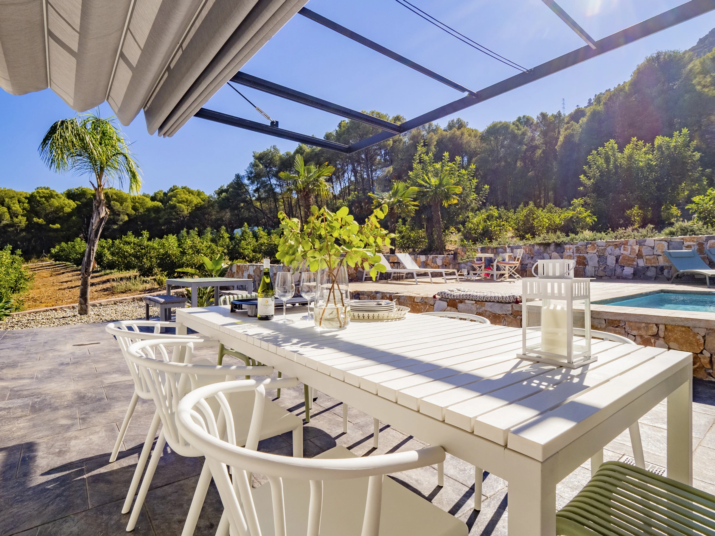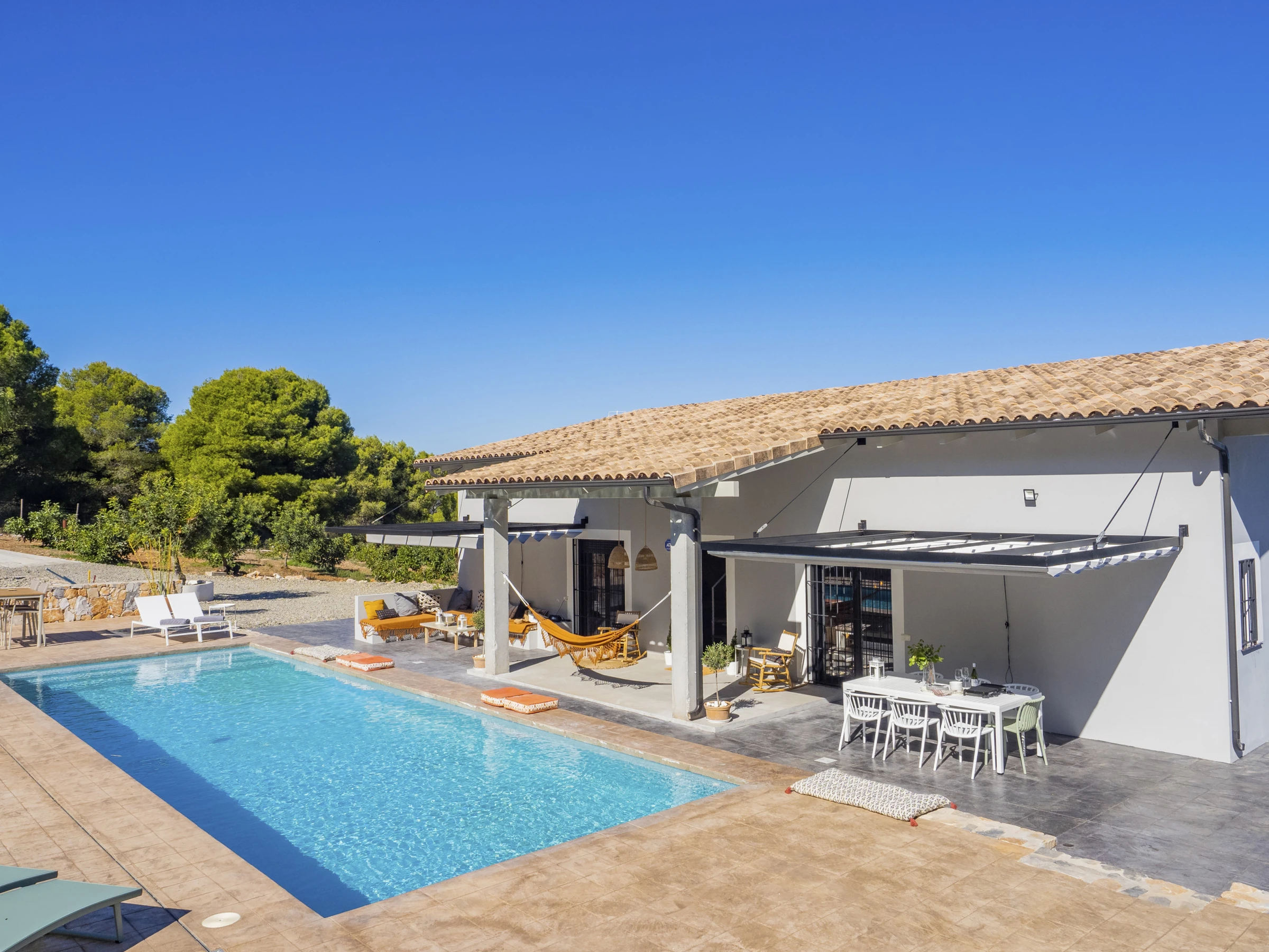 Von Kiefern und Avocados umgeben, bietet die Villa Außenbereiche mit großer Privatsphäre und einen bequemen und sicheren Pool für die Kleinsten 🏊♀️☀️. Im Außenbereich können Sie Mahlzeiten auf der Elektrogrillplatte zubereiten (Grillstellen sind aufgrund der Lage nicht erlaubt). Die drei Außenbereiche mit Blick auf die Berge und die Bucht von Málaga laden zum Entspannen, Bücherlesen oder zum Genießen des Sternenhimmels mit der ganzen Familie ein 🌟📚.