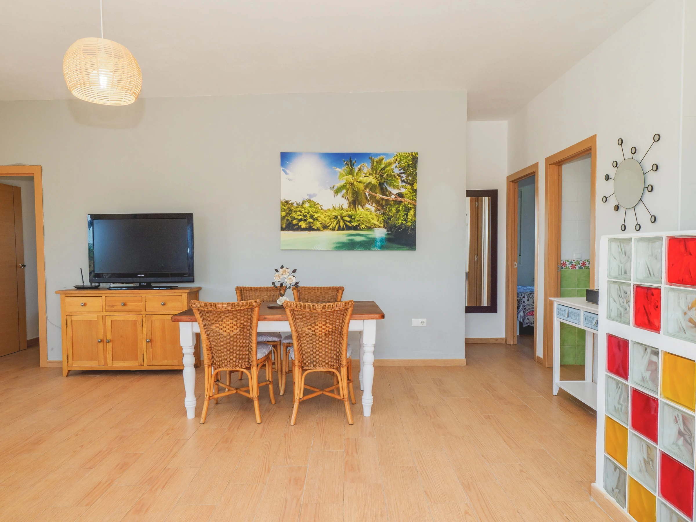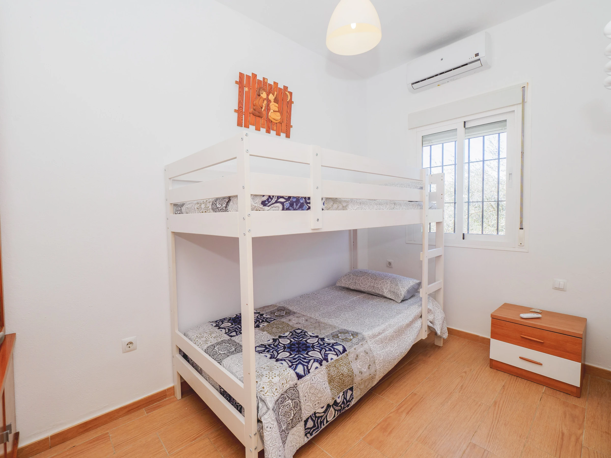 Zum Ausruhen verfügt es über drei Schlafzimmer, alle mit Platz, um das Gepäck geordnet zu verstauen und mit Fenstern nach draußen. Eines der Schlafzimmer beherbergt zwei Einzelbetten, die verbunden sind und somit die Ruhezone vergrößern. Sie können beim Gastgeber / Eigentümer beantragen, diese zu trennen. Ein zweites Schlafzimmer verfügt über ein Doppelbett und das dritte Schlafzimmer über ein Stockbett. Es gibt ein Badezimmer mit Dusche in den gemeinsamen Bereichen der Unterkunft.