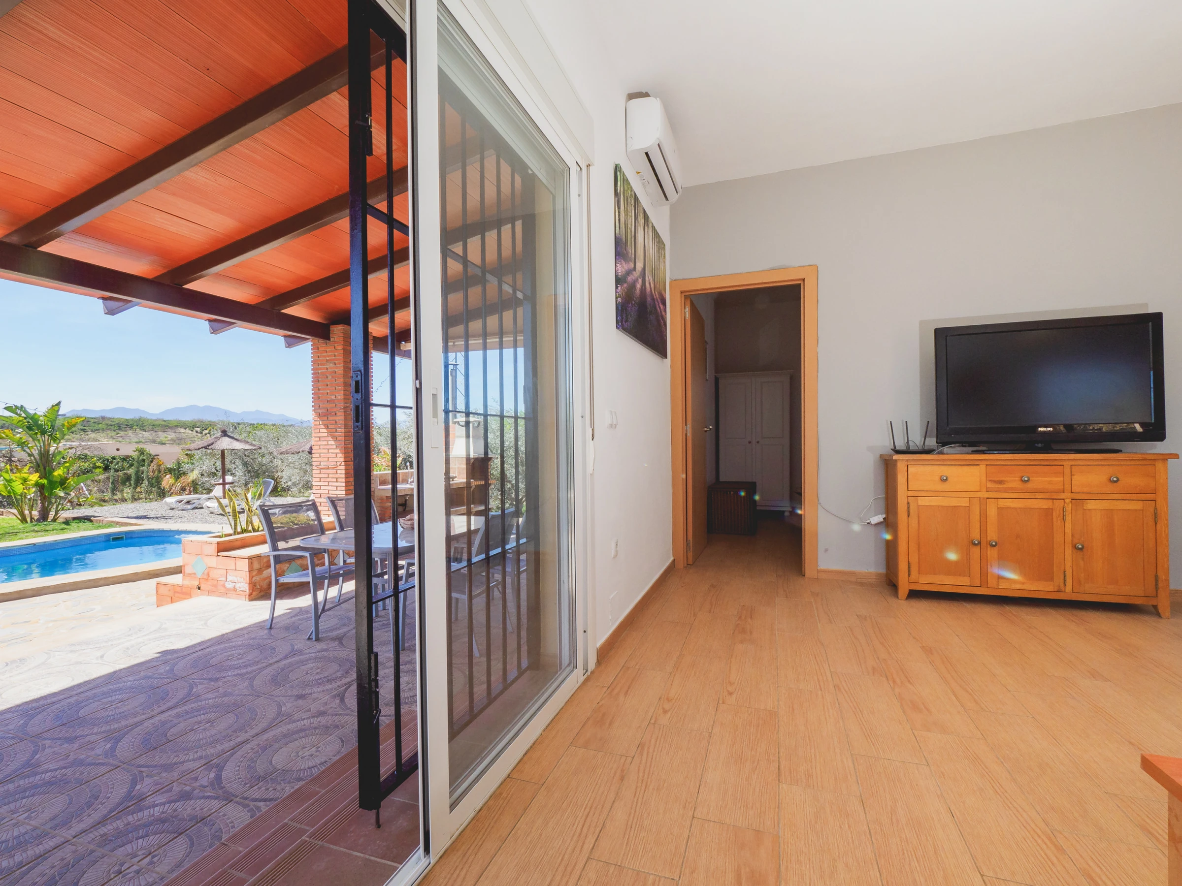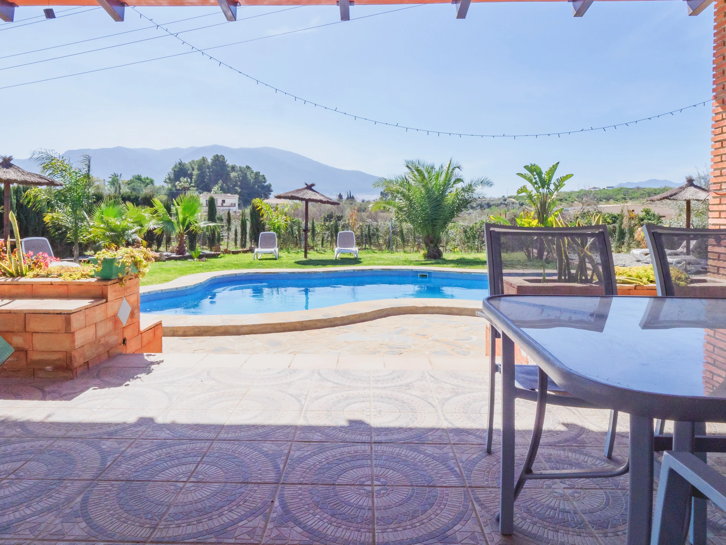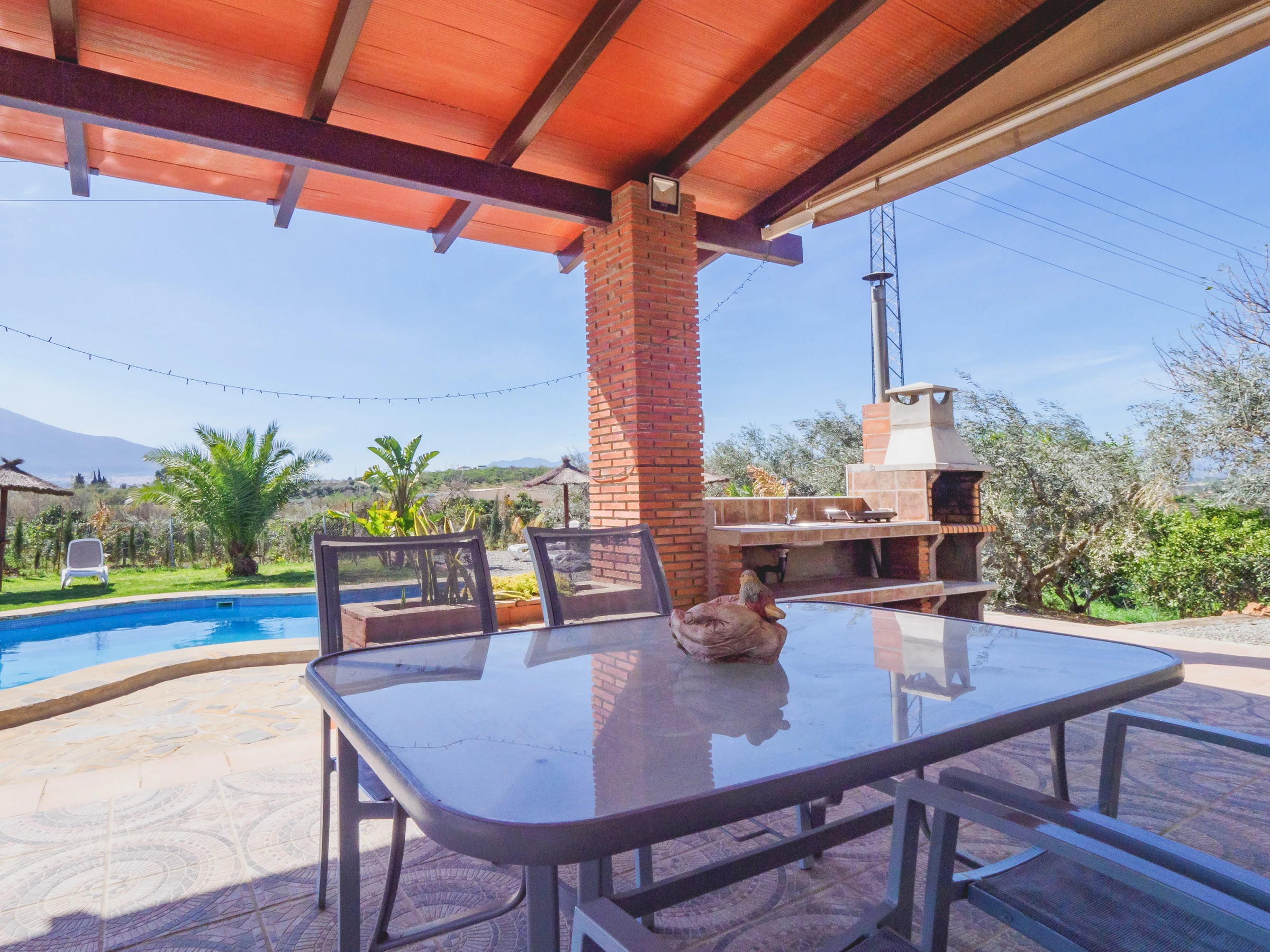 Der private Pool verfügt über eine breite Sonnenstunde zum Genießen. Mit festen Sonnenschirmen können Sie sich in deren Schatten niederlassen und ausruhen, und wenn Sie mit kleinen Kindern reisen, können Sie sie auch von der Grillzone oder von der Veranda am Eingang der Unterkunft aus beaufsichtigen, ein Raum, der mit Außenmöbeln ausgestattet ist und Ihnen ideale Mittagessen oder Abendessen in Familiengemeinschaft ermöglicht, immer in Familiengemeinschaft 🍳☀️.