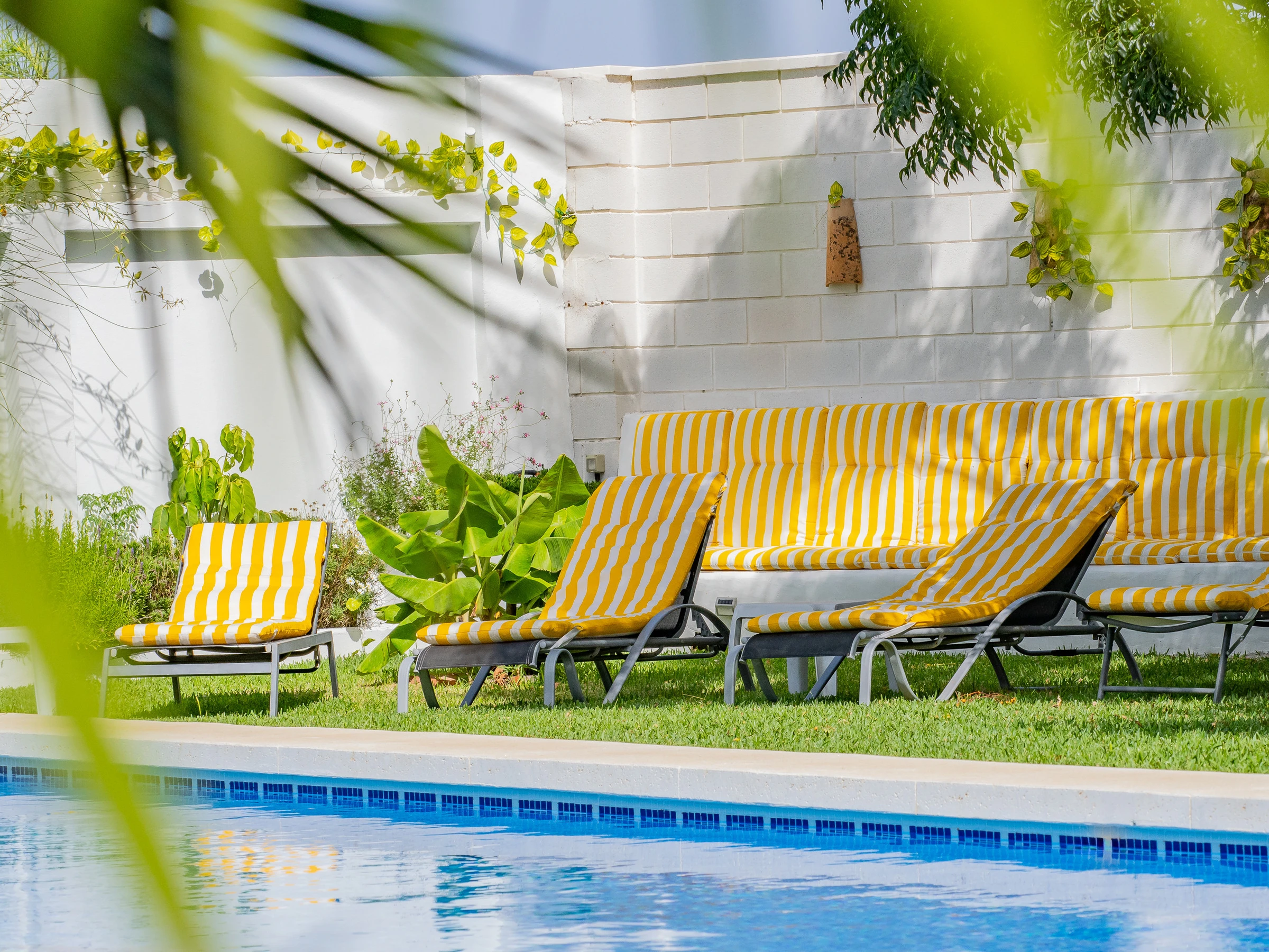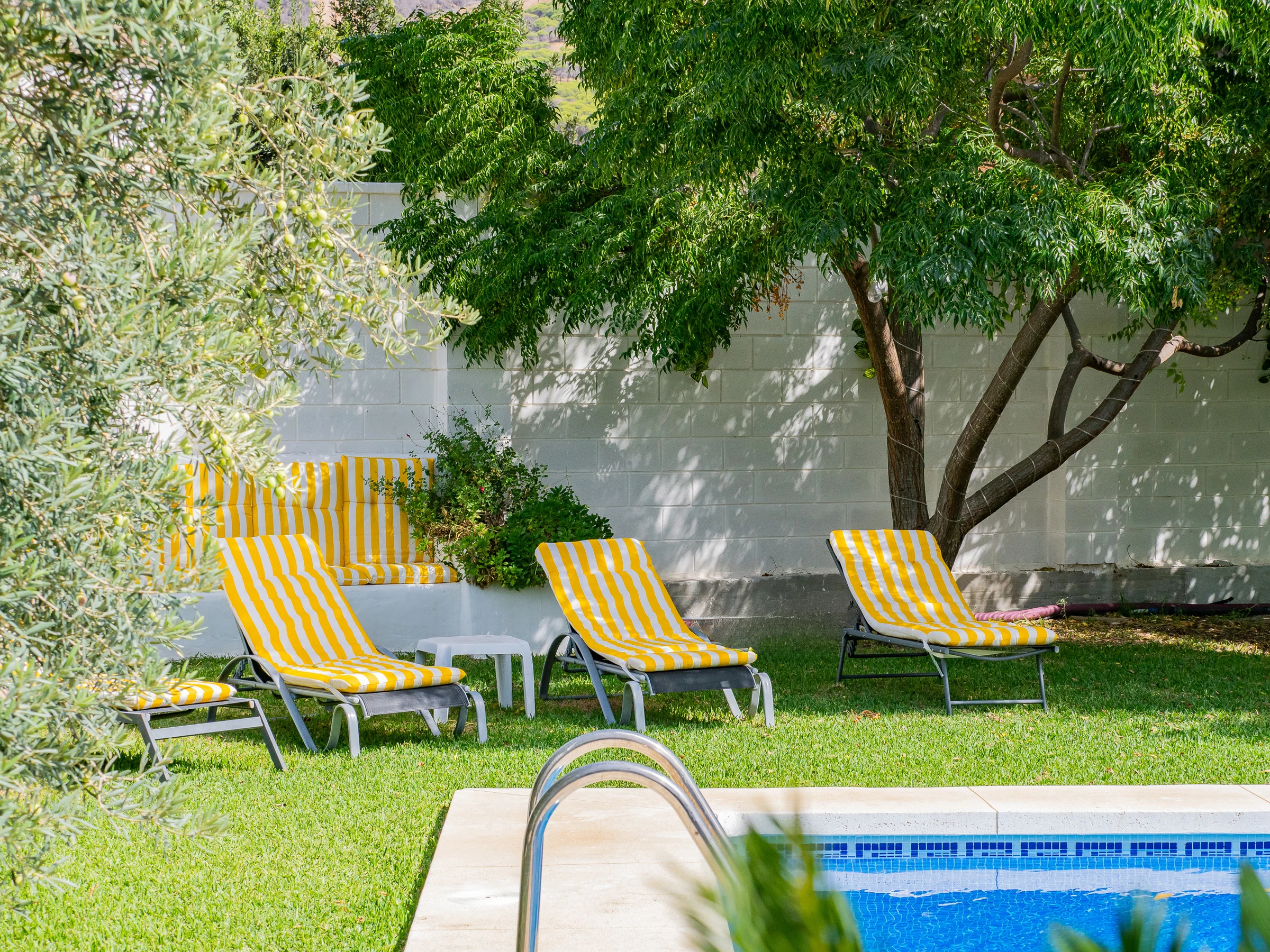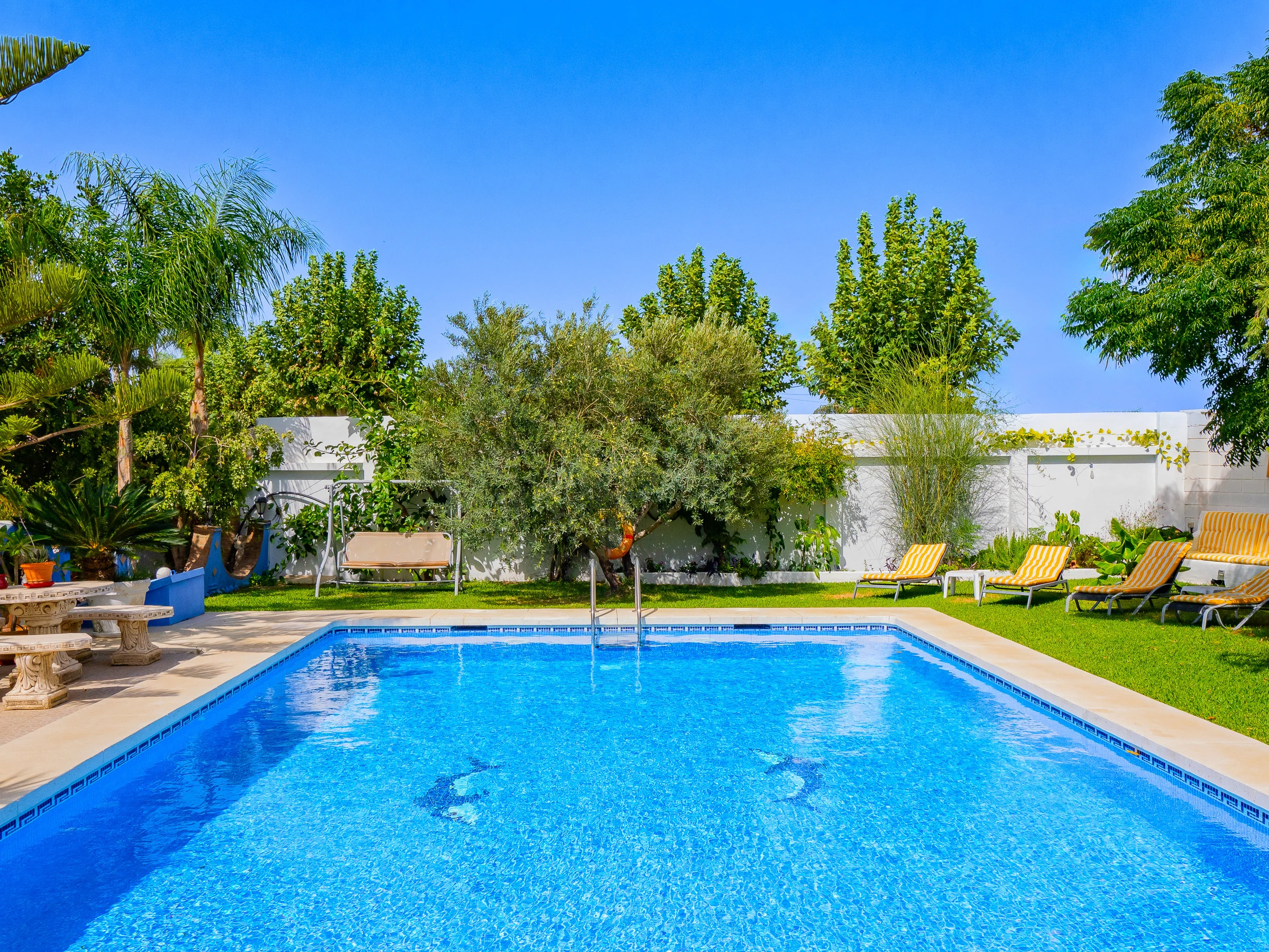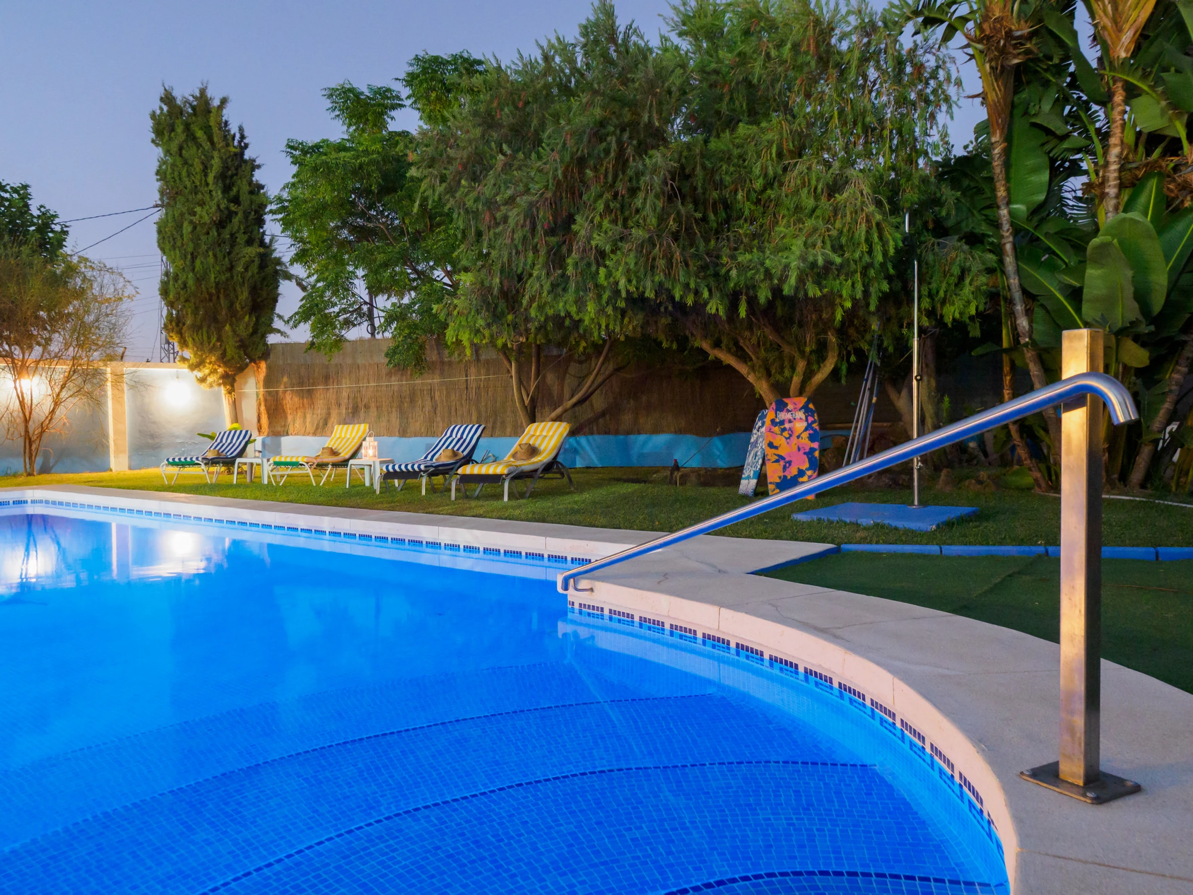 Der Außenbereich ist ein wahres Paradies: ein großzügiger privater Pool mit bequemen Treppen und Stange für mehr Sicherheit, umgeben von einem schönen Garten mit natürlichem Schatten. Von der Veranda aus, die mit Außenmöbeln ausgestattet ist, können Sie die Kleinsten beaufsichtigen, während Sie die frische Luft genießen. Der Zugang zur Unterkunft erfolgt über diese Veranda, die in ein gemütliches Wohn-Esszimmer mit bequemen Sofas und Fernsehen für diese Momente der Entspannung in der Familie führt.