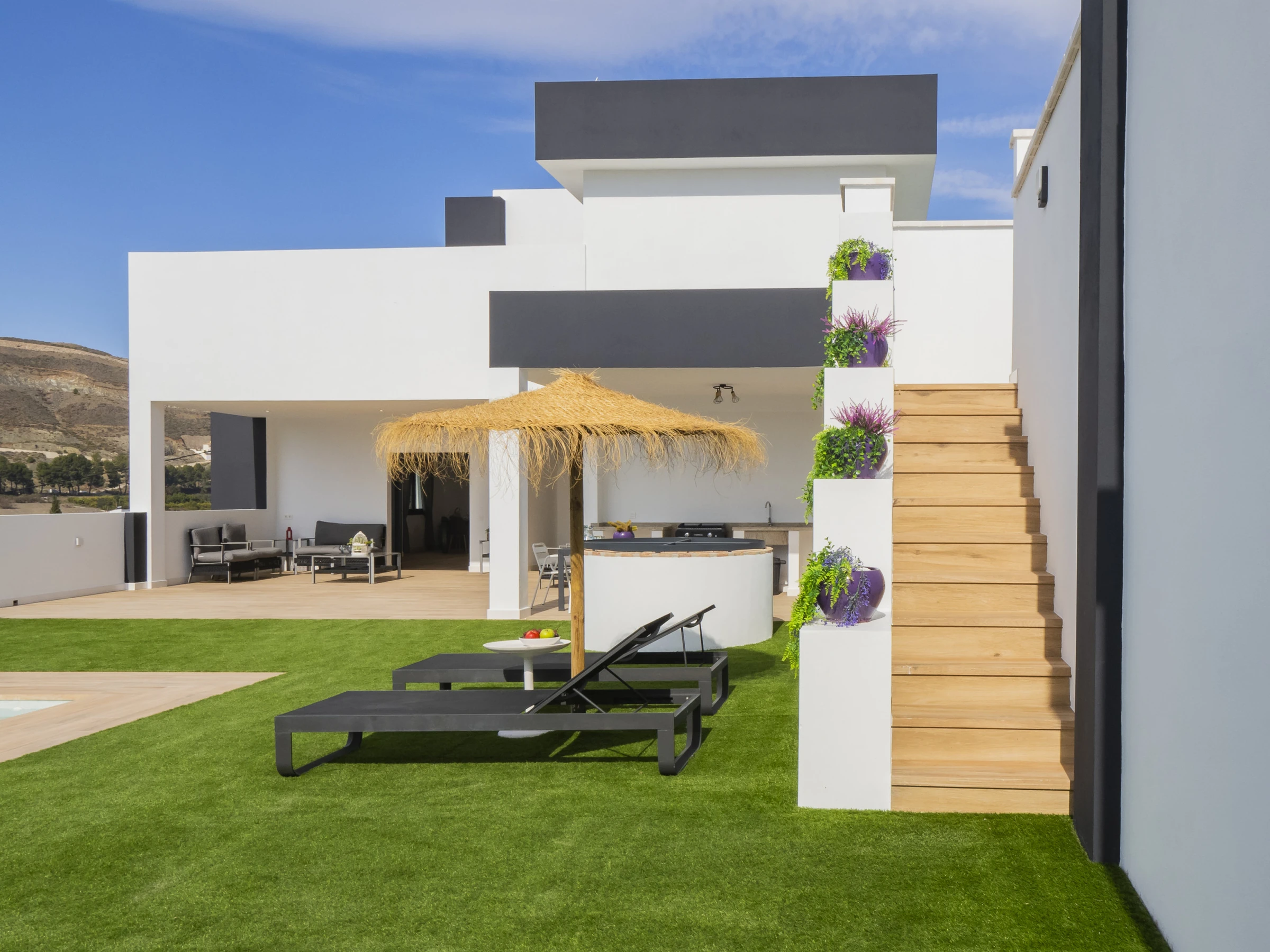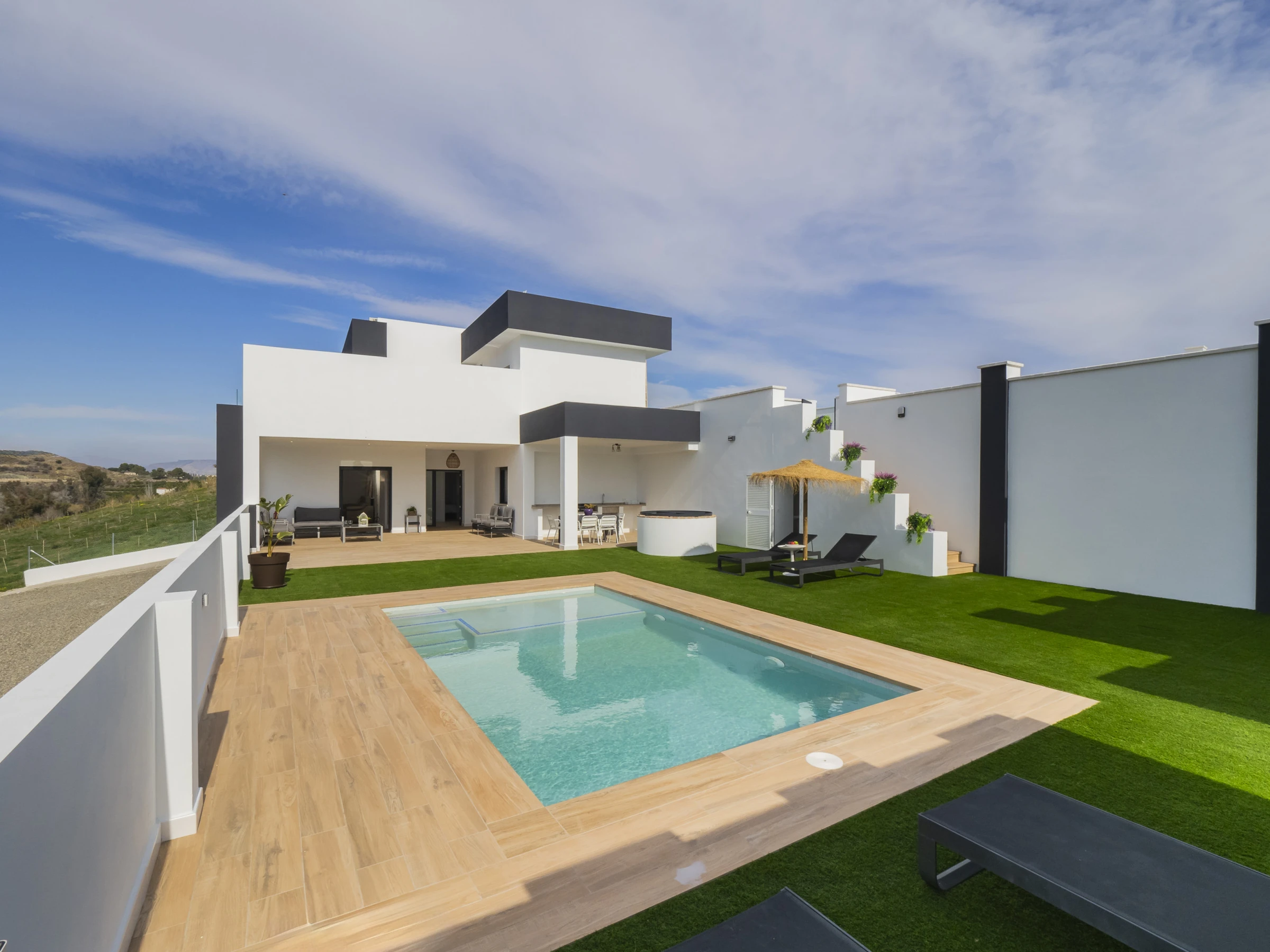 Mit 270 m² gemütlichem und modernem Raum bietet es spektakuläre Bergblicke und befindet sich nur wenige Kilometer von Schlüsselpunkten entfernt: 4 km von Alhaurín el Grande, 8 km von Coín, 22 km von Fuengirola und 33 km von Marbella, sowie in der Nähe von Naturparks, Golfplätzen und Sand- und Felsenstränden. Zu den Annehmlichkeiten gehören Garten mit Mobiliar, eingezäuntes Grundstück, privater Parkplatz, WLAN, zwei Fernseher und vollständige Haushaltsgeräte, die ein praktisches und angenehmes Erlebnis für die ganze Familie sicherstellen.