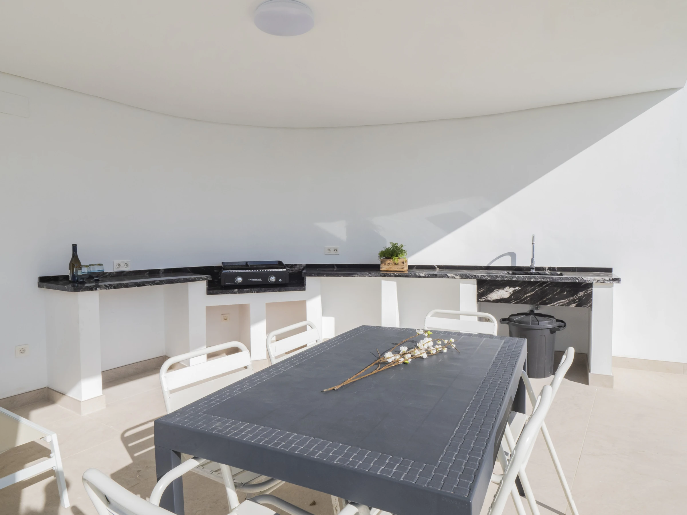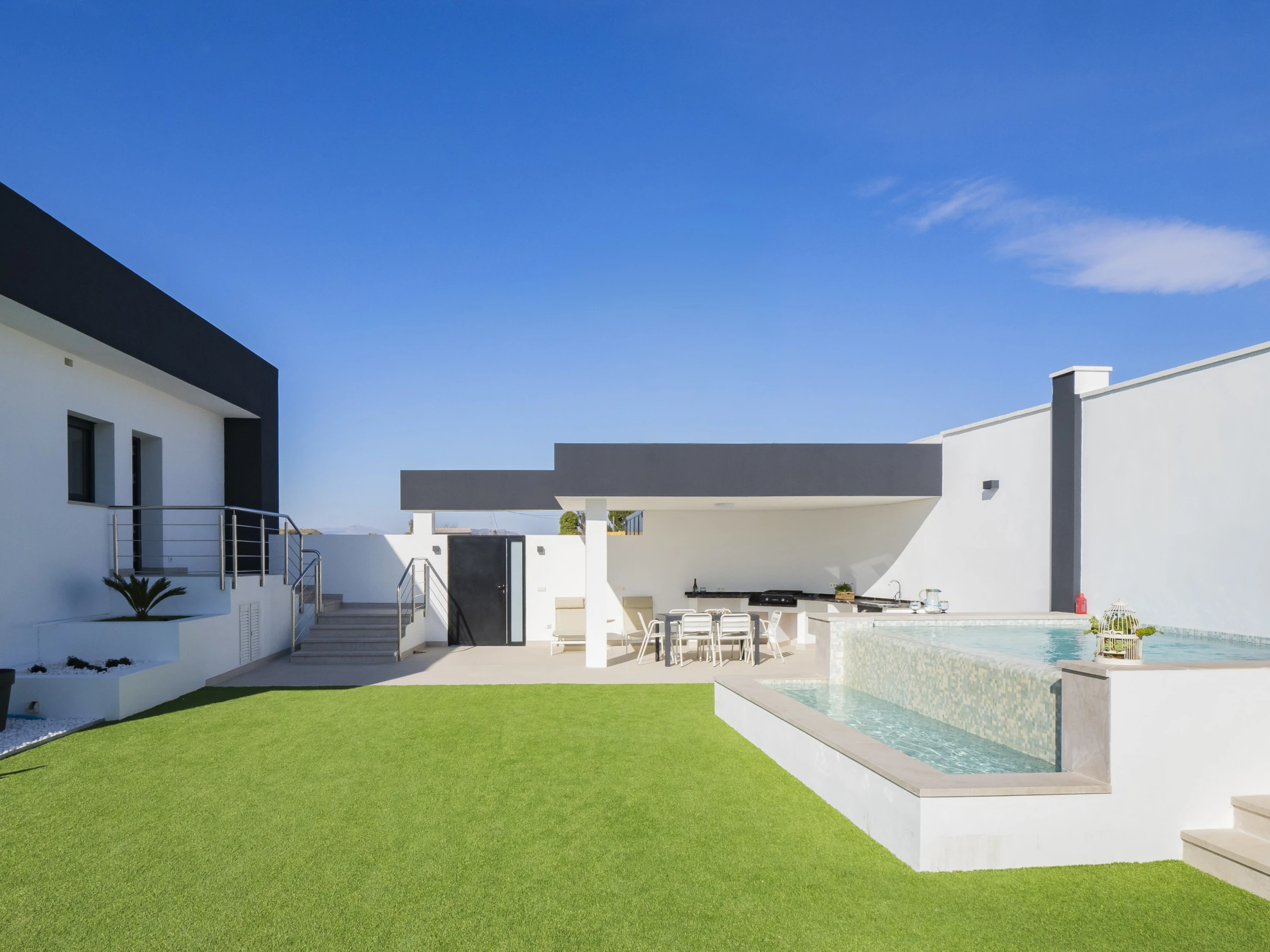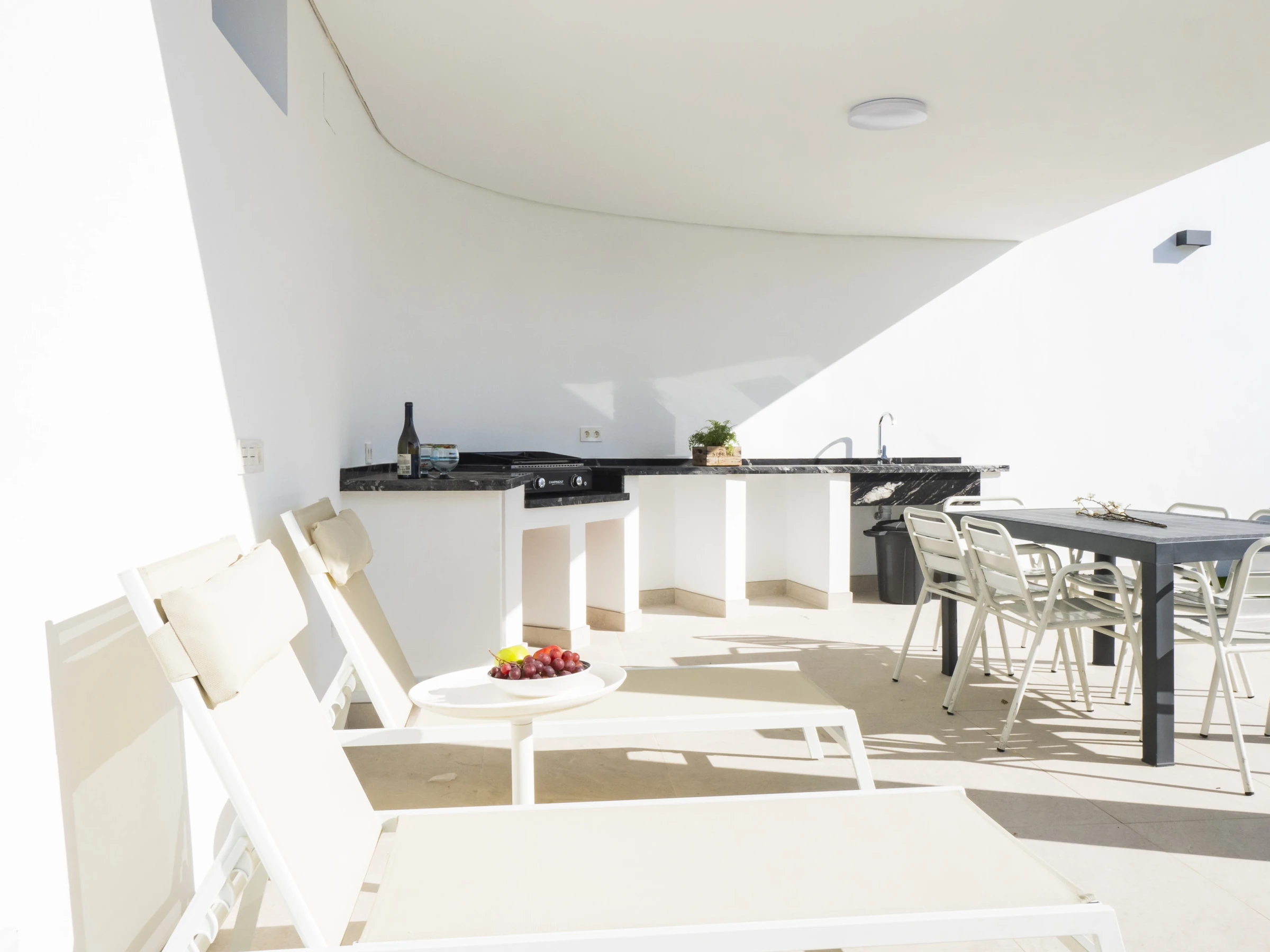 Jeder Bereich verfügt über einen Grill, ausgestattet mit Kühlschränken, Gasgrill und bequemen überdachten Bereichen mit Außenmöbeln, um Familienmahlzeiten unter der Sonne zu genießen 🌞🍽️. Das Haus verfügt auch über Solarplatten für einen nachhaltigeren Aufenthalt.