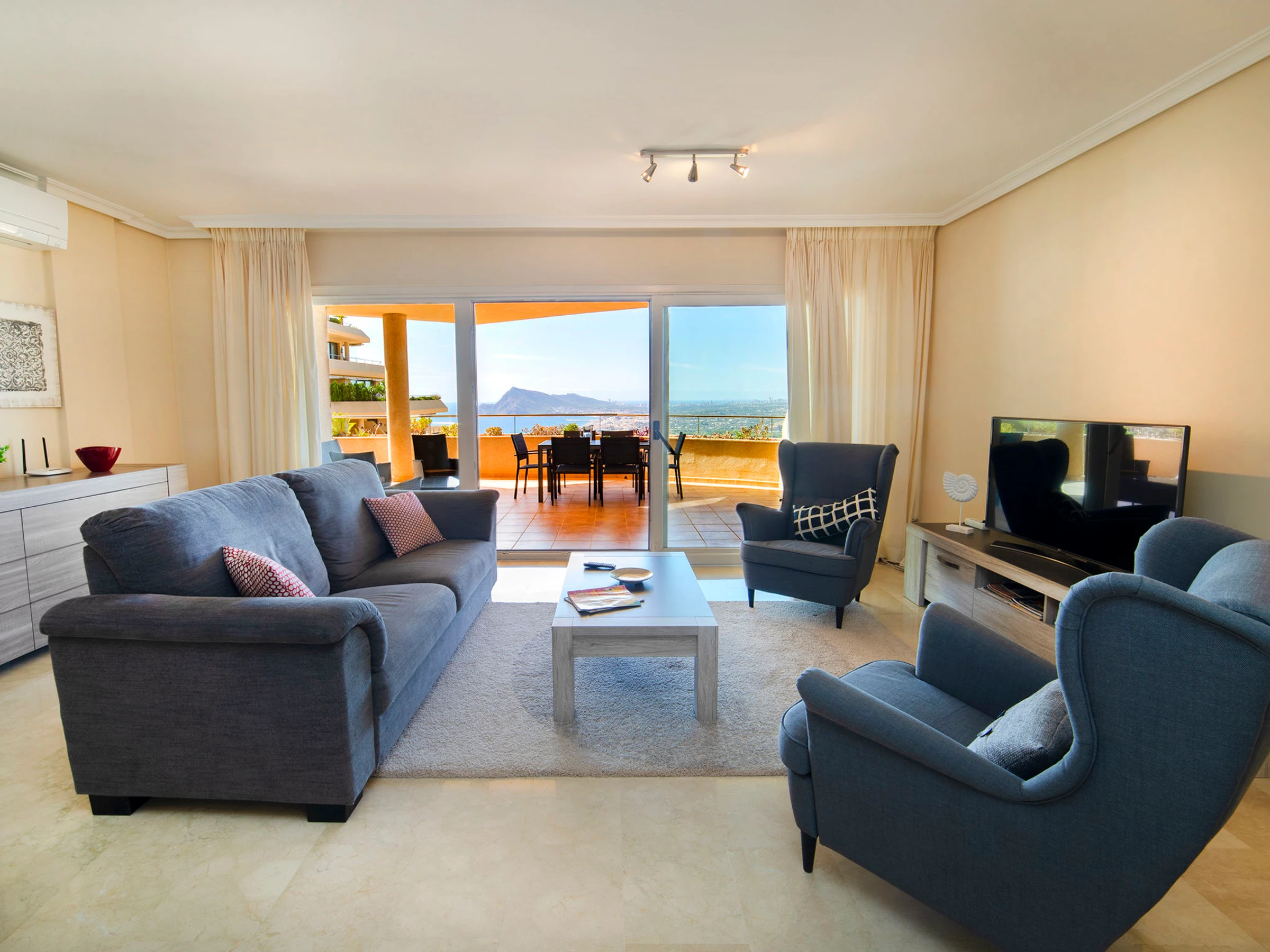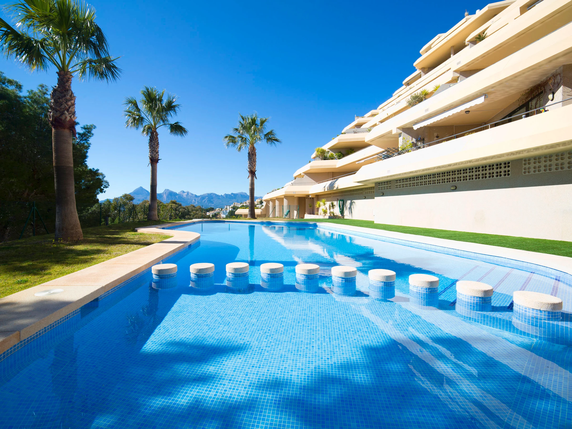 Sierra de Altea 2 km von Altea Hills: Sehr schöne, luxuriöse Residenz "Villa Marina Golf", auf 12 Stockwerken. Im Ort, 6.8 km vom Zentrum von Altea, 9.4 km vom Zentrum von Calpe, ruhige, sonnige Lage, 3 km vom Meer, 3 km vom Strand. Zur Mitbenutzung: Grundstück (eingezäunt), 2 Schwimmbäder (15 x 12 m, saisonale Verfügbarkeit: [hidden] - [hidden] Dusche/WC im Poolbereich, Kinderbecken, Terrasse. Im Hause: Fahrstuhl. Supermarkt 3.4 km, Restaurant 1.6 km, Kieselstrand "Playa de la Roda" 7.1 km, Felsstrand "Playa Mascarat" 3.9 km. Sporthafen 4.4 km, Jacht-Hafen 4.4 km, Golfplatz 3 km. Nahe gelegene Sehenswürdigkeiten: Aqualandia, Mundomar, Terra Mítica, Terra Natura, Benidorm Palace (Benidorm). Jugendgruppen nur auf Anfrage. Die Nachbarschaft ist sehr lärmempfindlich. Ruhe und gutes Benehmen wird erwartet.