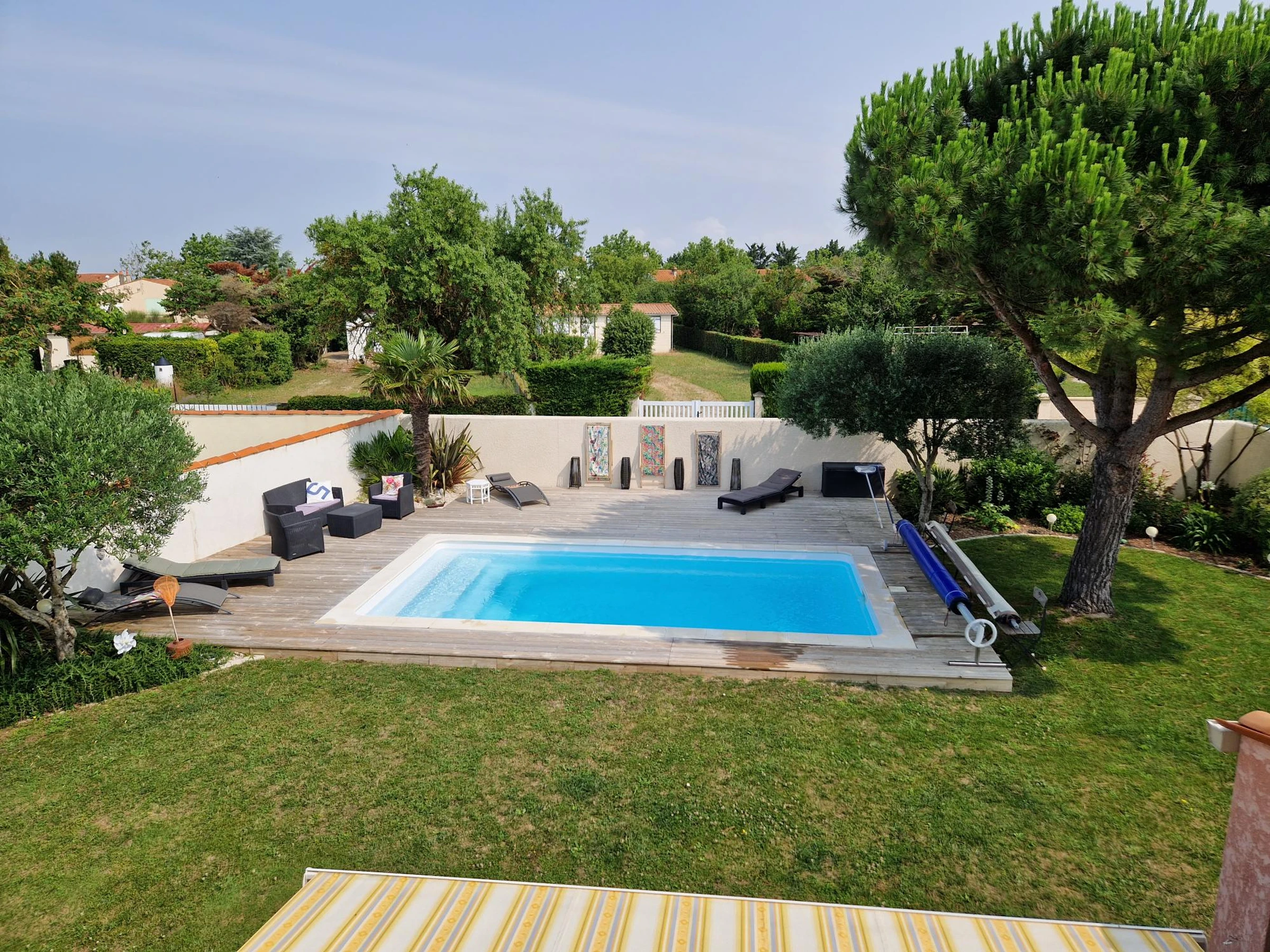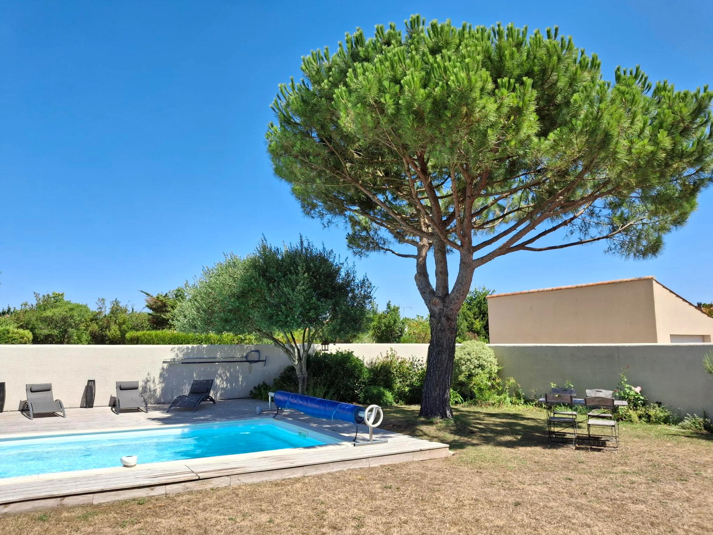 Auf dem Grundstück besteht die Möglichkeit, ein Fahrzeug zu parken, elektrisches Schiebetor. Das Schwimmbecken ist mit einem Stangenabdeckungsschutzsystem ausgestattet. WLAN-Zugang. Ummauerter Garten.
