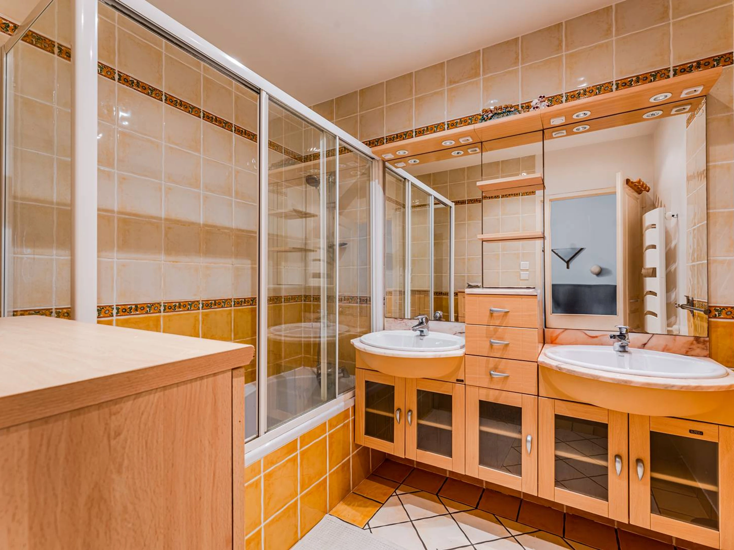 In einer ruhigen Wohngegend, nur wenige Schritte von der Basilika Notre-Dame und der Seebrücke Croix des Marins entfernt, bietet dieses neu erbaute Haus mit ca. 120 m² Wohnfläche Platz für bis zu 6 Personen. Es besticht durch ein besonders angenehmes Wohnambiente mit drei Schlafzimmern, einer Garage, einer Veranda und einem Garten mit altem Baumbestand. Im Erdgeschoss öffnet sich die Eingangshalle mit Einbauschrank zu einem geräumigen und hellen Wohnbereich mit einem Wohnzimmer mit Sofa und Fernseher sowie einem einladenden Essbereich. Die separate, voll ausgestattete Küche (Backofen, Mikrowelle, Geschirrspüler, Induktionskochfeld, Dunstabzugshaube, Nespresso-Maschine etc.) verfügt ebenfalls über einen Fernseher. Ein Hauswirtschaftsraum mit Waschmaschine und Trockner, viel Stauraum und einem großen Gefrierschrank vervollständigt den Grundriss. Ein Flur führt zu einem separaten WC, einem Duschbad und einem ersten Schlafzimmer mit Blick nach Osten und Zugang zum Garten. Dieses ist mit einem Doppelbett (140 cm), Kleiderschränken und einem Fernseher ausgestattet. Im Obergeschoss befinden sich zwei weitere Schlafzimmer: eines mit Blick nach Norden auf den Garten, ausgestattet mit einem Queensize-Bett (160 cm), Kleiderschrank und Fernseher; das andere mit Blick nach Süden auf die Straße, mit zwei Einzelbetten (90 cm) und Stauraum. Ein Badezimmer mit Doppelwaschbecken und separatem WC vervollständigen diese Etage. Die möblierte Veranda erweitert den Wohnraum in einen Garten mit altem Baumbestand, Gartenmöbeln und Sonnenliegen – ideal zum Entspannen. Die Garage mit automatischem Tor bietet Platz für ein Fahrzeug.