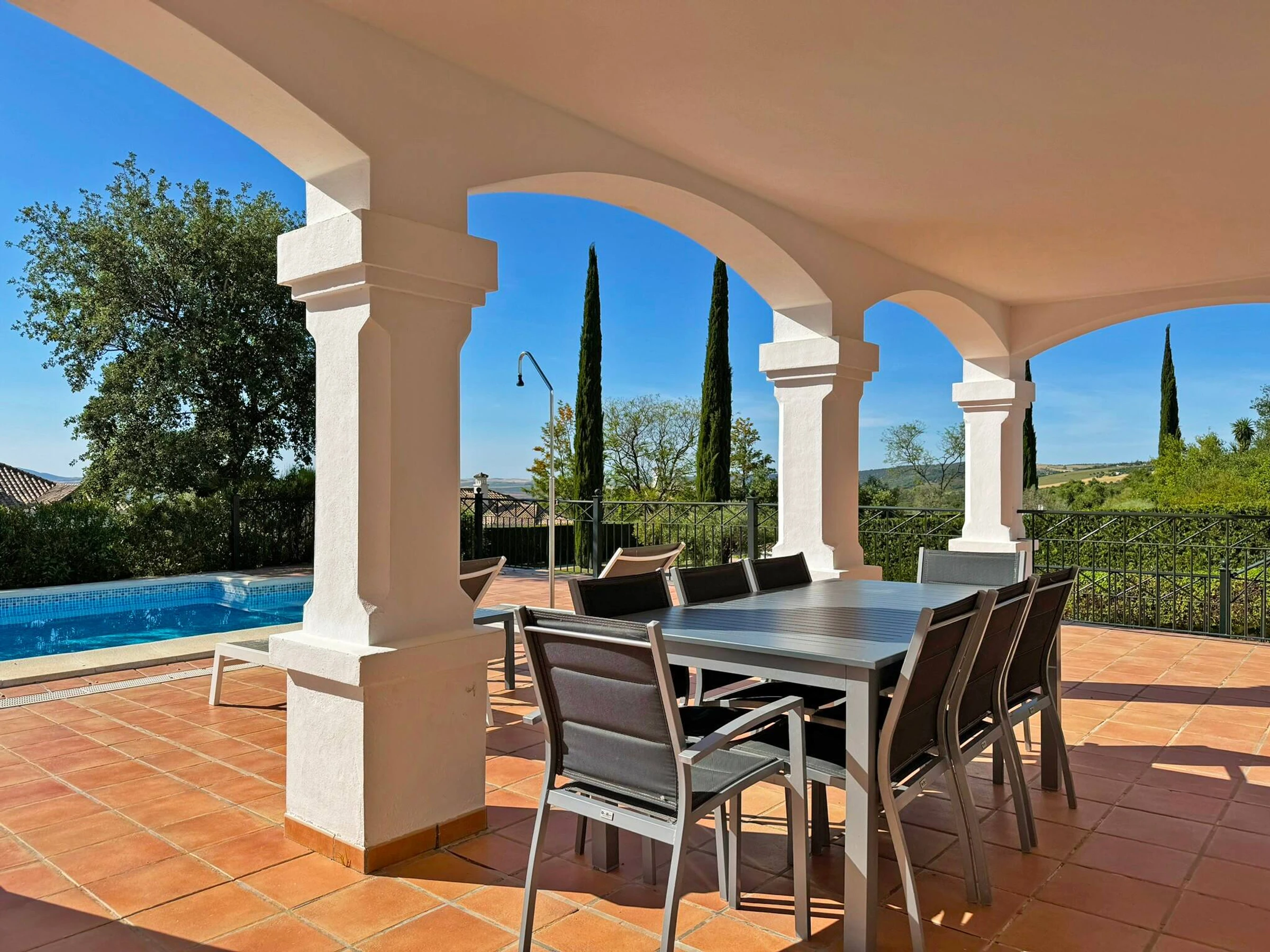 Die Unterkunft verfügt über garten, gartenmöbel, umzäuntes grundstück, terrasse, waschmaschine, trockner, grill, bügeleisen/-brett, internet (WLAN), haartrockner, alarm, zentralheizung, klimaanlage in der ganzen unterkunft, swimming-pool privater pool, garage in auf dem grundstück, 1 Fernseher.