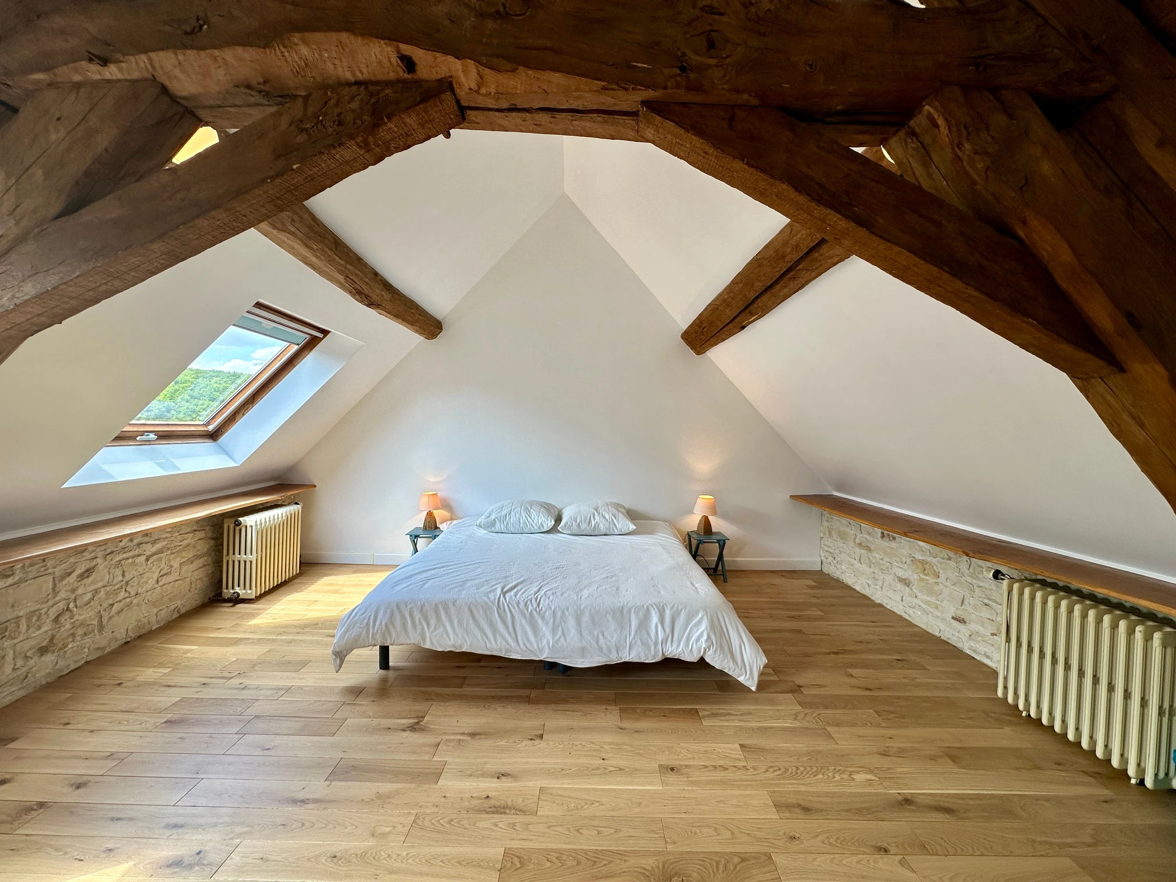 Im ersten Stock führt ein Flur zu einem Doppelzimmer (140 cm breites Bett) und einem Duschbad mit WC. Im zweiten Stock erwartet Sie eine geräumige Master-Suite (Kingsize-Bett) mit eigenem Duschbad und WC. Die Waschmaschine befindet sich im Untergeschoss (Ebene -1). Dieses Ferienhaus mit All-inclusive-Verpflegung (Bettwäsche, Handtücher, Haushaltswäsche und Endreinigung) verspricht einen authentischen Aufenthalt. Parkplätze stehen direkt vor dem Haus zur Verfügung. Im Dorf können Sie Fahrräder mieten, um die Umgebung zu erkunden. Eine sichere Fahrradaufbewahrung ist auf Anfrage möglich. Ein Babybett ist ebenfalls auf Anfrage erhältlich.