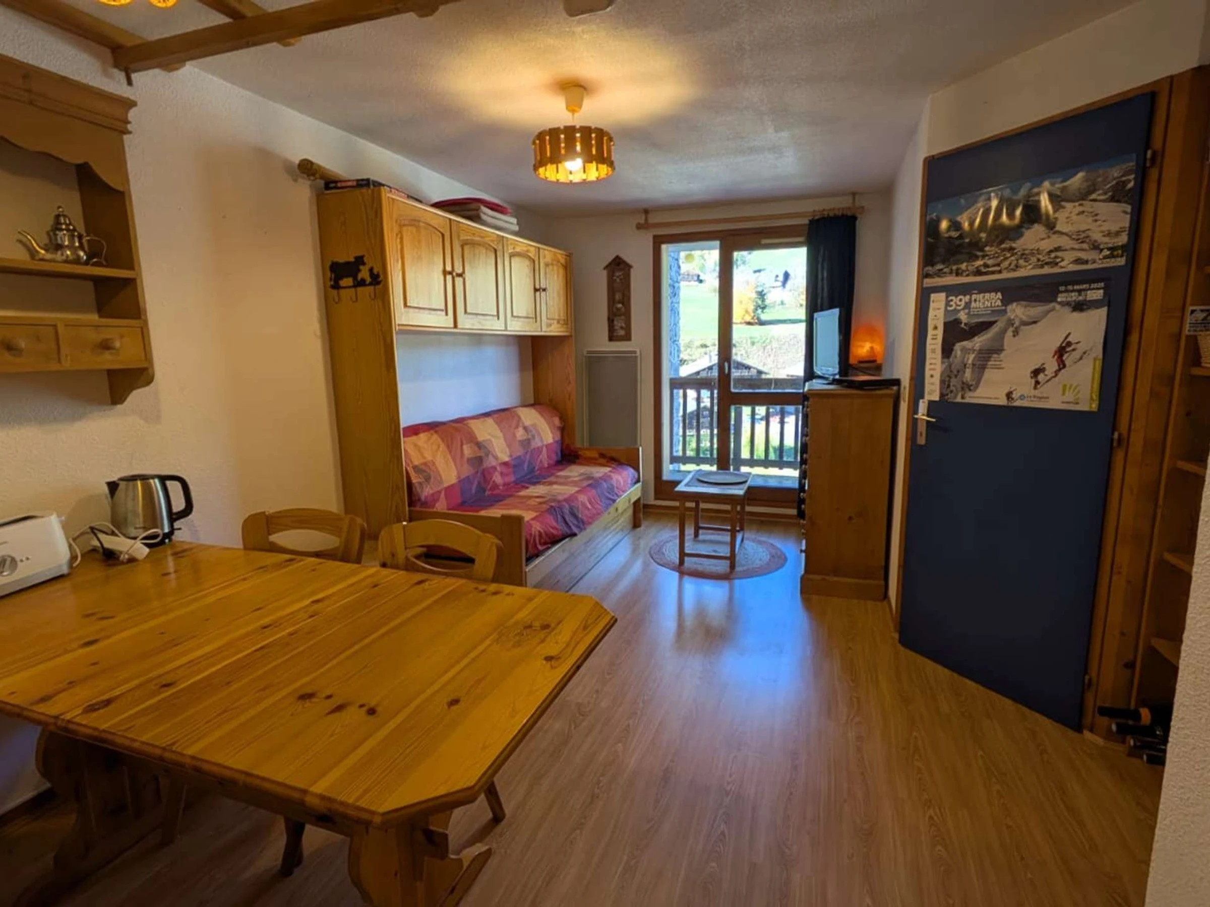 Ferienwohnung für 4 Personen, 27 m², in einer Anlage mit 66 Apartments in Val Blanc I. Im Sommer steht ein Swimmingpool zur Verfügung*. Im Winter sind die Skipisten nur 50 m entfernt. Aufzugsebene: 4. Geschlossener Eingangsbereich: 2 Etagenbetten – Wohnzimmer mit Doppelschlafsofa – gut ausgestattete Küchenzeile mit Mikrowelle, Geschirrspüler, Kühlschrank etc. – kleines Schlafzimmer mit Doppelbett – Badezimmer – separates WC – Parkplatz auf dem Gelände. Attraktive, nach Westen ausgerichtete Loggia mit Gartenmöbeln.