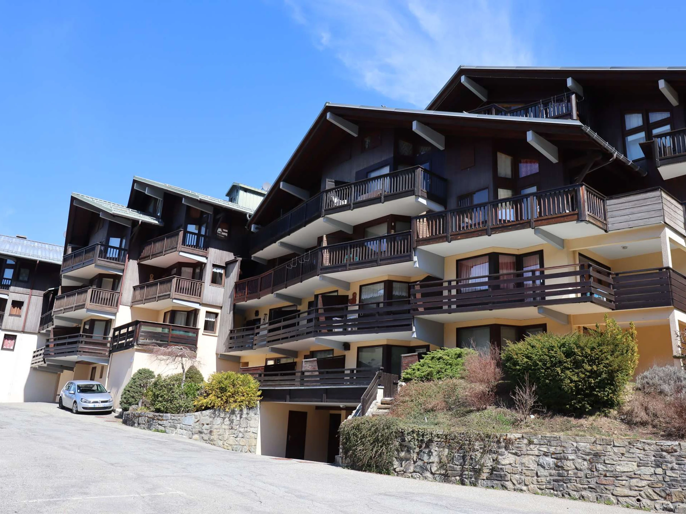 Diese sehr helle Wohnung bietet aufgrund ihrer Südwestausrichtung einen sehr angenehmen Wohnraum. Der Eingang, in dem sich zwei 90x190-Betten befinden und der sich schließen lässt, um ein Schlafzimmer mit Stauraum zu schaffen, führt zu einem geschlossenen Kabinenschlafzimmer mit einem 140x190-Doppelbett (Stauraum) sowie einem geräumigen Wohnzimmer mit Loungebereich (TV, ausziehbares Sofa). und Küche/Essbereich. Die US-Küche ist komplett ausgestattet (Geschirrspüler, Backofen, Senseo-Kaffeemaschine, Raclettegerät) - Badezimmer - WC. Auf dem Balkon (Gartentisch und Stühle) können Sie den Dorf-/Gipfelblick und die Sonne genießen.
