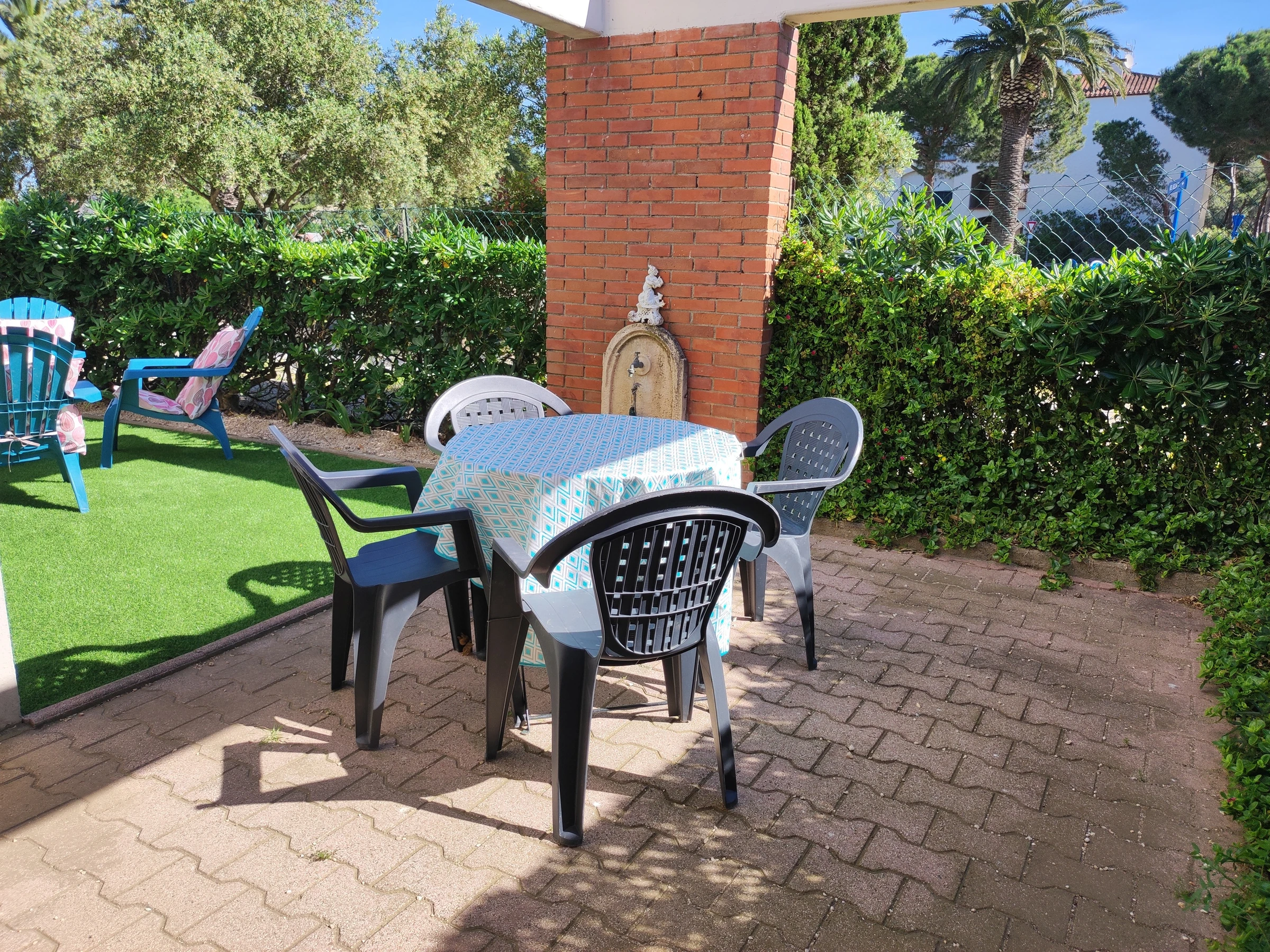 Die Vorteile dieser Vermietung: schöner, eingezäunter Garten, teilweise beschattet, mit Essbereich und Gartenmöbeln - Parkplatz - KLIMAANLAGE - in der Nähe des Strandes und der Geschäfte
