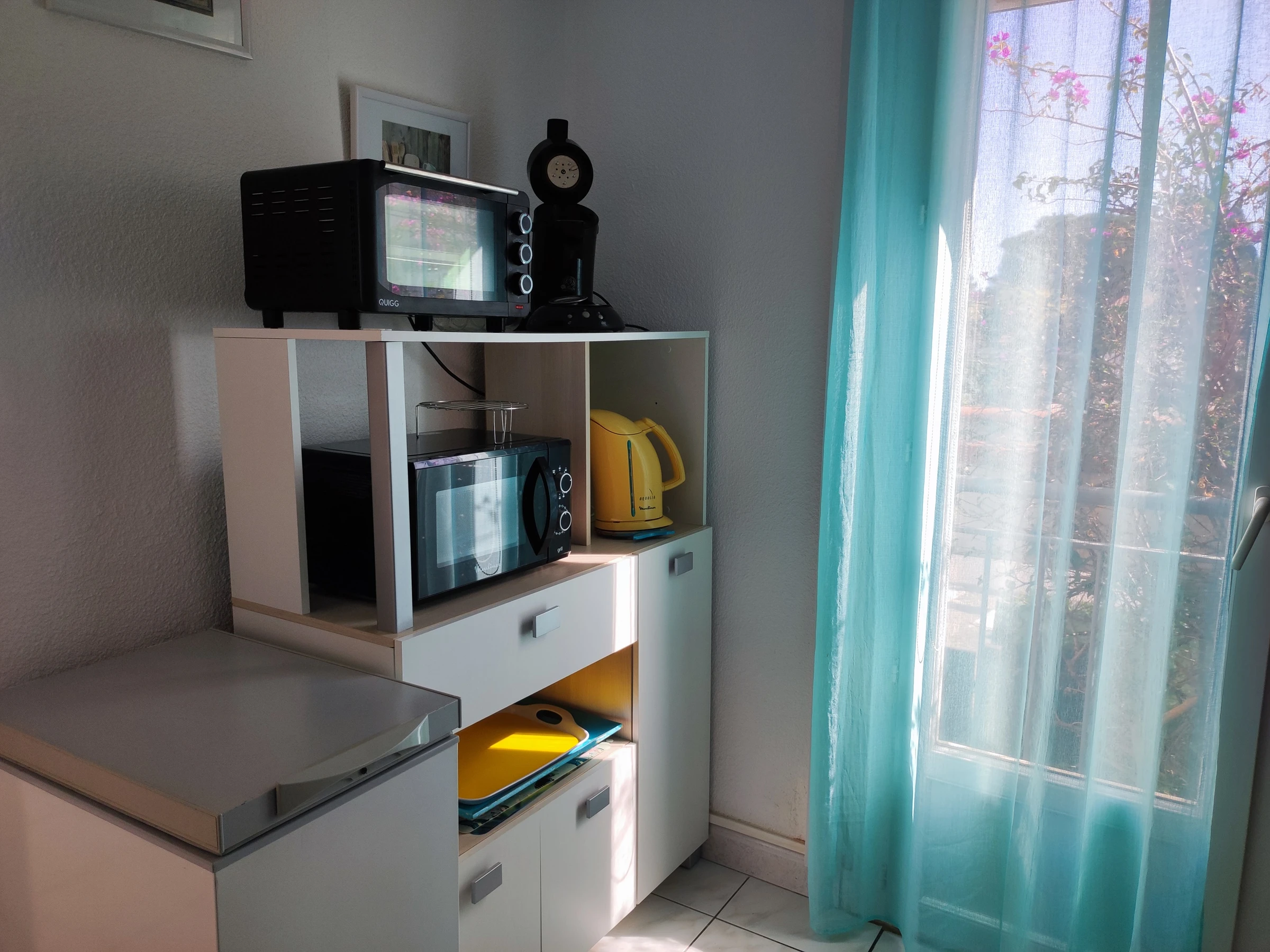 Küche (Kühlschrank, Gefrierschrank, Mini-Backofen, Mikrowelle, Waschmaschine, Cerankochfeld, Filterkaffeemaschine + Senseo),