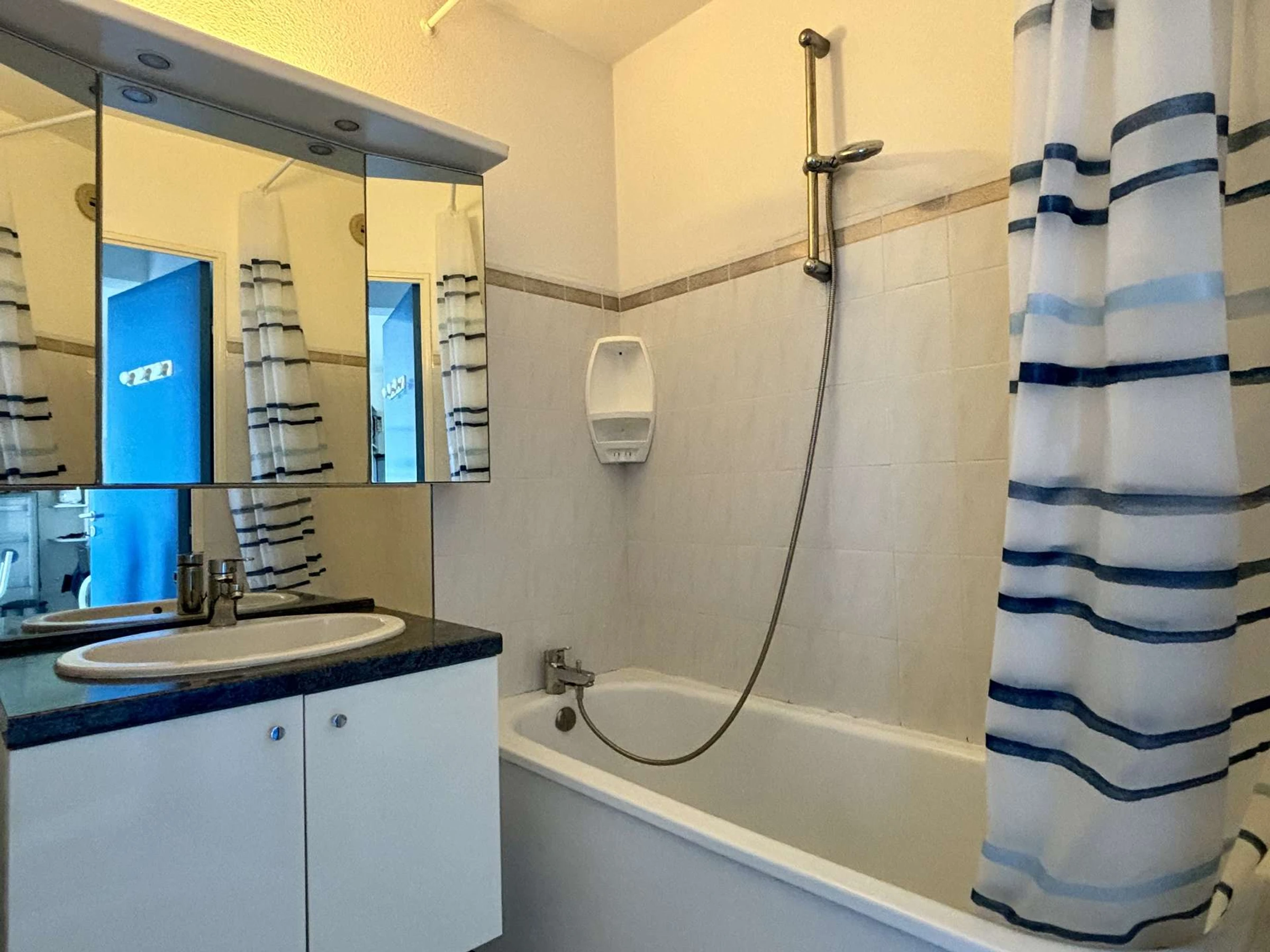 Diese Ferienwohnung im Languedoc Roussillon, ideal für Ihre Familienvermietung, liegt im 3. Stock und verfügt über ein Wohnzimmer mit einem ausziehbaren Schlafsofa für zwei Personen, Fernseher, eine offene Einbauküche, ein Schlafzimmer mit 1 Bett für 2 Personen, ein Duschbad, ein separates WC und eine mit Gartenmöbeln ausgestattete Loggia mit Blick auf das Meer und die Parkplätze.