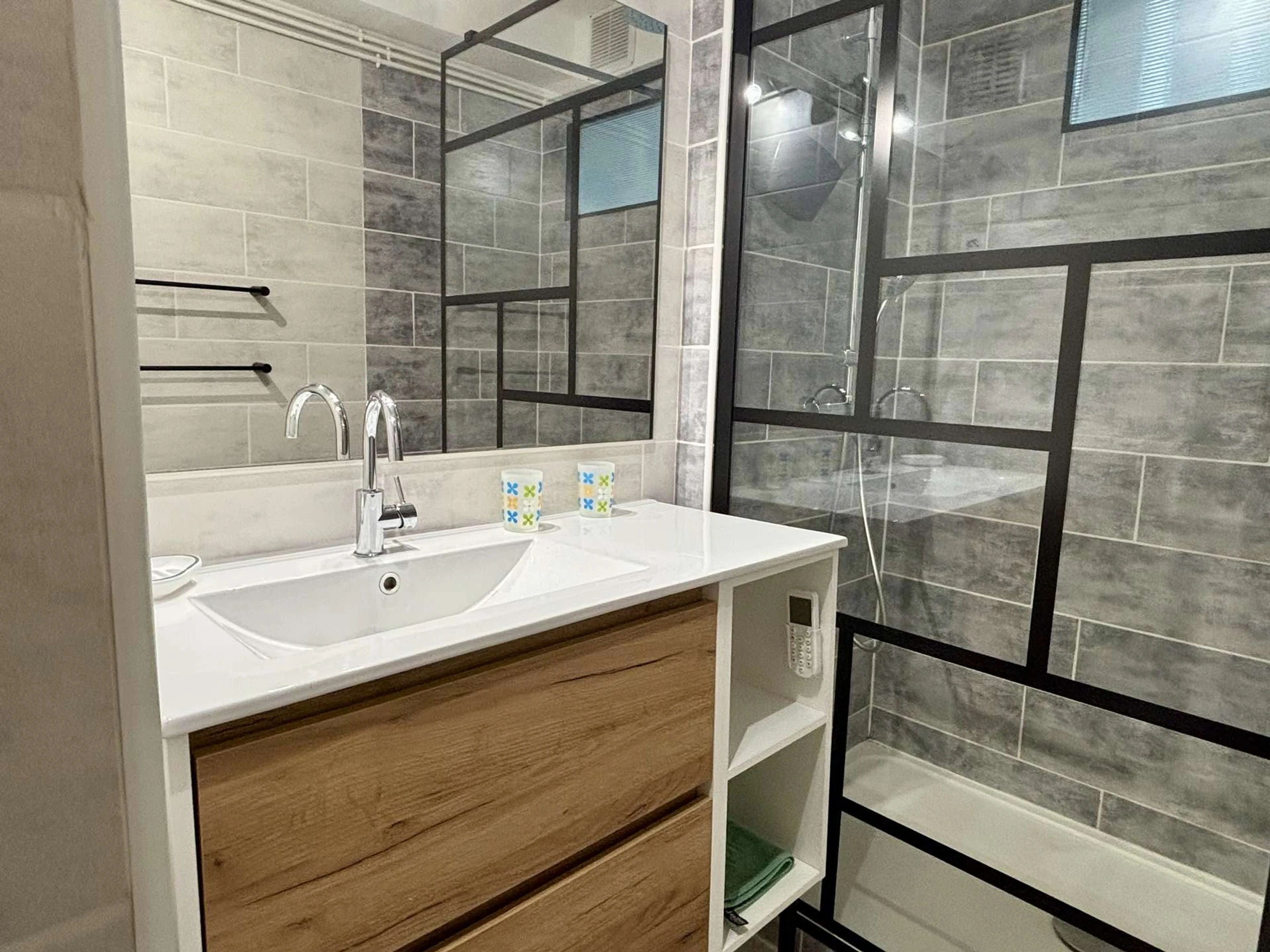 Die achtstöckige Residenz „Le Belvédère“ liegt direkt am Meer in einer ruhigen Wohngegend und bietet eine erstklassige Lage mit direktem Strandzugang. Dieses Apartment im 3. Stock ist ideal für einen Familienurlaub und verfügt über ein Wohnzimmer mit Schlafcouch, ein Schlafzimmer mit Doppelbett, eine voll ausgestattete Küche, ein Duschbad und ein separates WC.