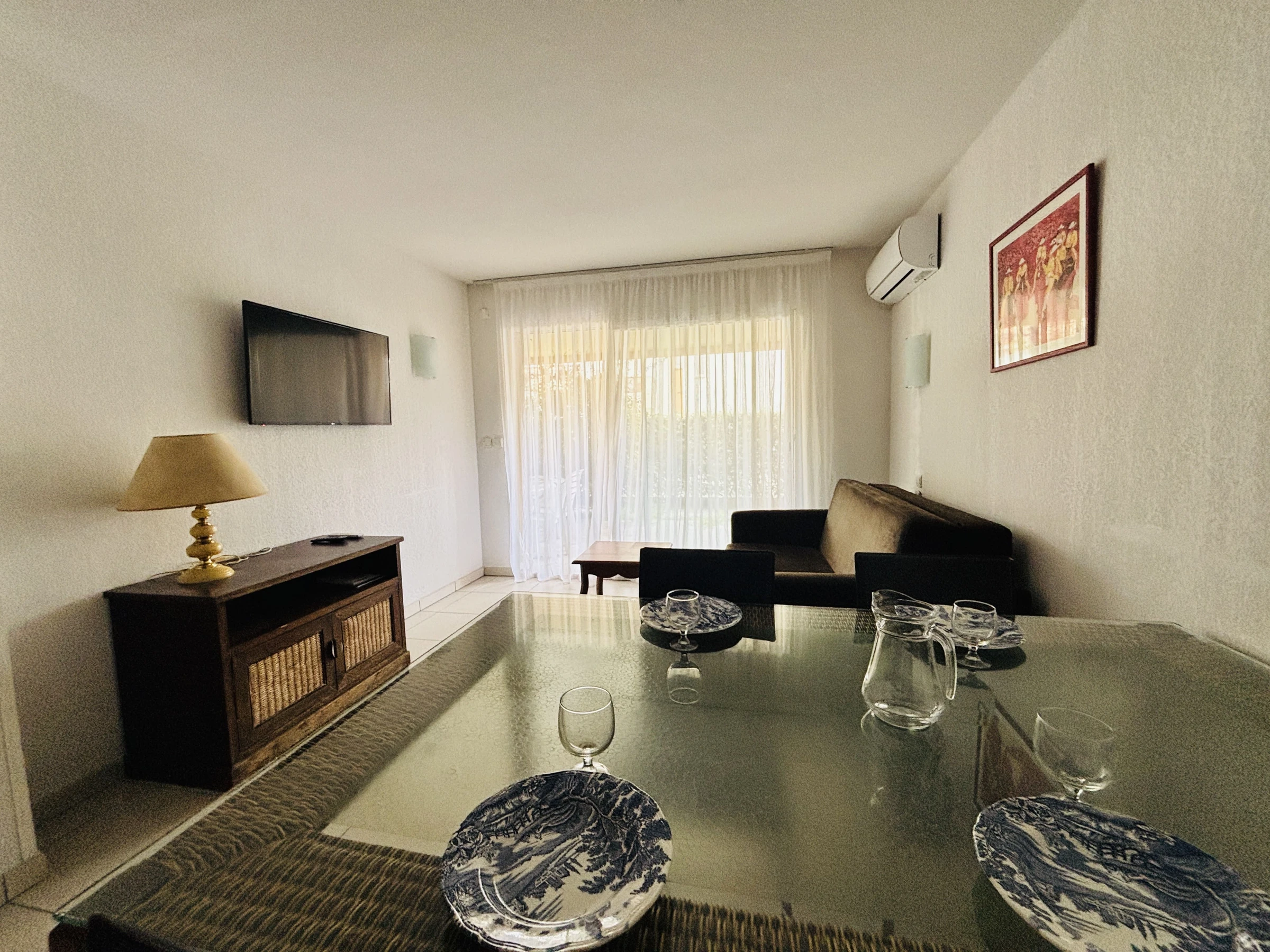 Das klimatisierte und komfortable Apartment verfügt über einen hellen Wohnbereich mit Wohnzimmer und voll ausgestatteter Küche, sodass Sie Ihren Aufenthalt optimal genießen können. Sowohl im Wohnzimmer als auch im Schlafzimmer sorgt die Klimaanlage für angenehmen Komfort in den Sommermonaten.