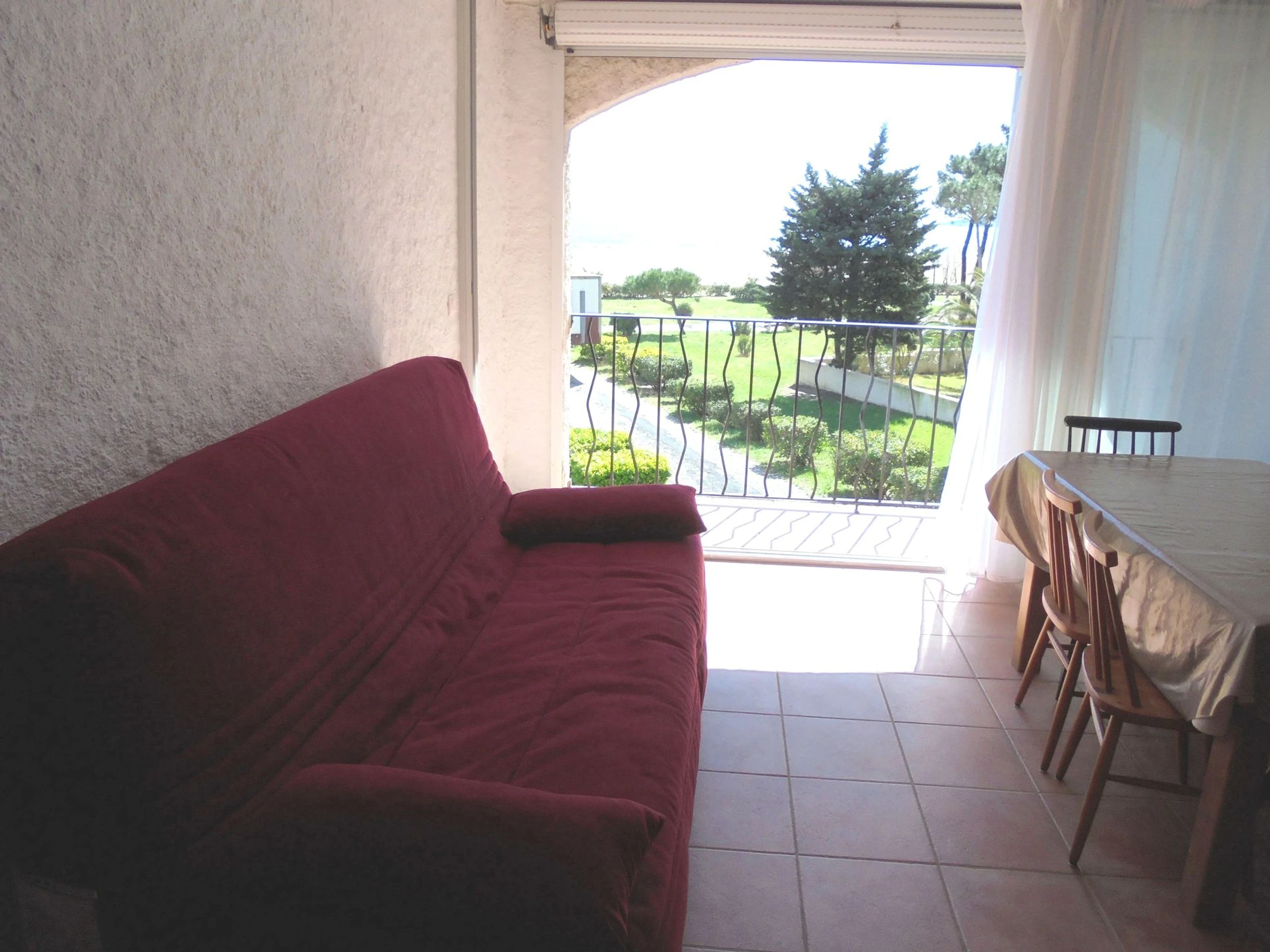 WOHNZIMMER: 1 Schlafsofa für 2 Personen, TV, Balkon zur Meerseite, elektrischer Rollladen