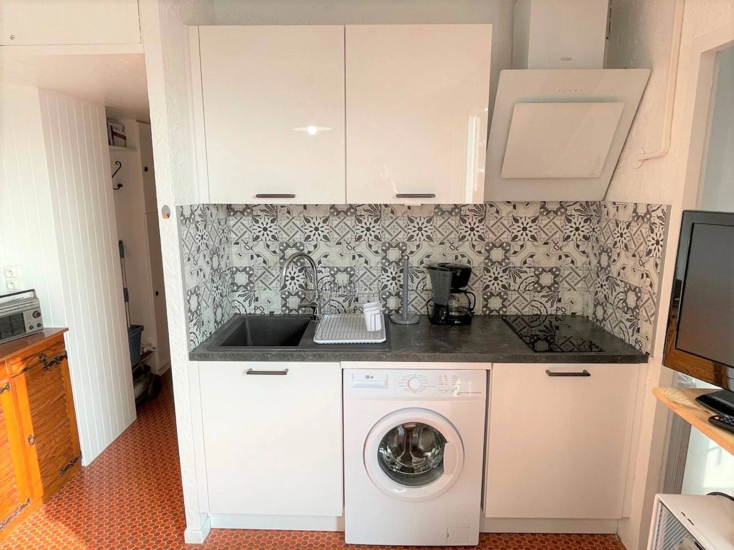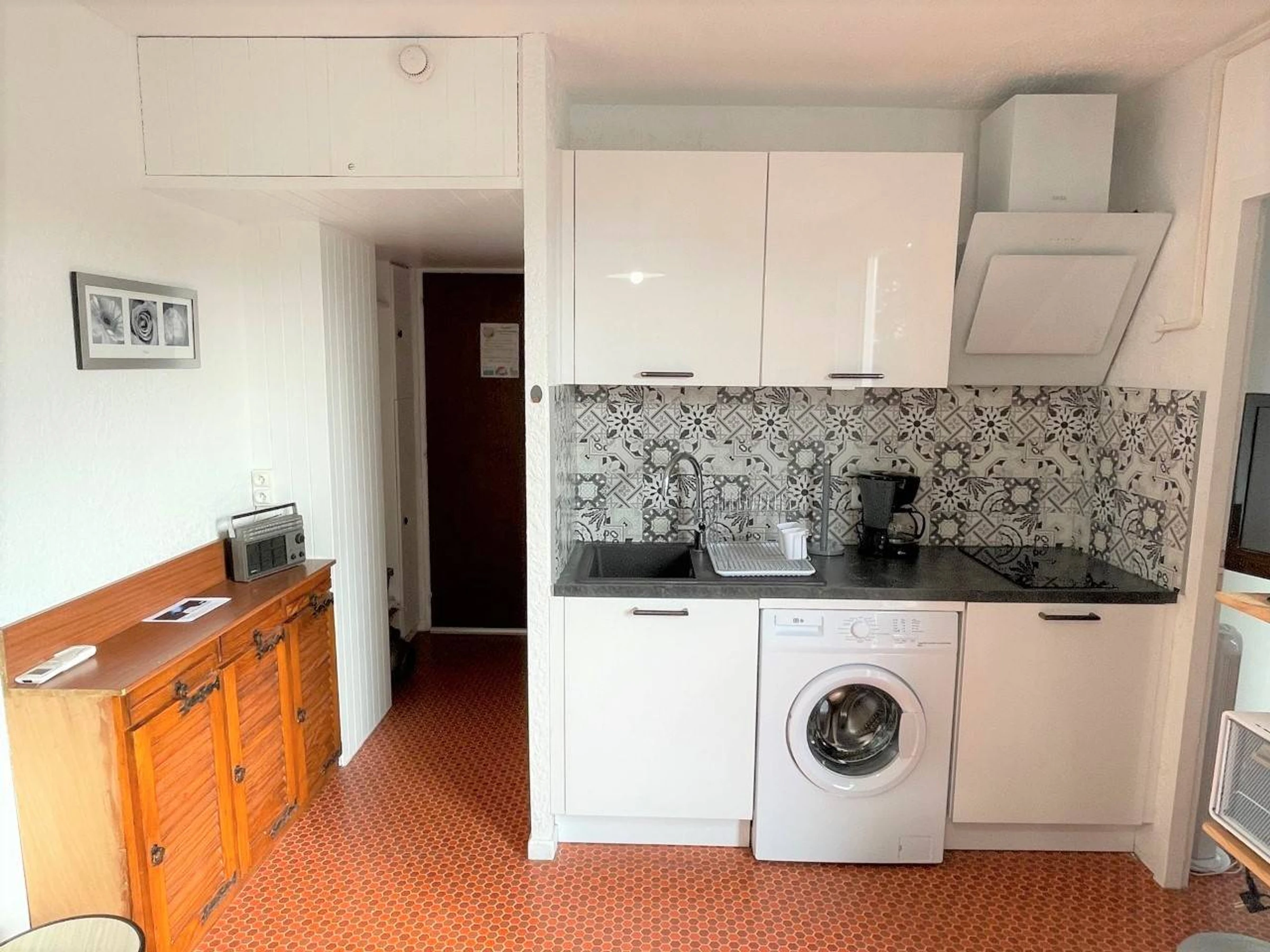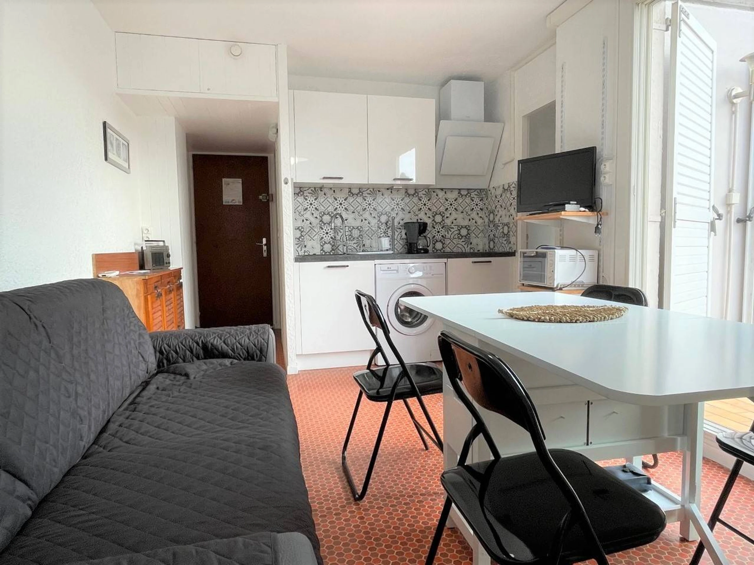 Diese Ferienwohnung am Meer im 2. Stock verfügt über ein Wohnzimmer mit einem Doppelschlafsofa, eine ausgestattete Küchenzeile, ein Schlafzimmer mit einem Doppelbett und ein Badezimmer (70 cm große Duschöffnung) mit Toilette.