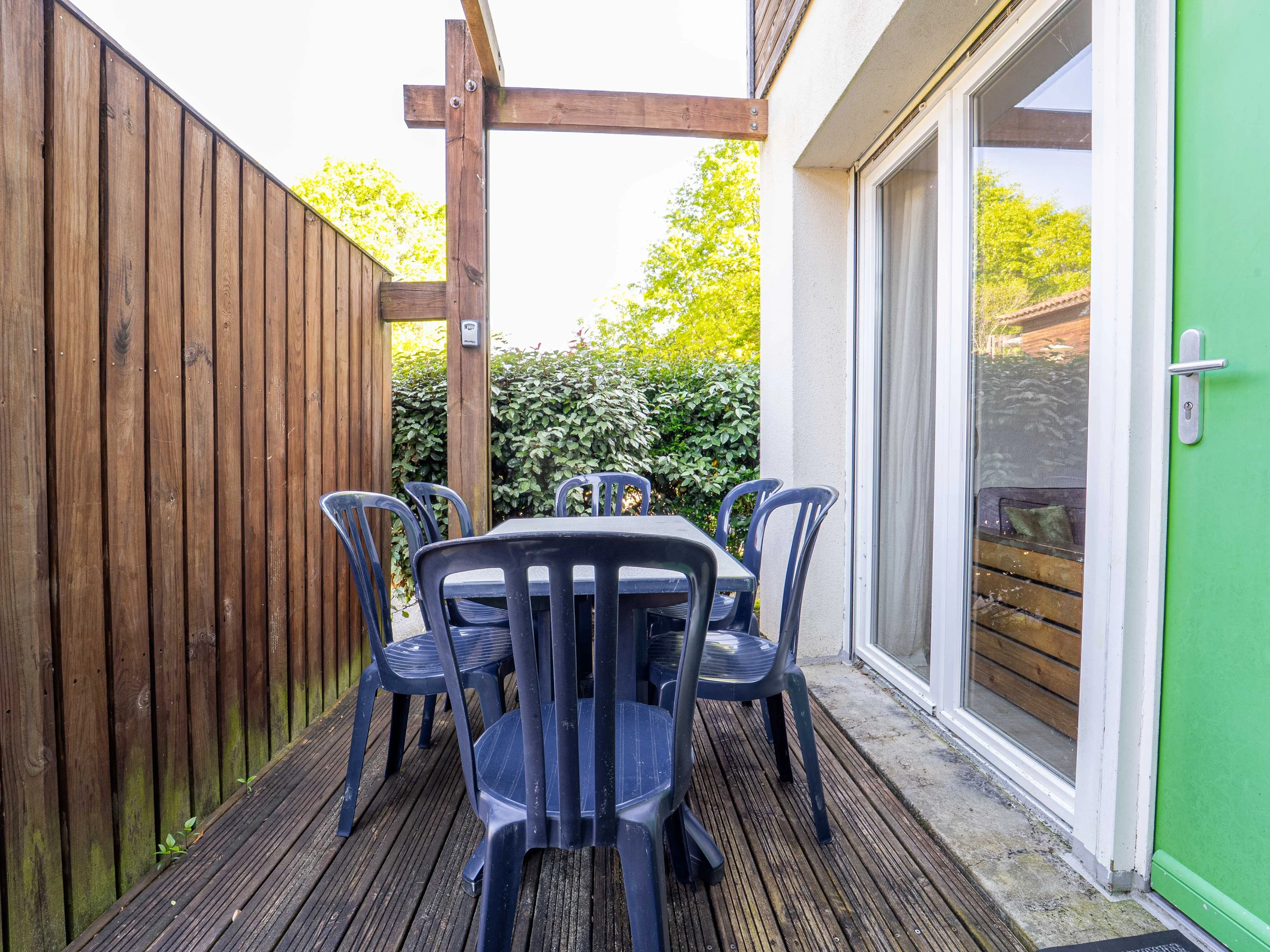 Draußen erwartet Sie eine private Terrasse, auf der Sie Ihre Mahlzeiten gemeinsam genießen oder einfach den süßen Ausklang des Tages auskosten können. Für zusätzliche Sicherheit ist außerdem ein sicherer Parkplatz für Sie reserviert.