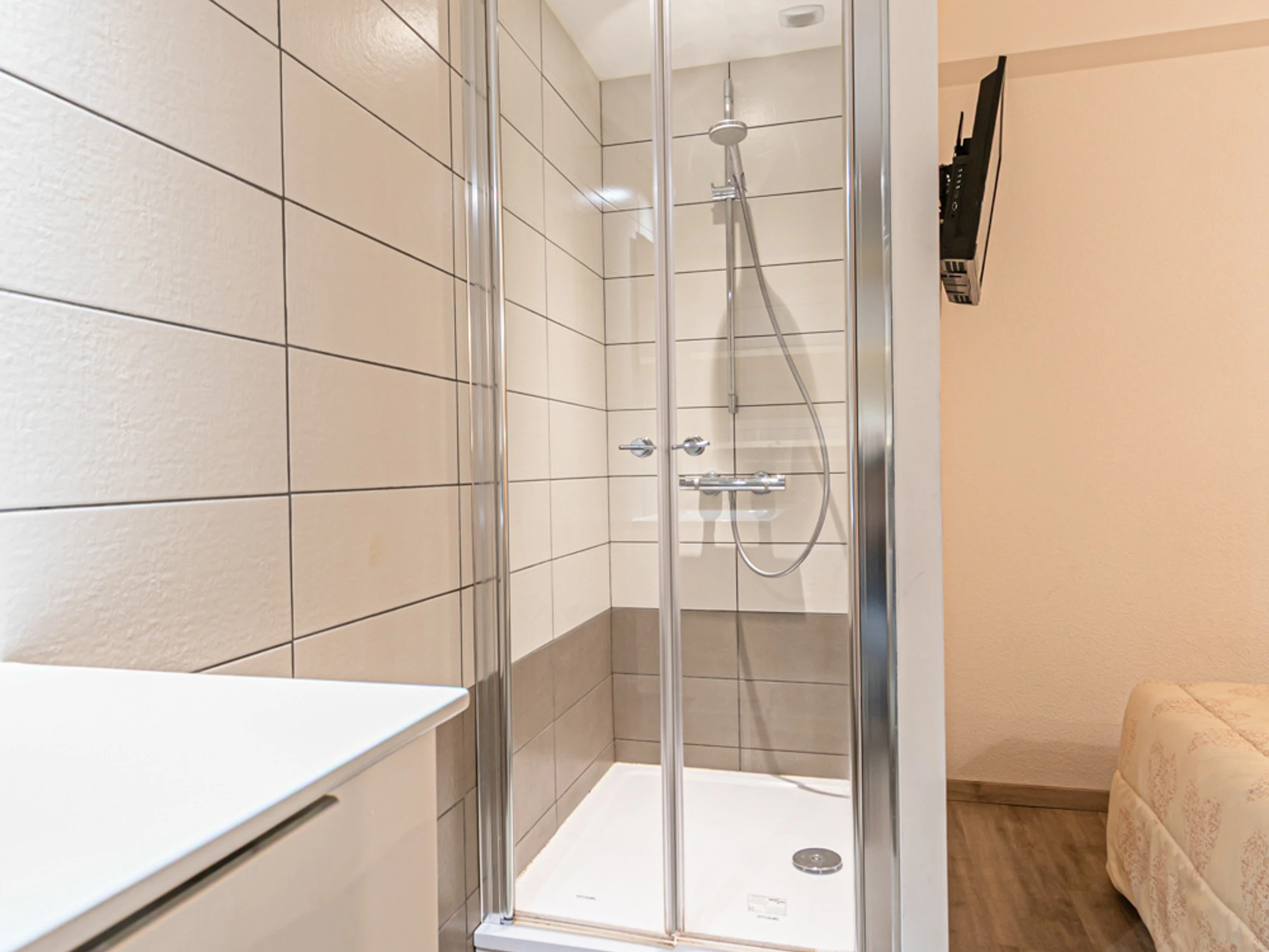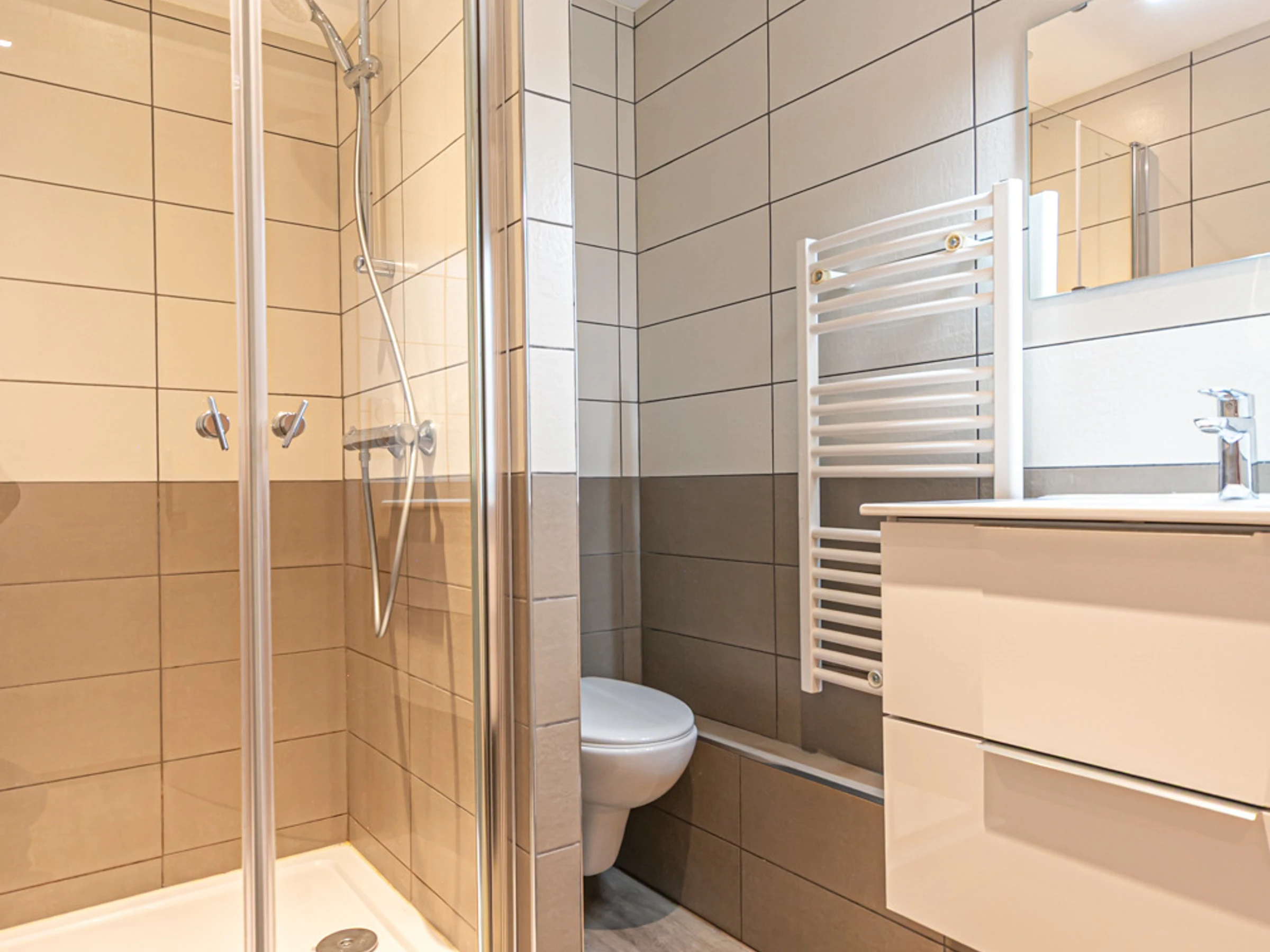 1 Duschbad: Dusche, Waschbecken und WC.