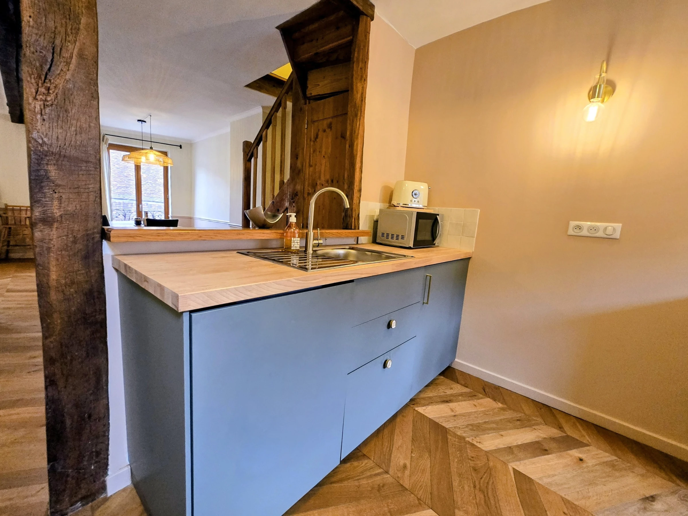 Dieses offene küche, elektrisches kochfeld, ist ausgestattet in kühlschrank, mikrowelle, backofen, spülmaschine, geschirr/besteck, kochutensilien, kaffeemaschine und wasserkocher.