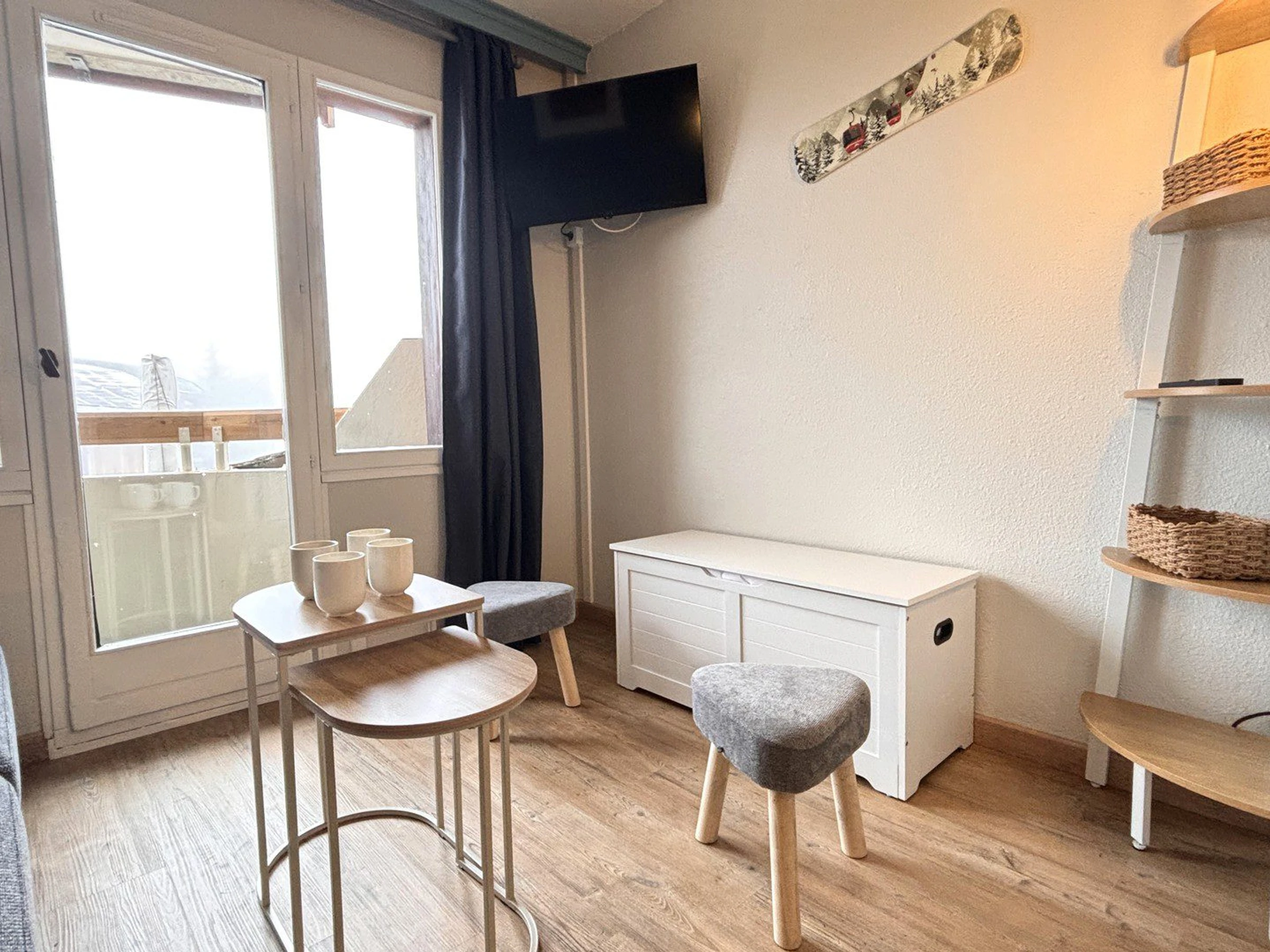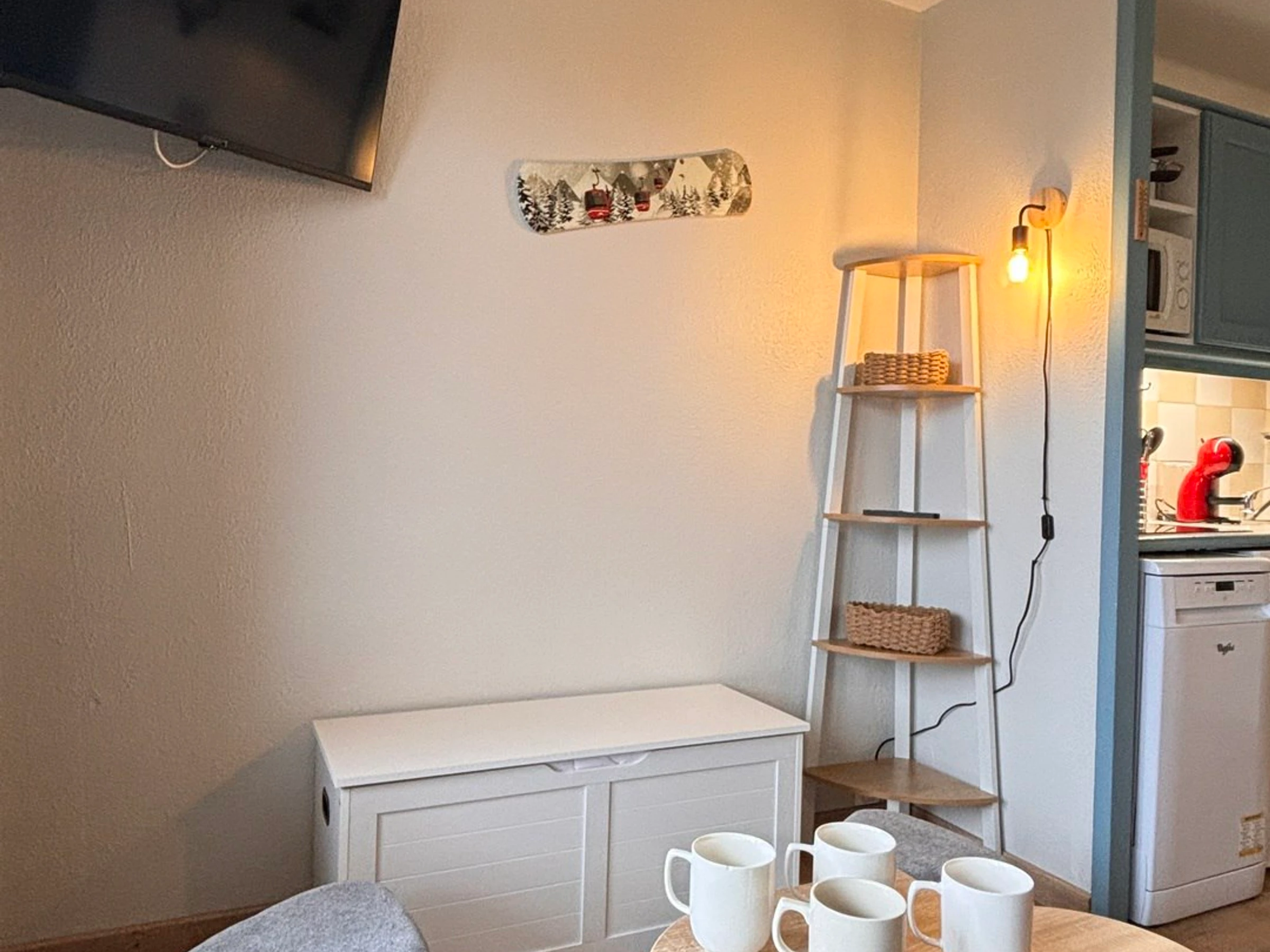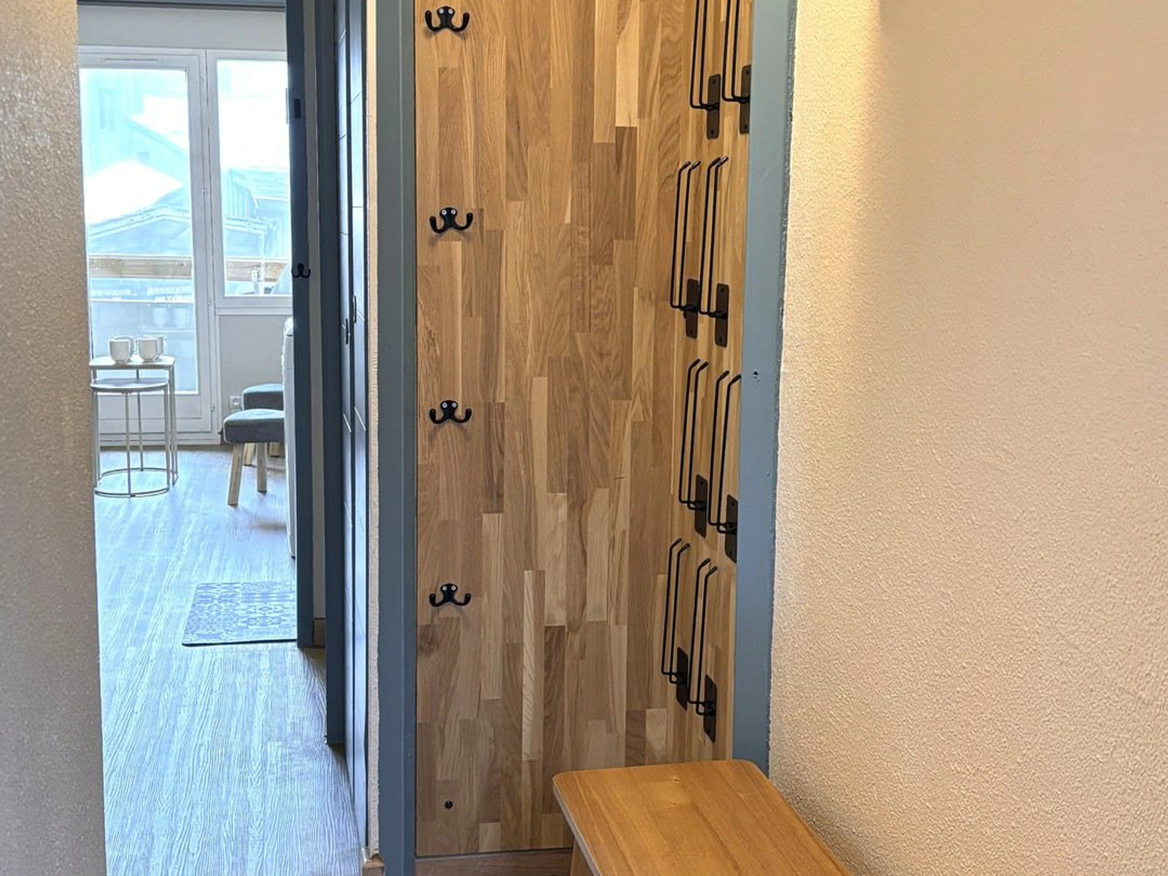 Am Eingang befindet sich ein Abstellraum zum Aufhängen von Skischuhen und Handschuhen.