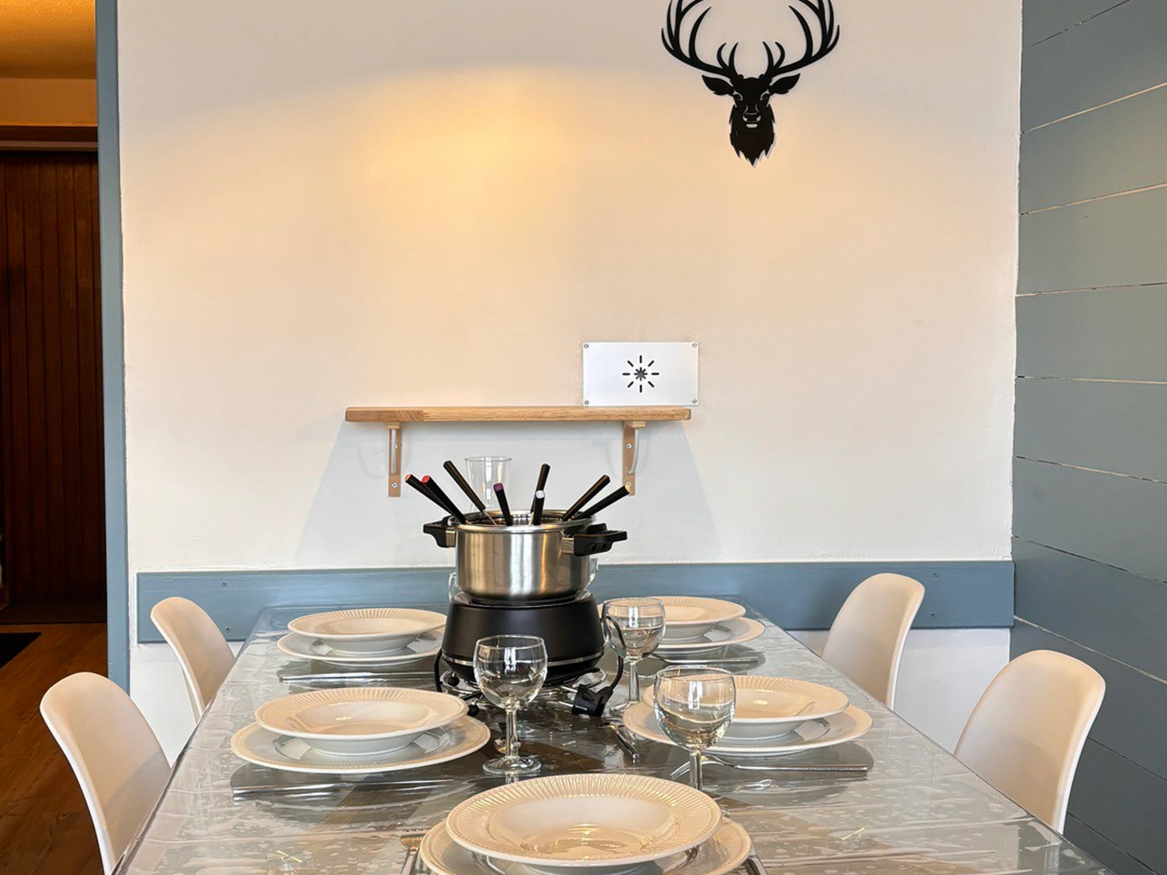 Die Küche ist komplett ausgestattet: Kühlschrank, Geschirrspüler, Mikrowelle/Grill, 4-Flammen-Cerankochfeld, Dolce Gusto-Kaffeemaschine, Raclette-Maschine, Fondue-Maschine, Wasserkocher, Toaster usw.