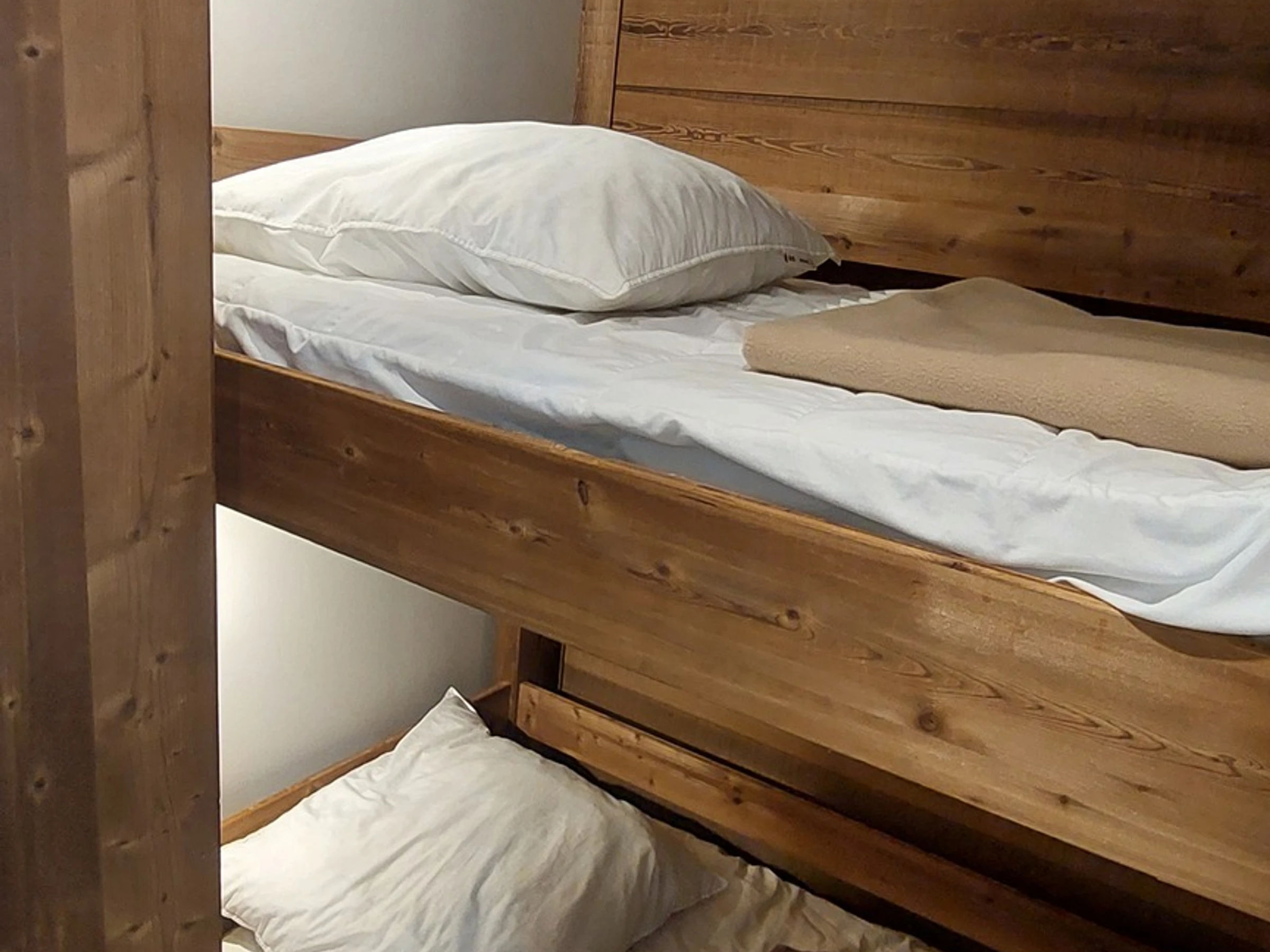 Schlafzimmer: mit einem Doppelstockbett (zwei 90 cm x 190 cm Betten) und Decken