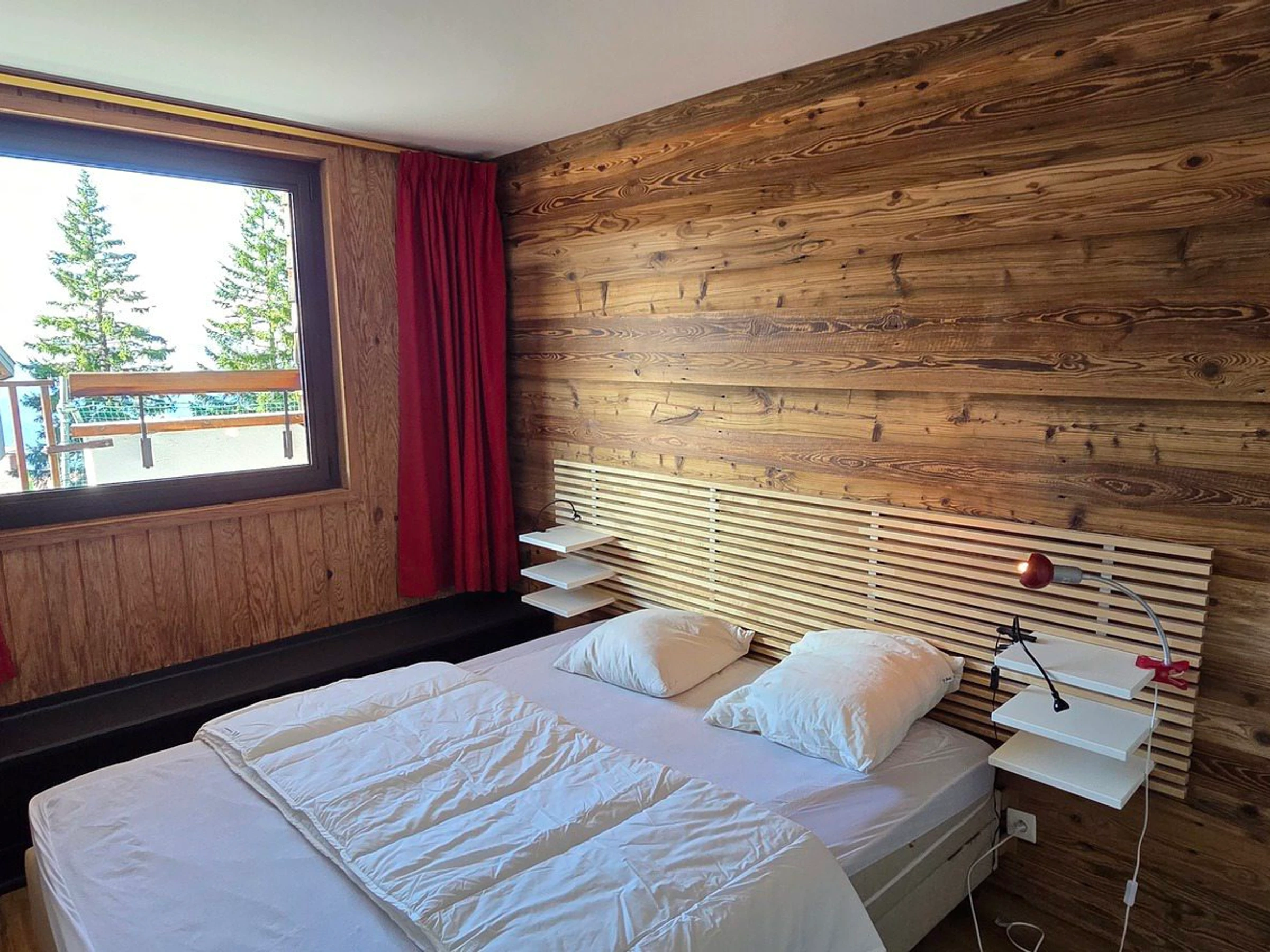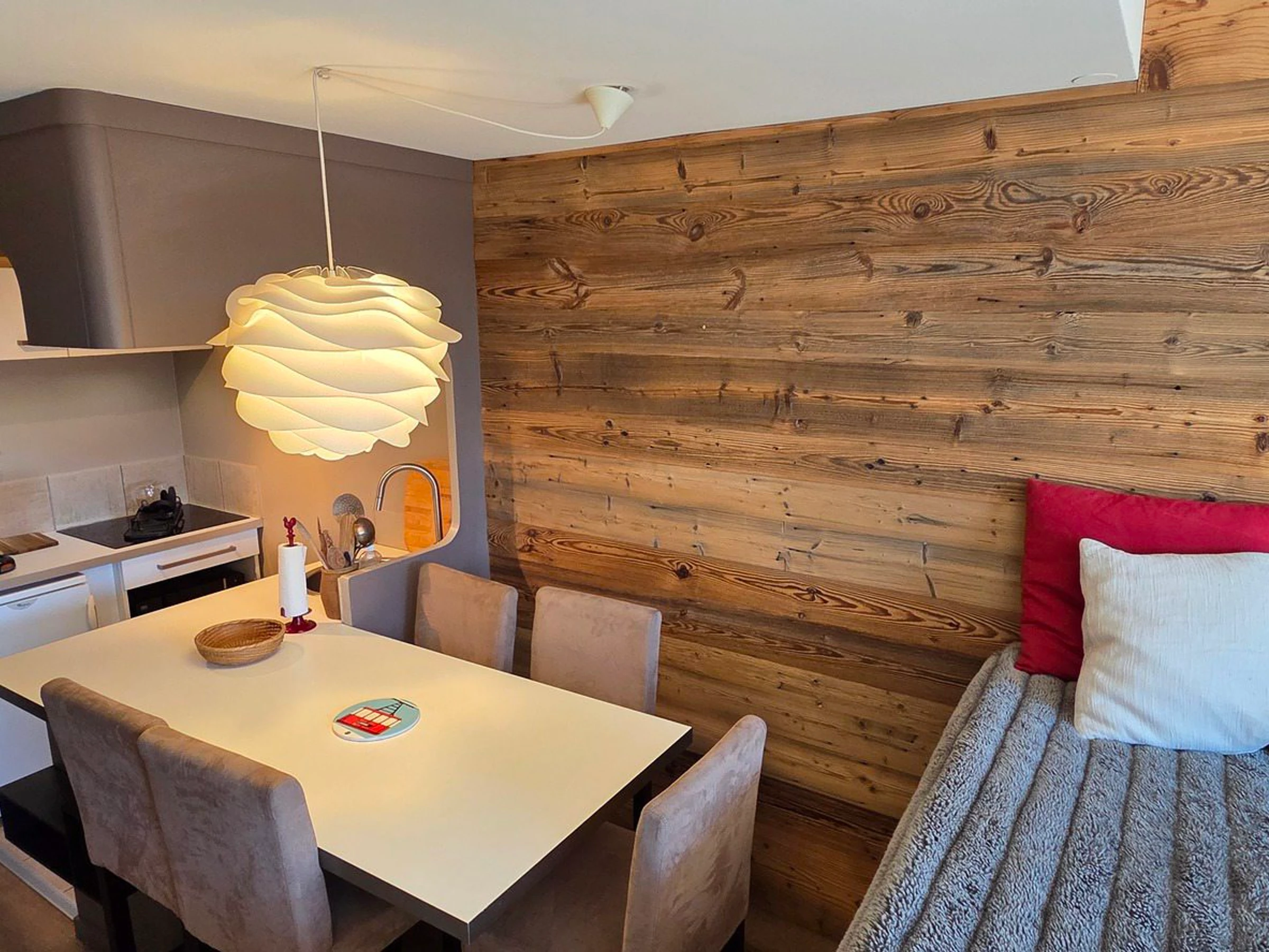 Wohnzimmer: mit Essbereich, Fernseher und Einzelbett. Zugang zum Südbalkon