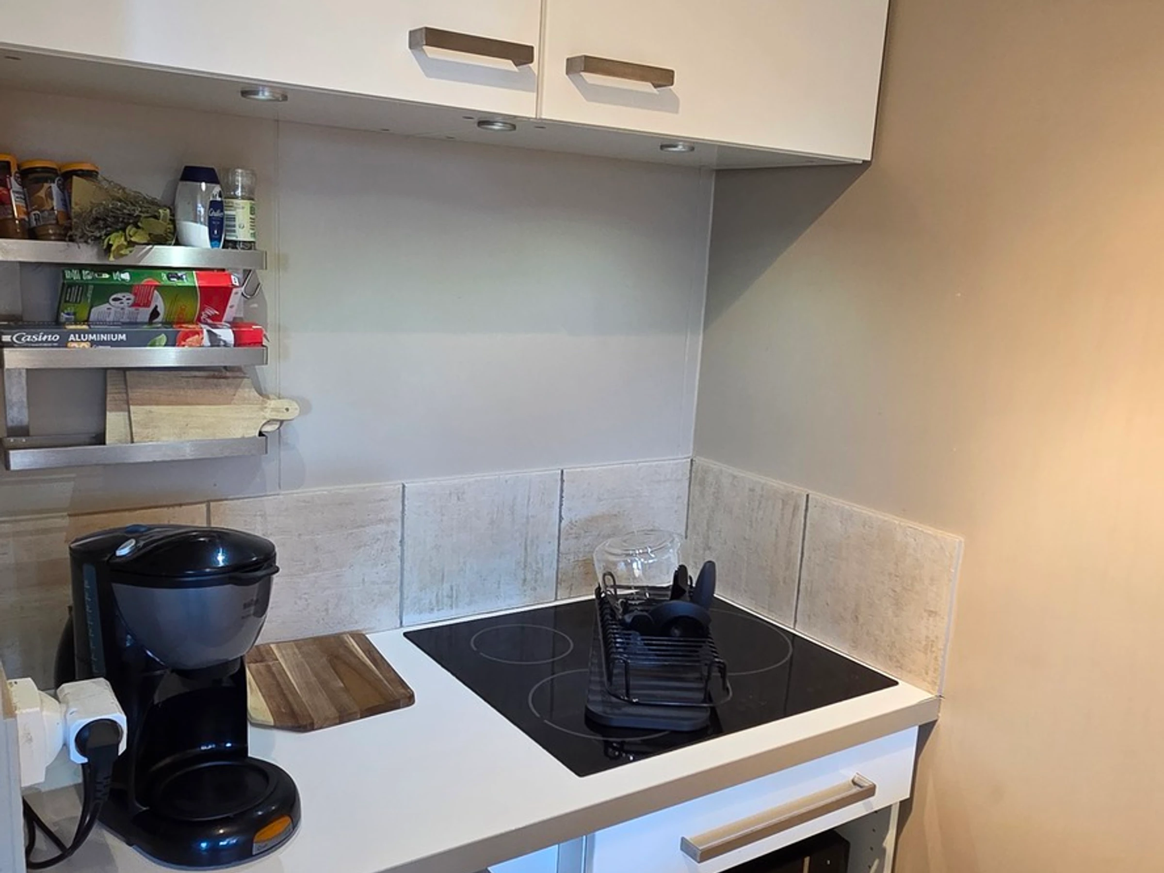 Küche: Kühlschrank, 4-Platten-Cerankochfeld, Backofen, Geschirrspüler