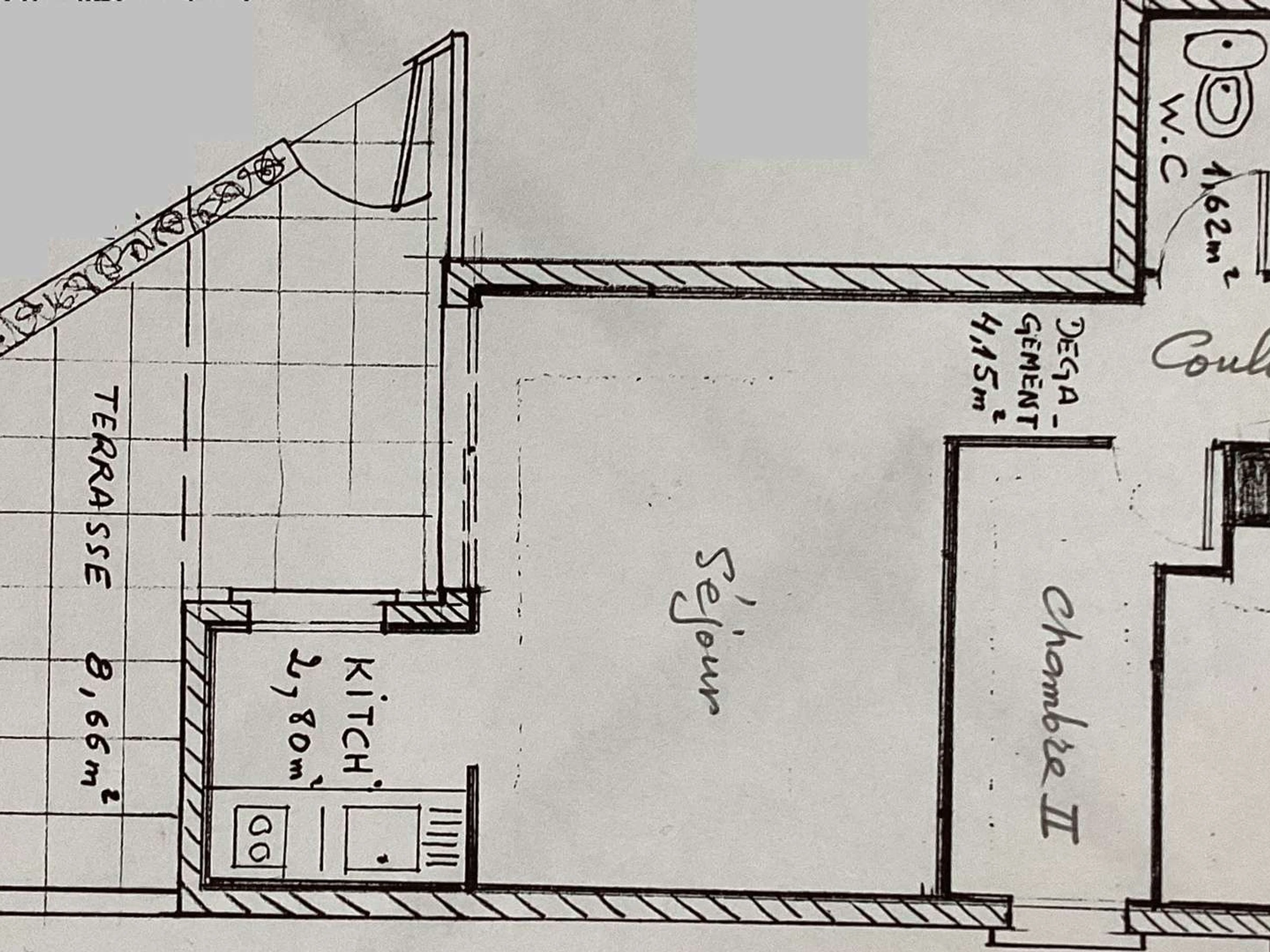 Dieses Apartment verfügt über eine Eingangshalle, ein Wohnzimmer mit Sofa, Tisch und Stühlen, einem Fernseher und einer großen Öffnung zur Terrasse mit Tisch und Stühlen. Eine voll ausgestattete Küchenzeile (Mikrowelle mit Grill, Toaster, Filterkaffeemaschine, Wasserkocher und Induktionskochfeld) mit Fenster zur Terrasse.