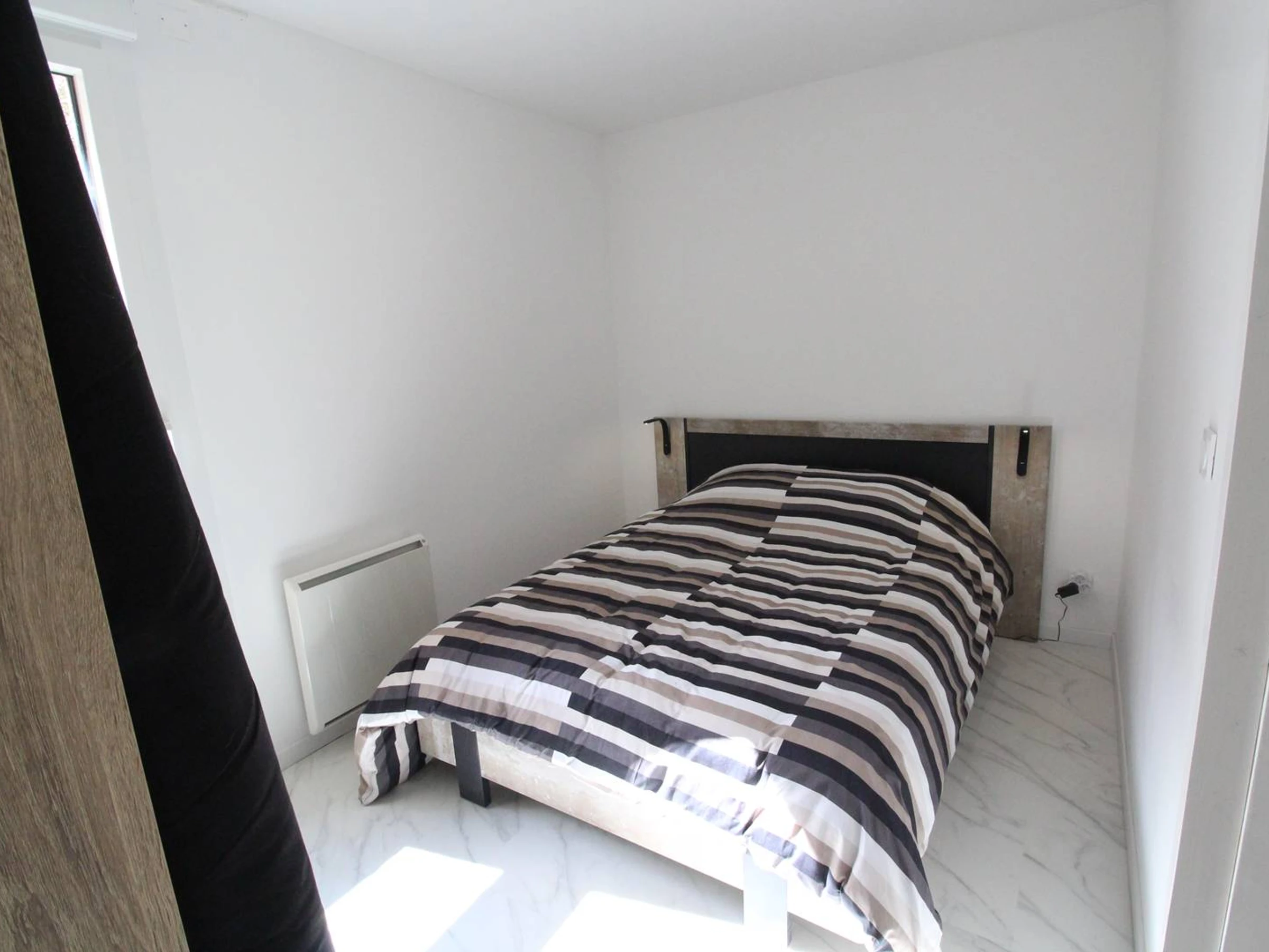 Ein Schlafzimmer mit Doppelbett (140 cm) und Kleiderschrank.