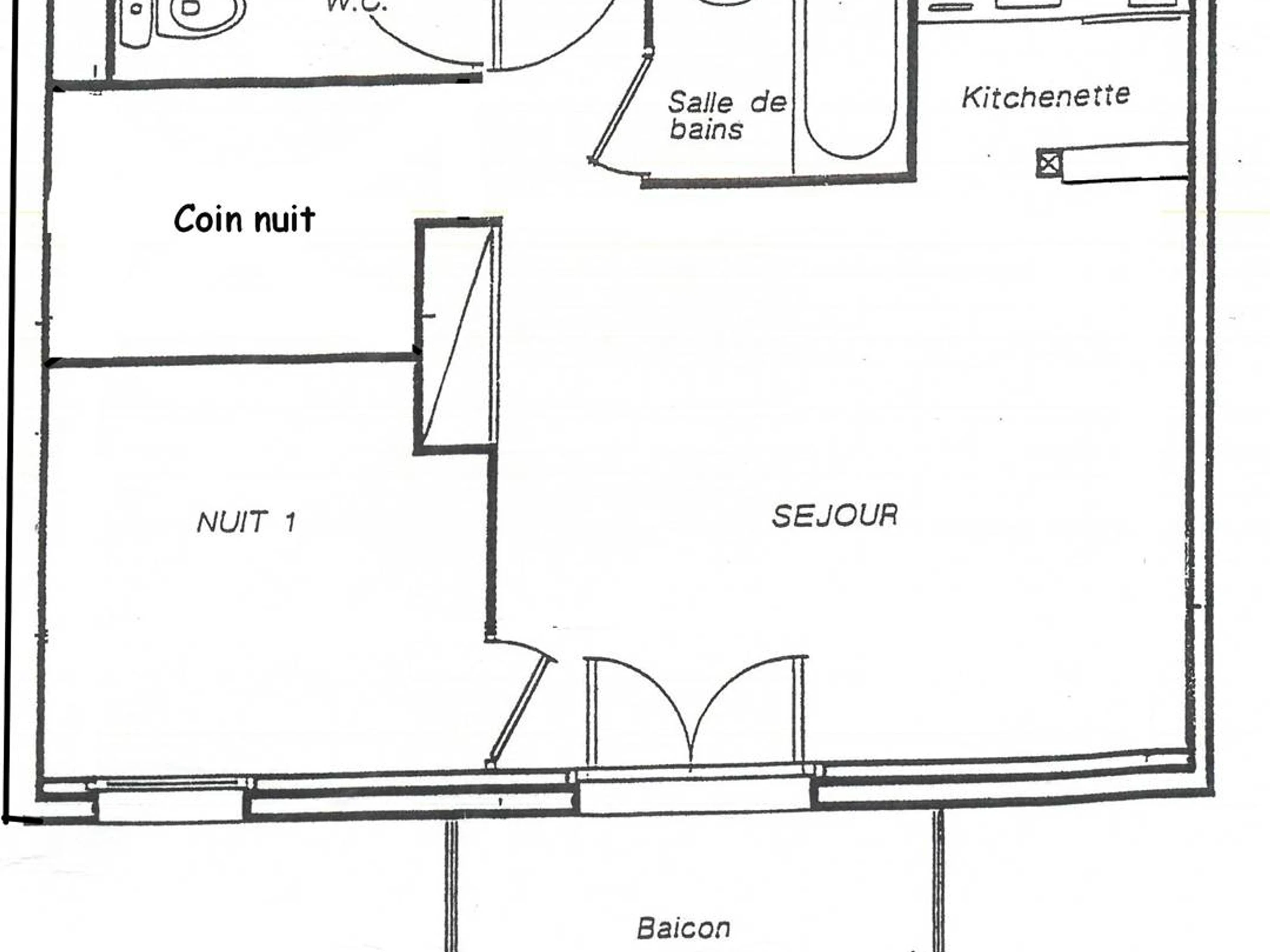 2-Zimmer-Hütte für 4 Personen, ruhig gelegen in der Nähe des Casinoparks, im 1. Stock mit Lift Richtung Westen mit einem Balkon von 4,50 m², Sicht auf die Berge und einer Fläche von ca. 32,34 m².
